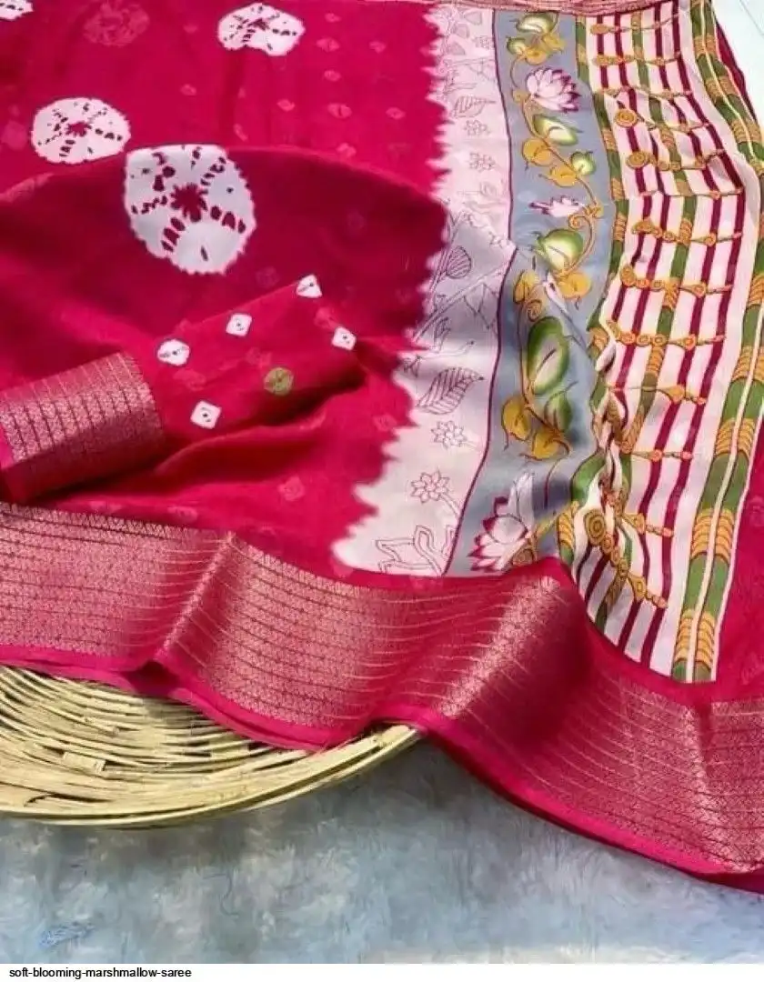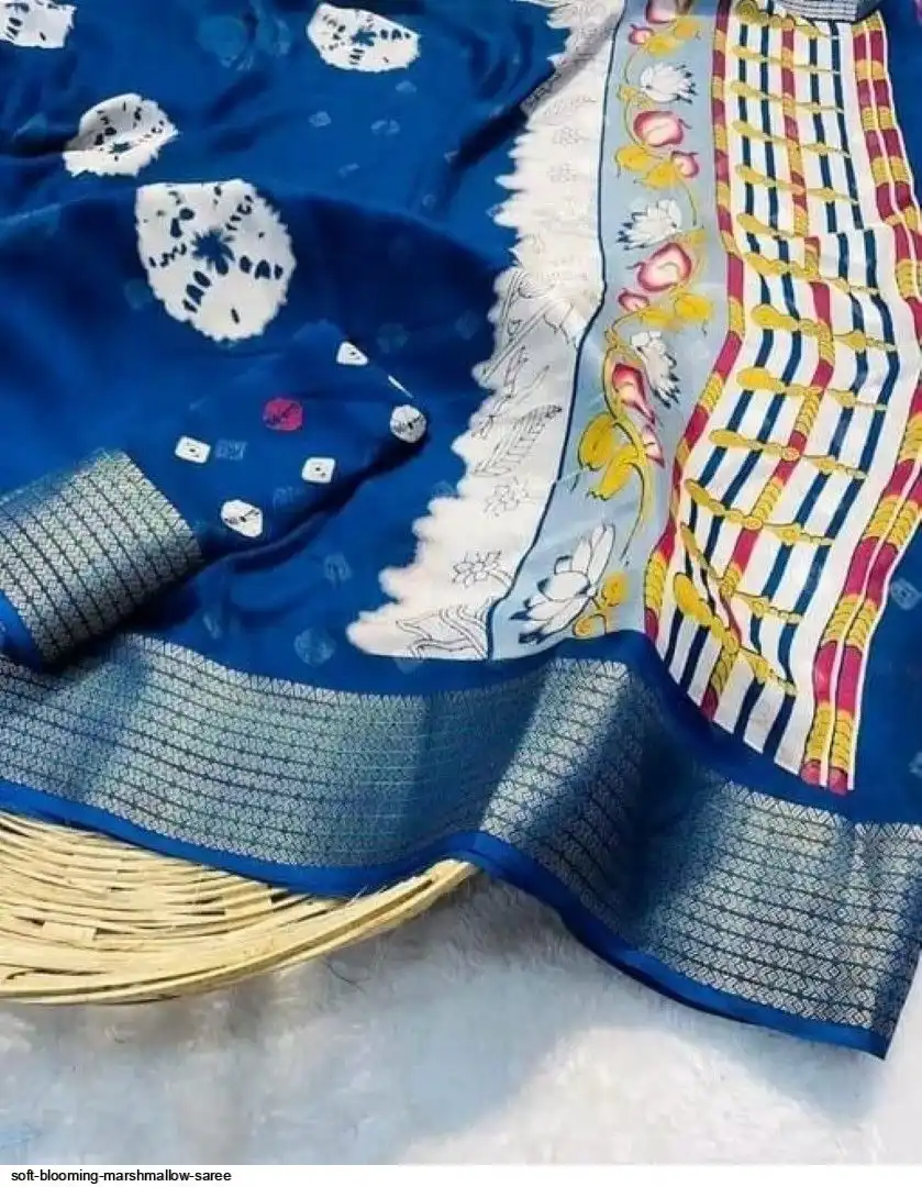 batik print saree with jecard zari boder & pallu with printed blouse.