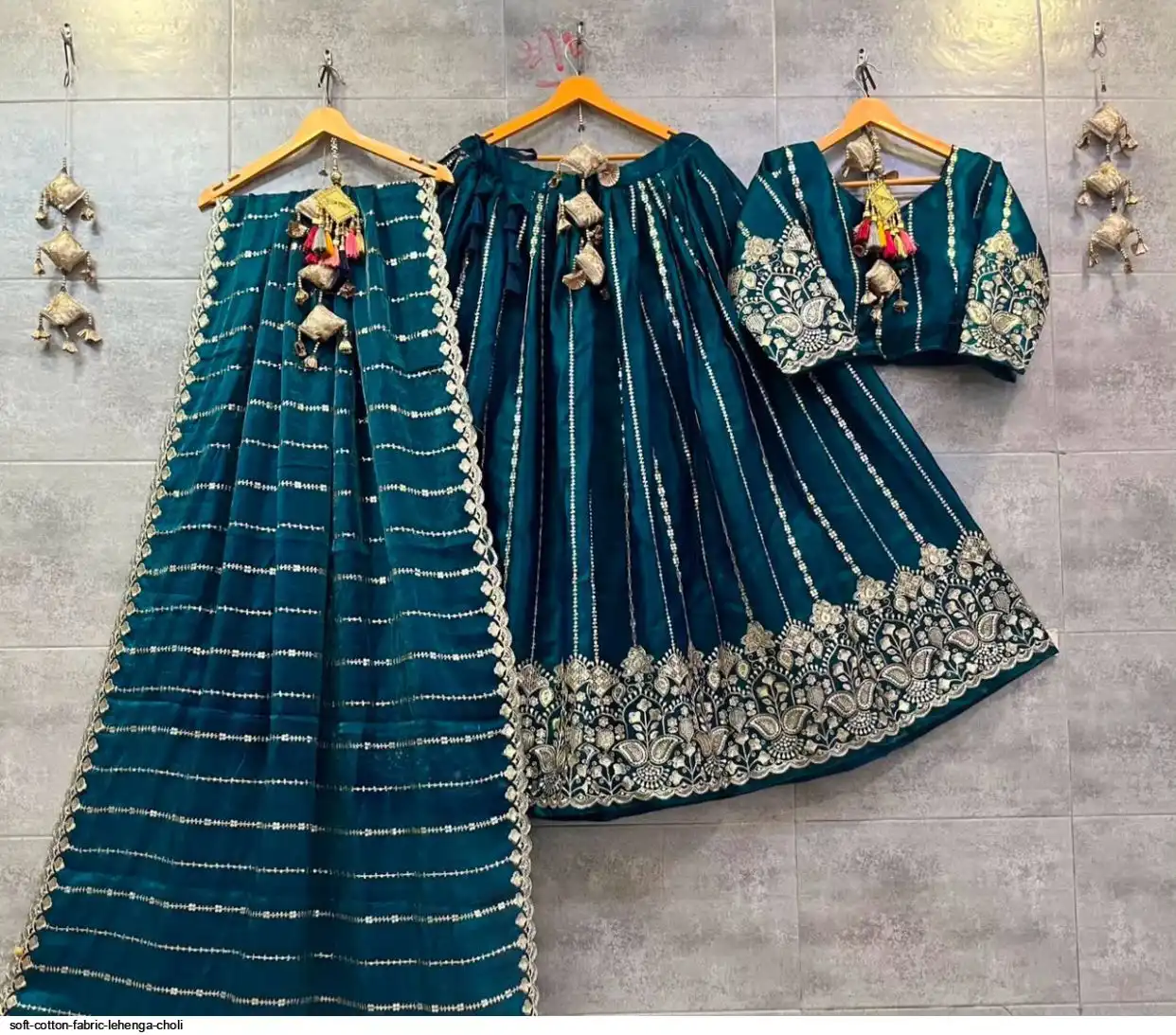 -Latest Designer pure soft fabric lehenga with same matching blouse material and soft silk shaded duppta..