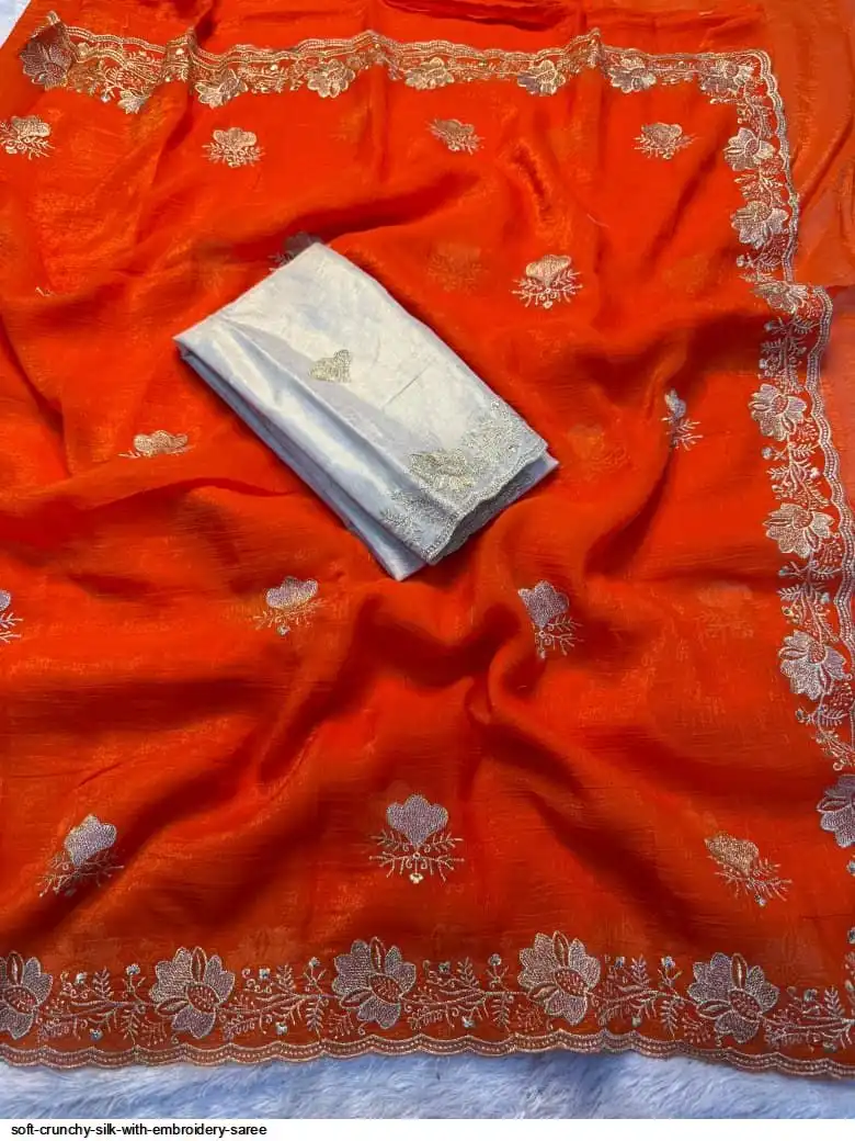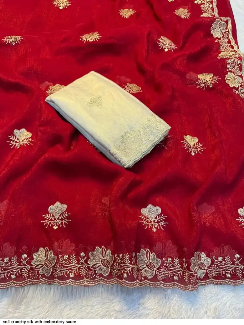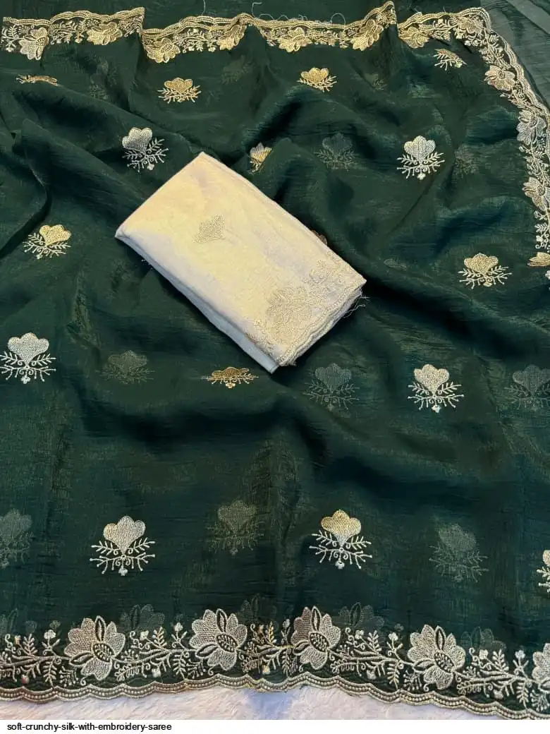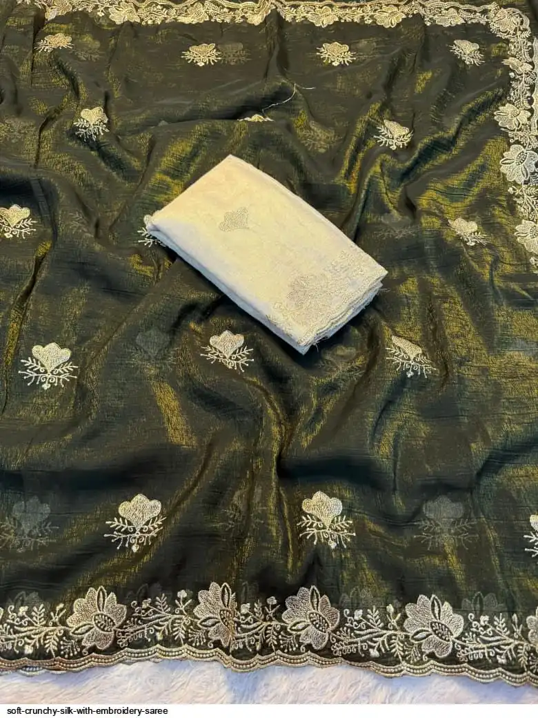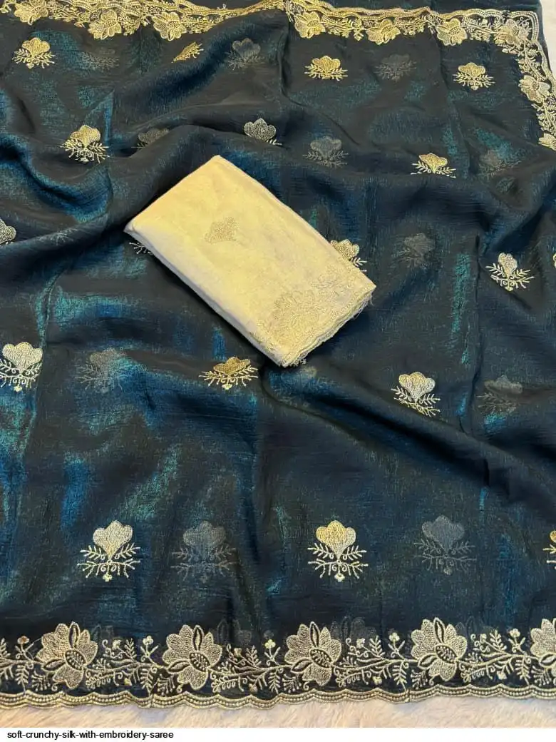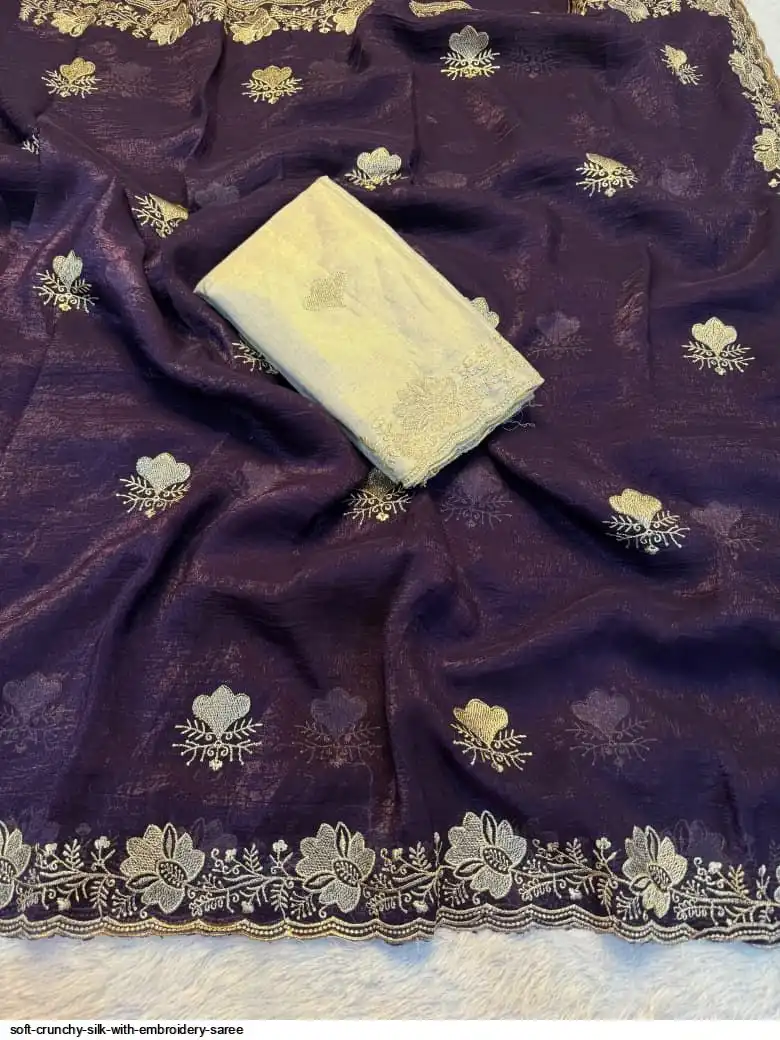 Soft crunchy silk saree with embroidery therd matching work with contrast embroidery work blouse