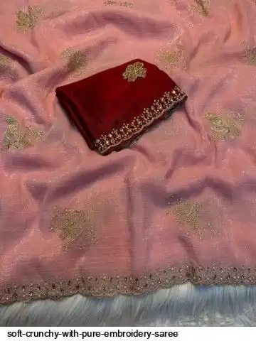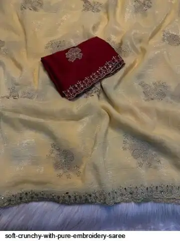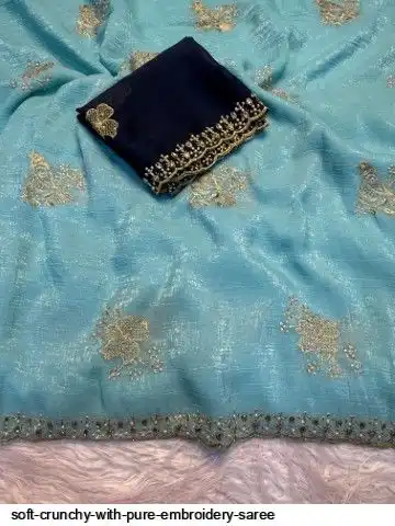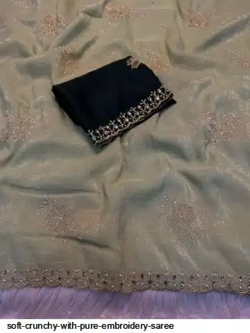 Soft crunchy saree with embroidery work with ston work saree wit cut work finishing