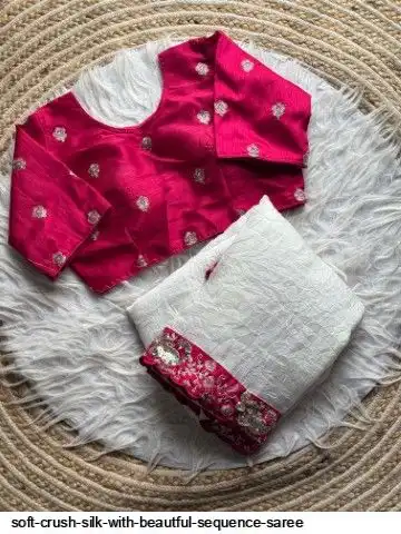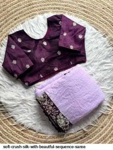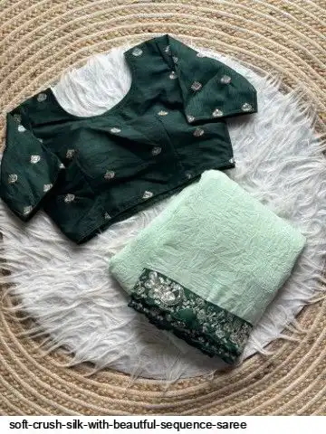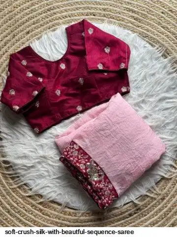 Soft crush silk saree with beautful sequence border and unstitch silk blouse with work