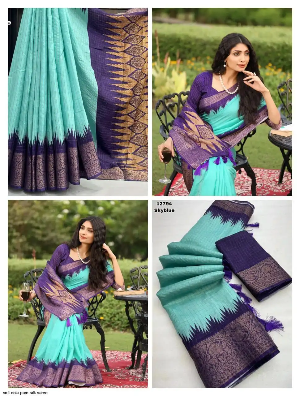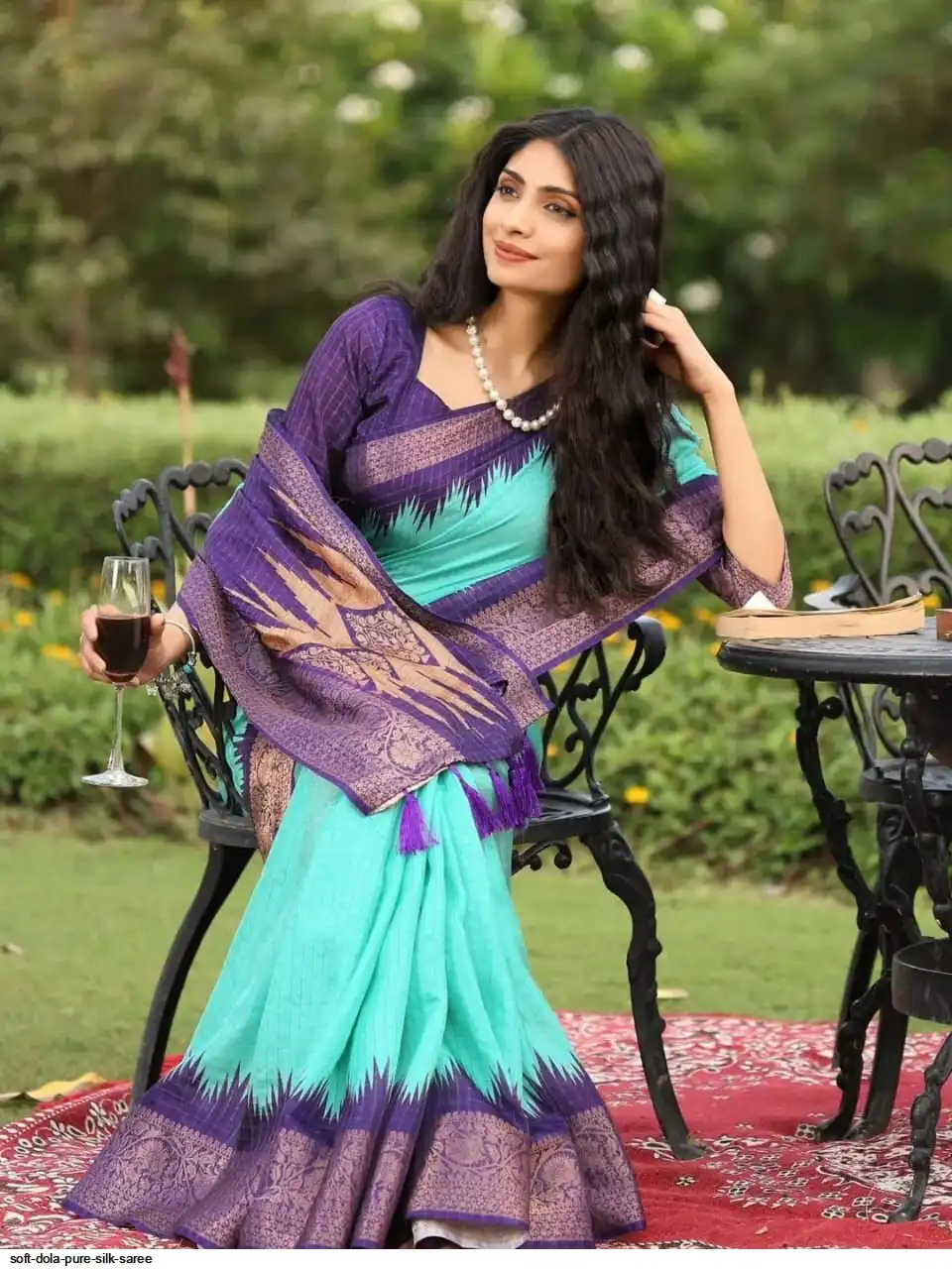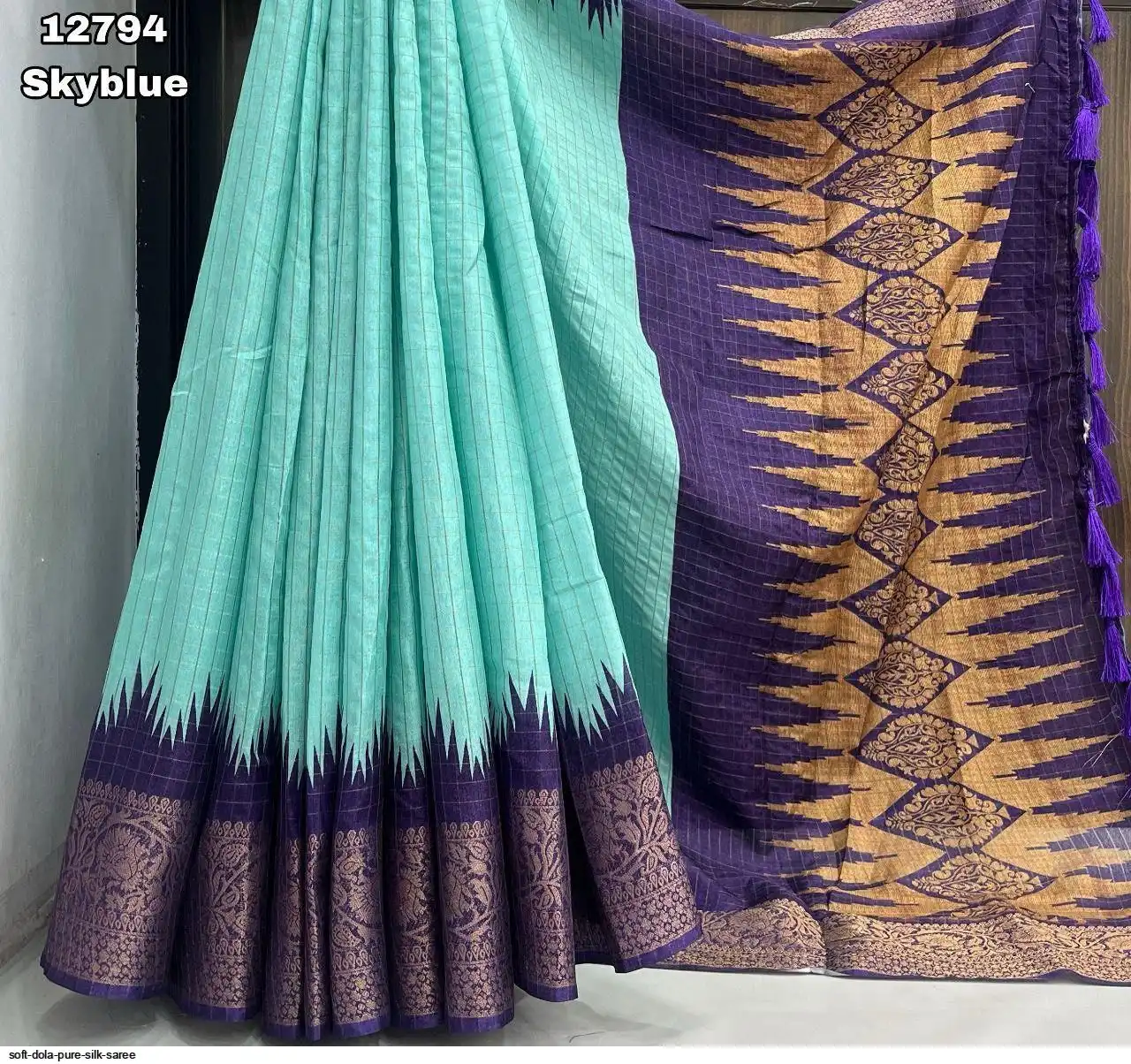 Fabric-Saree- soft dola silk .(6.30m with print blouse)*