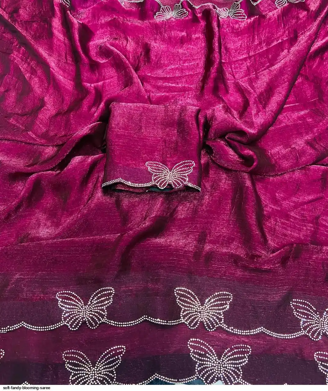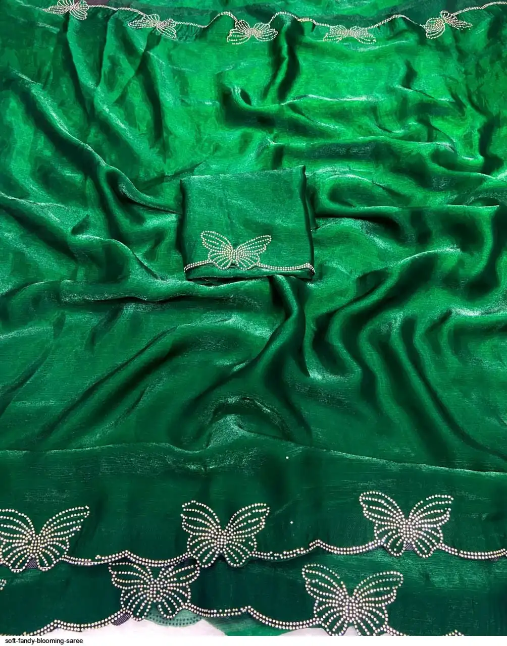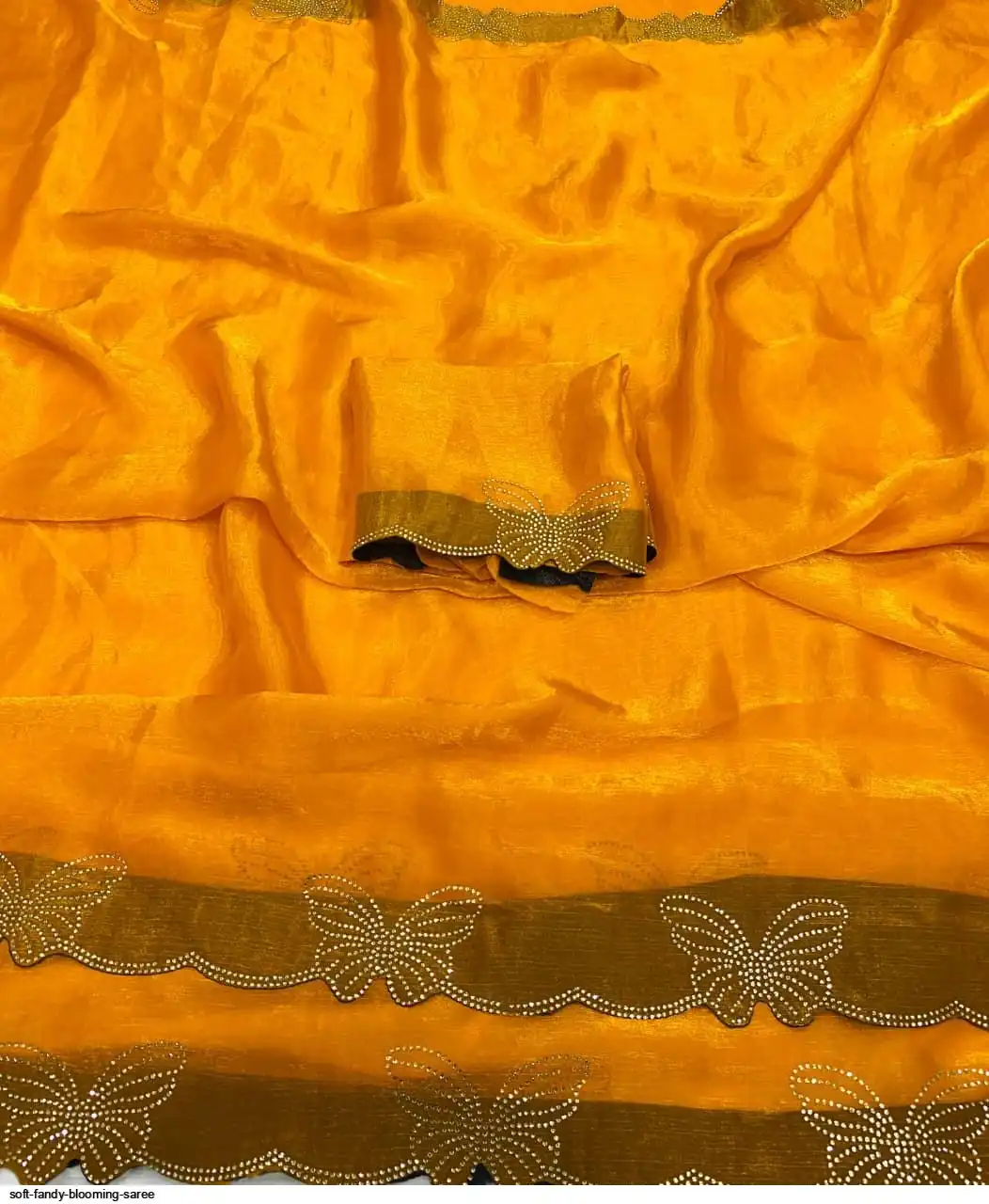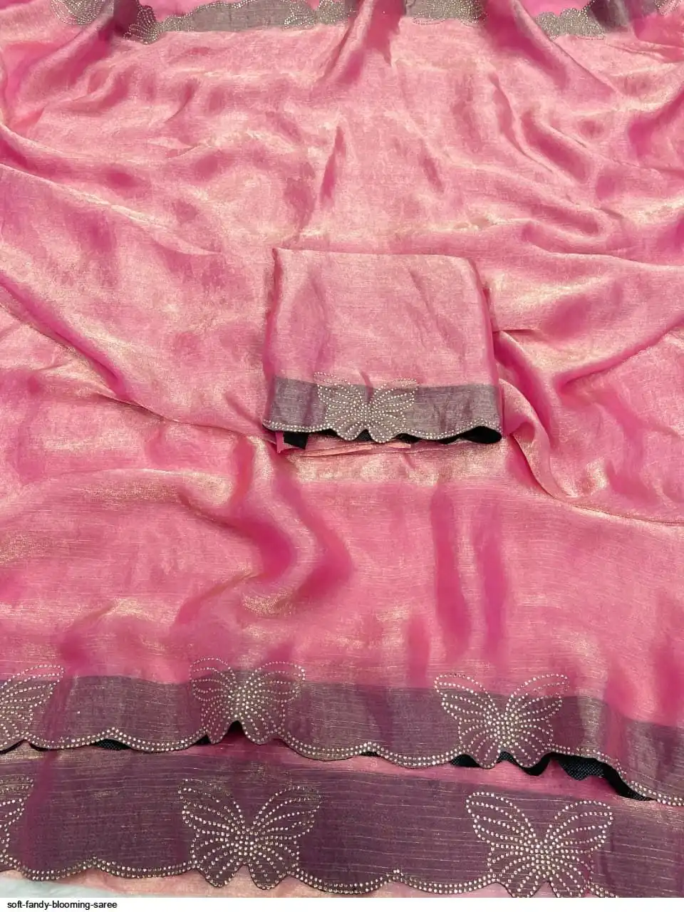 Soft fandy chifon Blooming saree With Beautiful Jarkhand Work With Siroski Work saree and butterfly lace border in sarees
