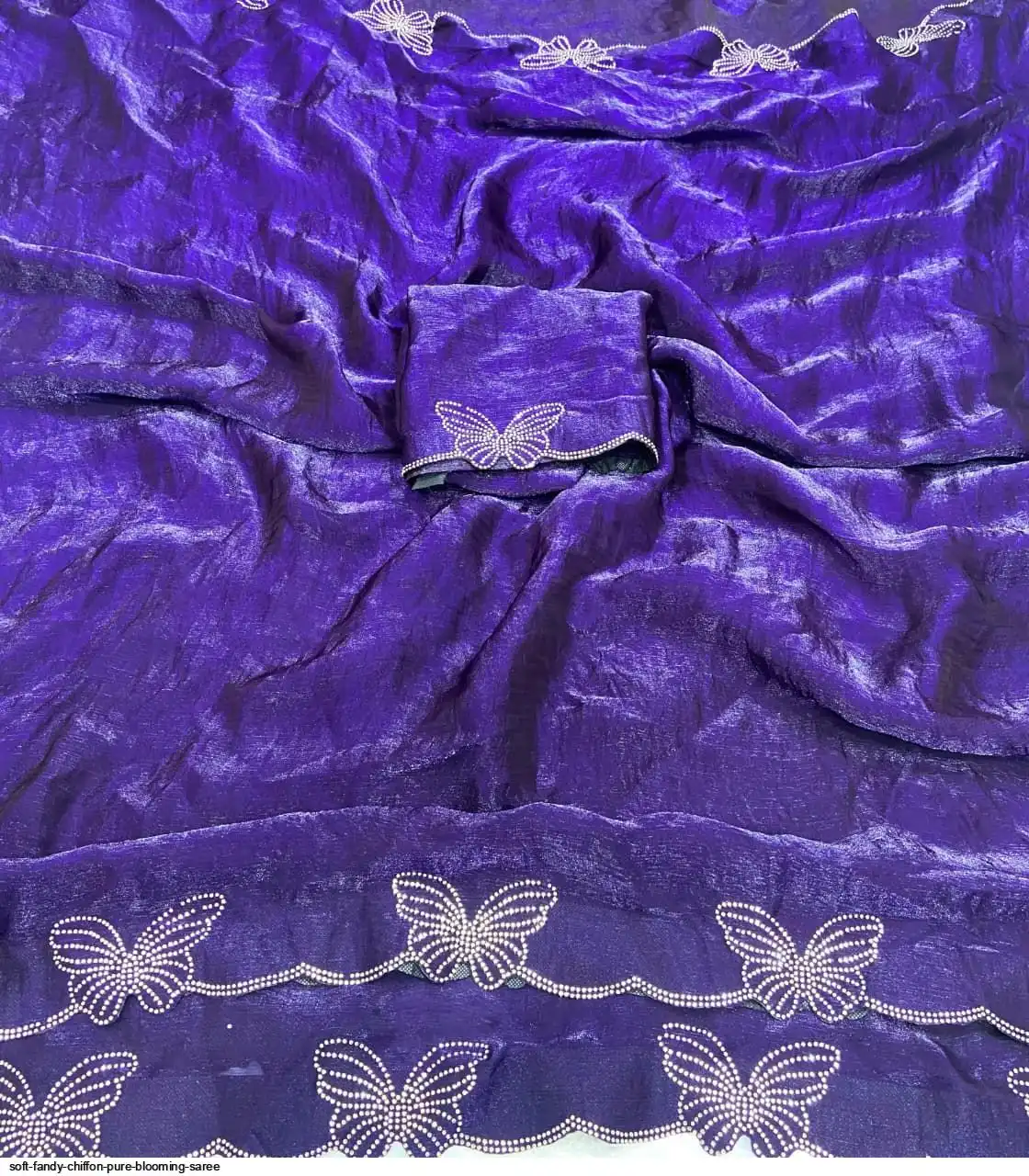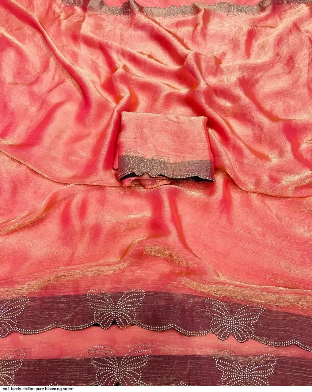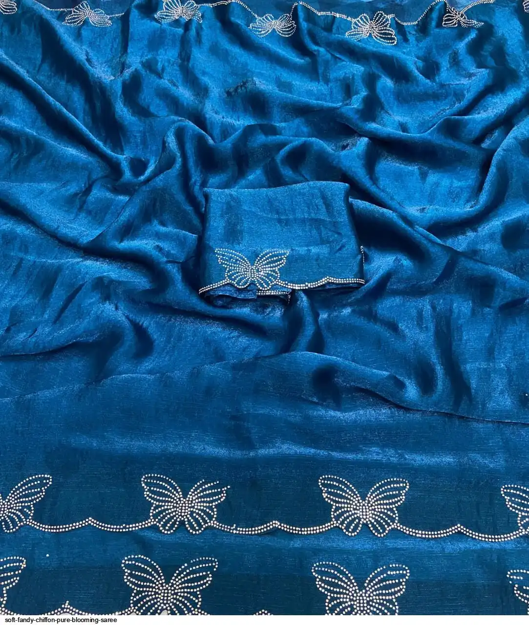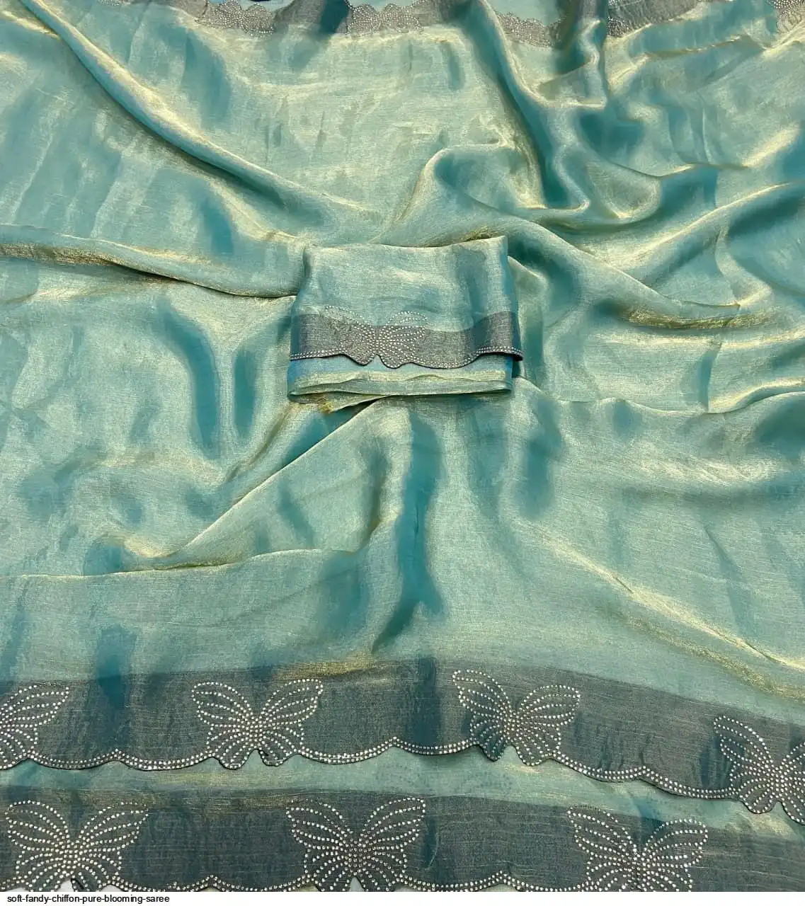 Soft fandy chifon Blooming saree With Beautiful Jarkhand Work With Siroski Work saree and butterfly lace border in sarees