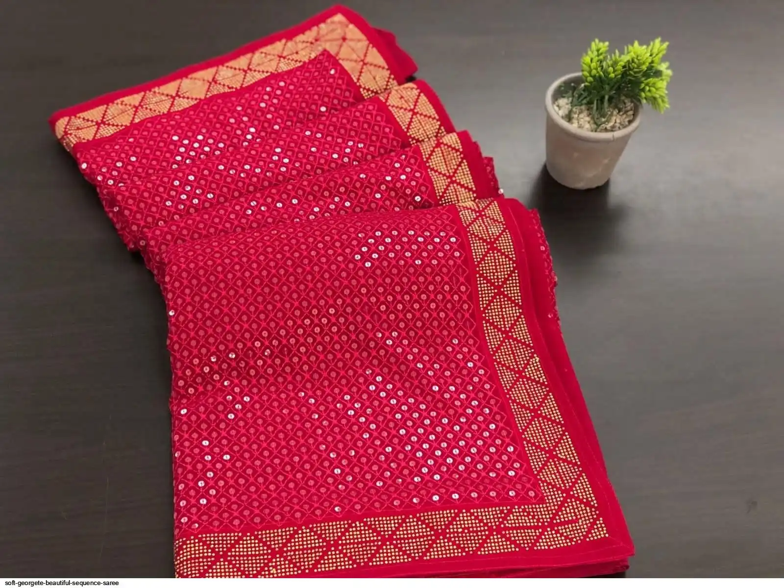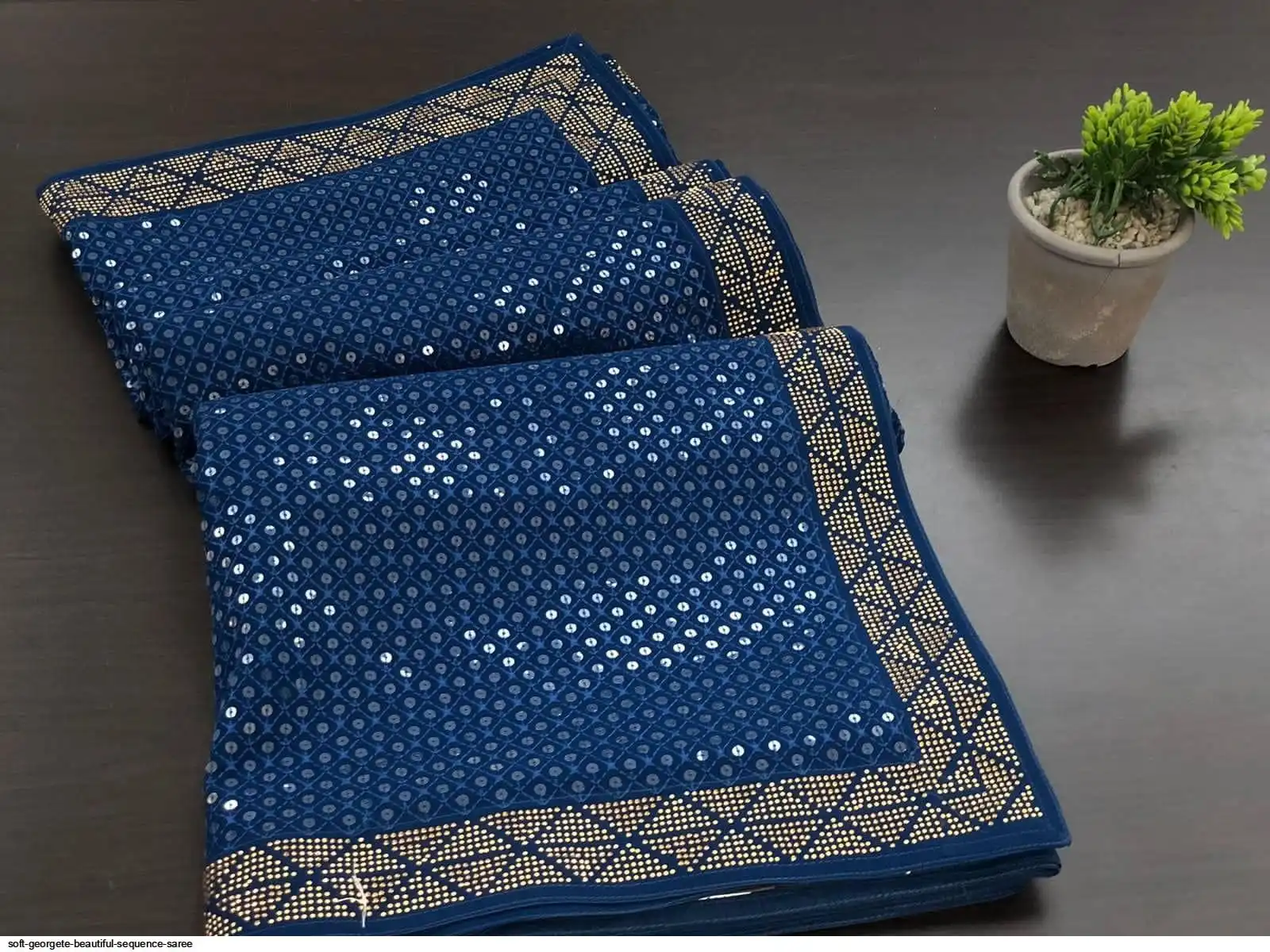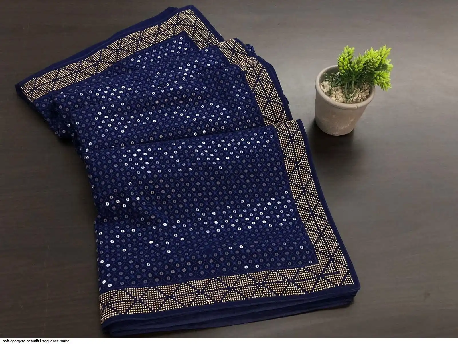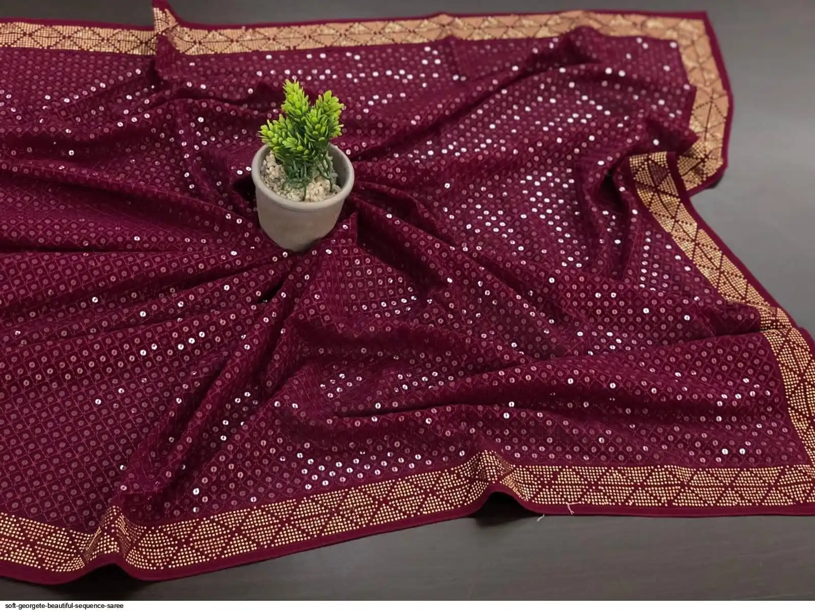 Soft georgete saree with beautiful sequence work cover with swaroski work and running blouse with swaroski border