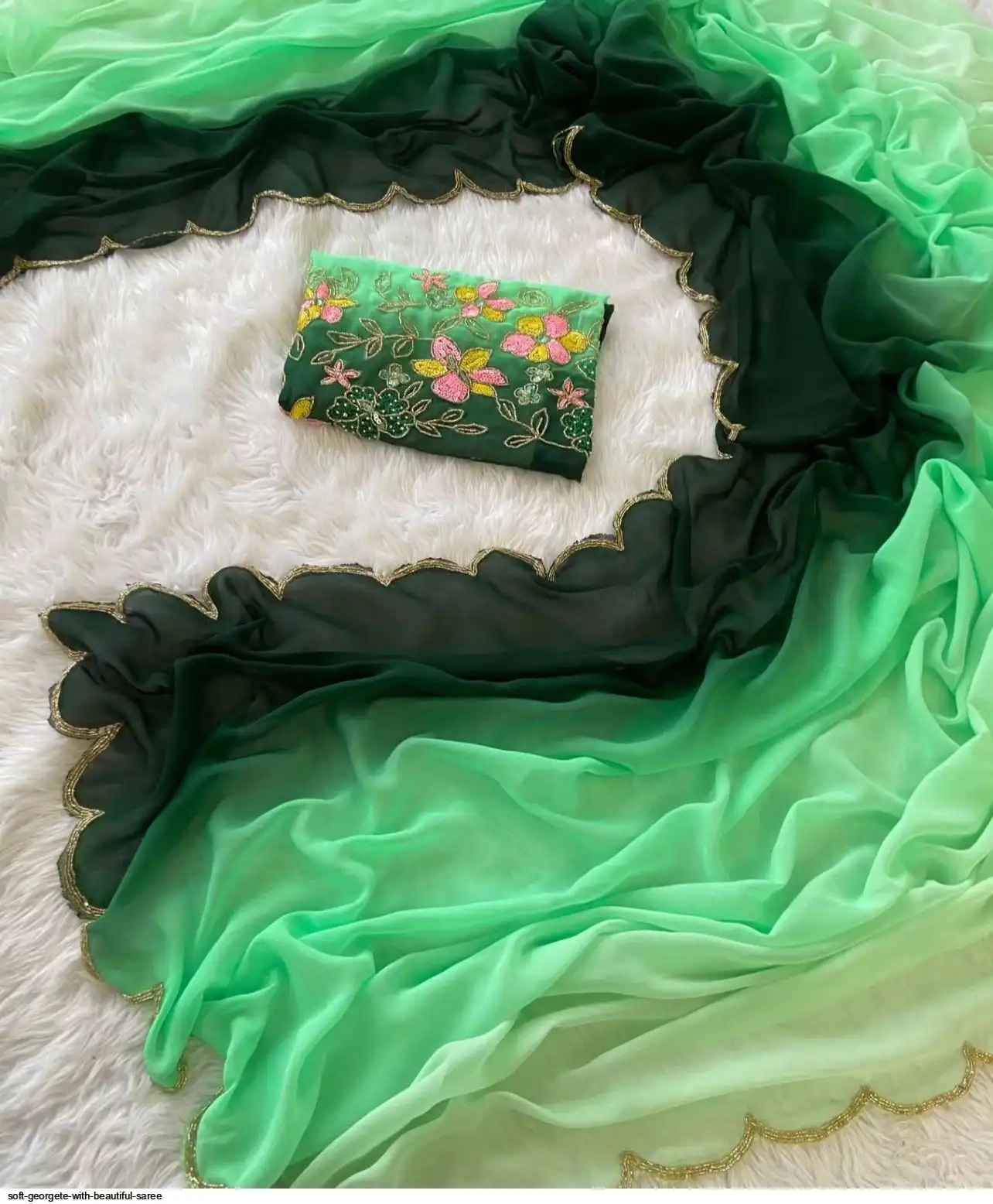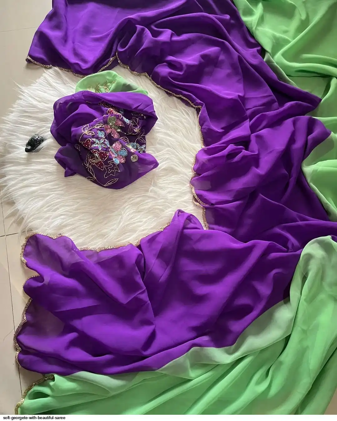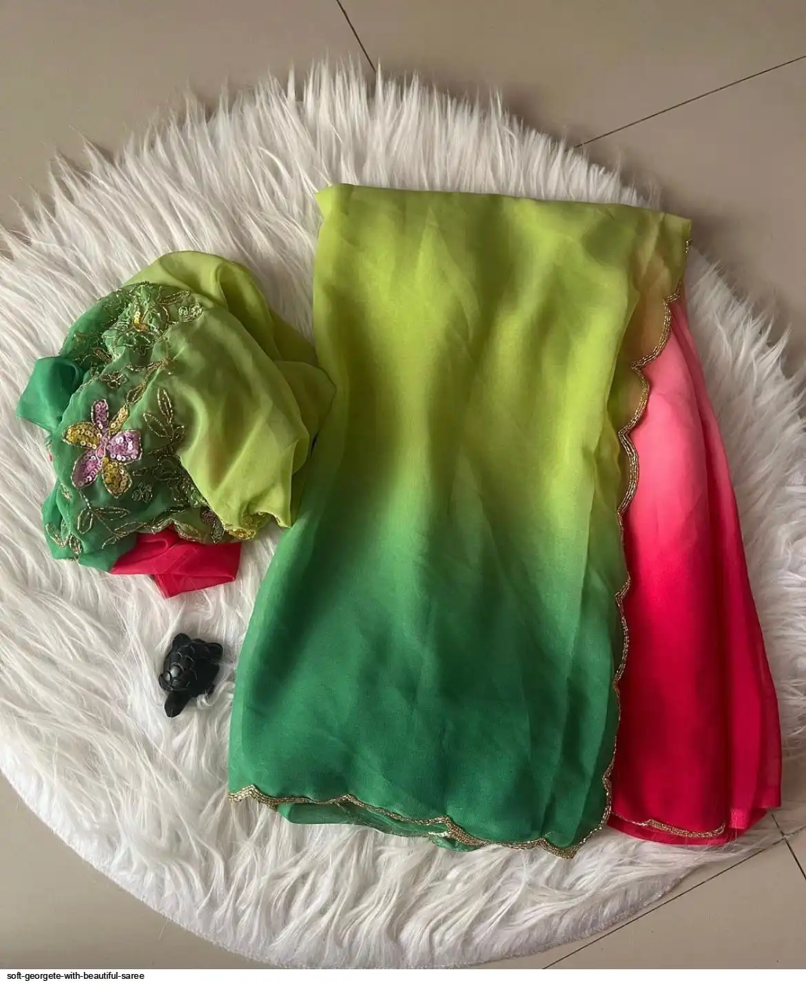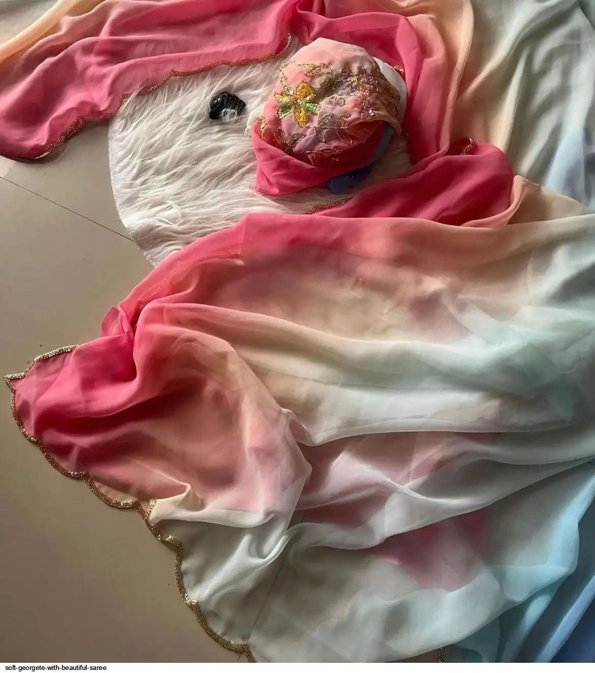Soft georgete saree with beautiful padding all over saree with heavy handwork and running blouse with handwork