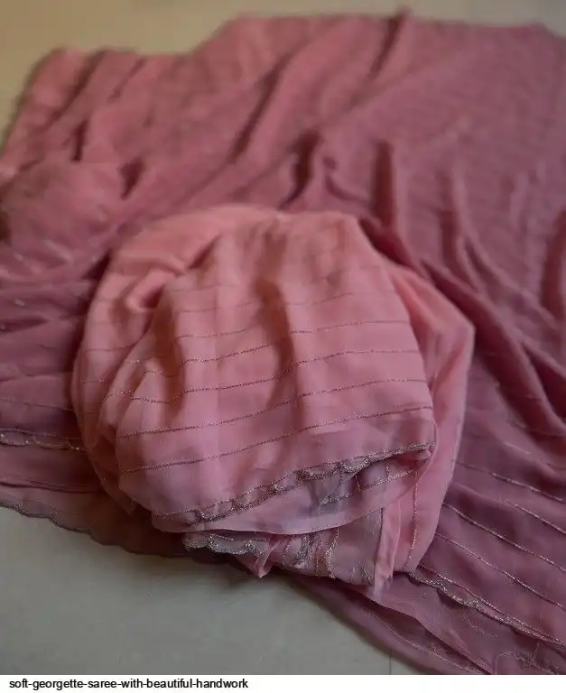 Soft Georgette saree with beautiful handwork all over saree and running blouse with handwork