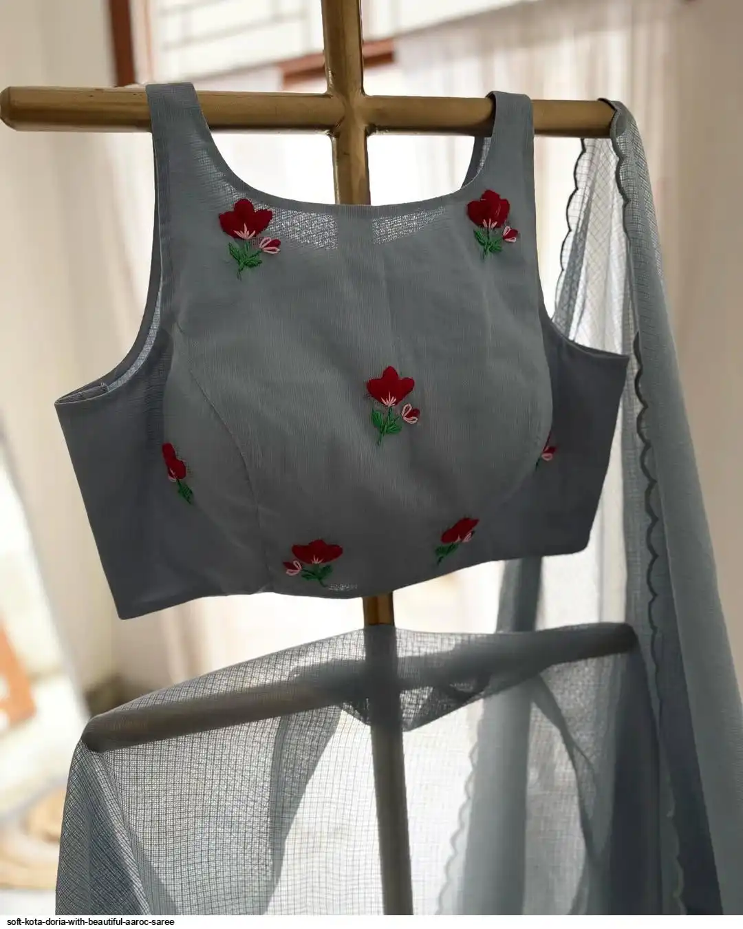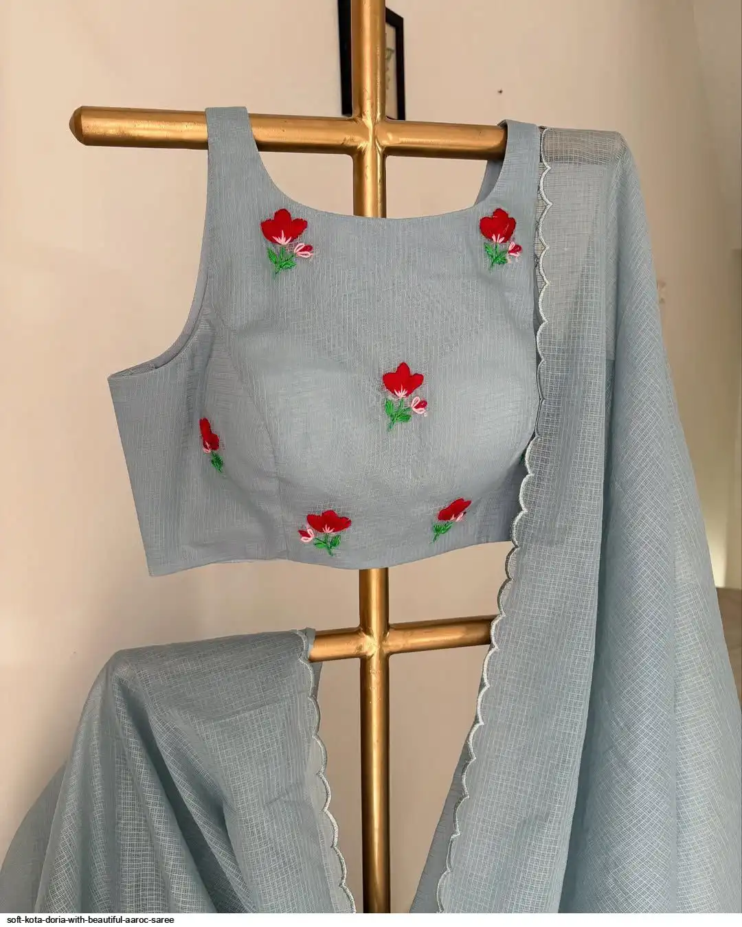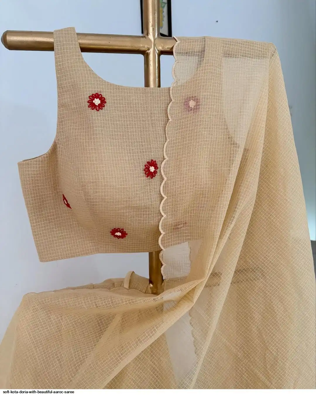 Soft kota doria saree with beautiful aaroc all over border and running blouse with handwork