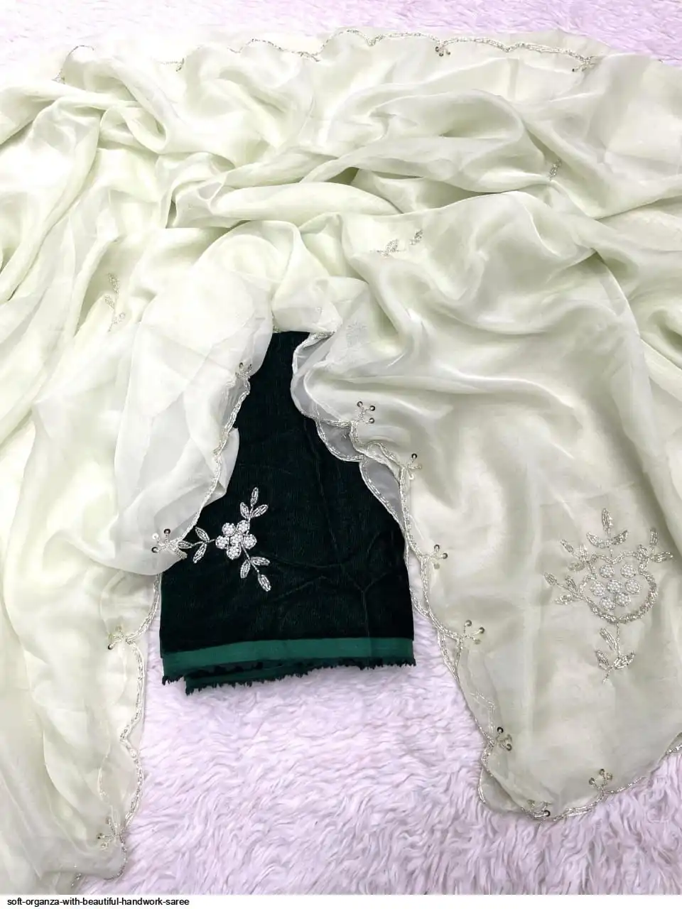 Soft organza saree with beautiful handwork and velvete blouse woth work