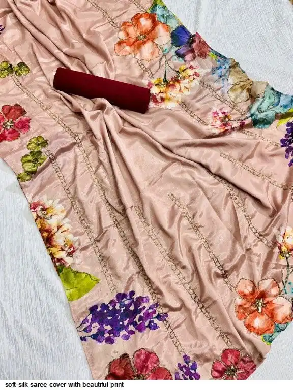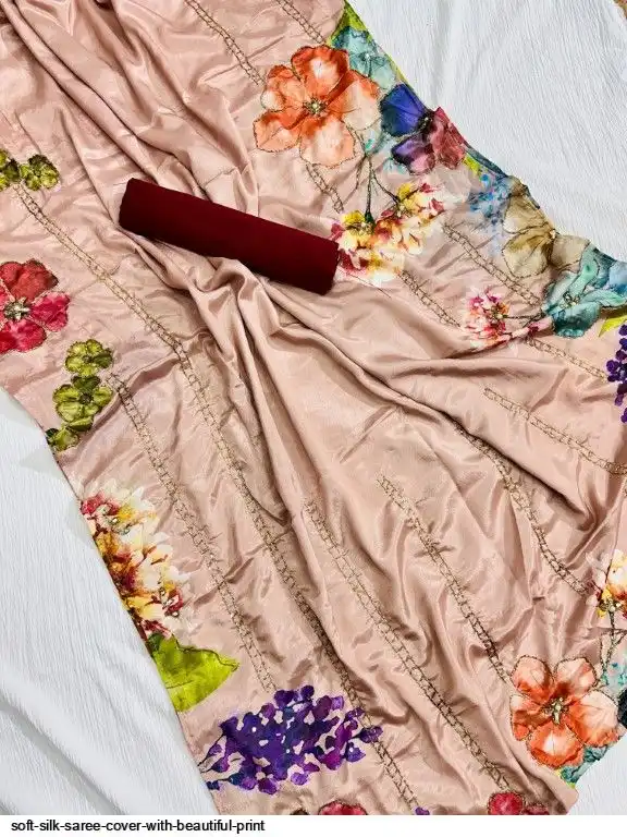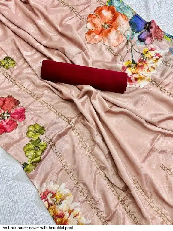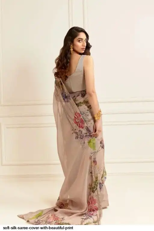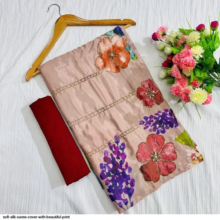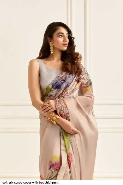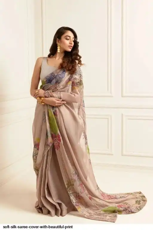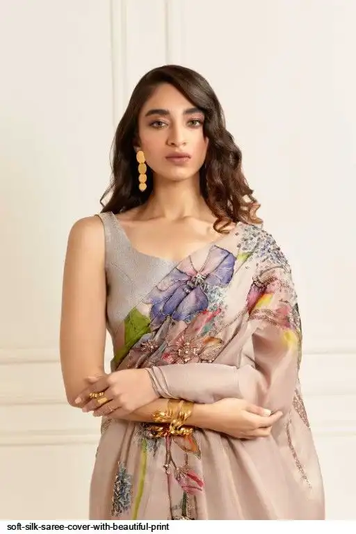 Soft silk saree cover with beautiful print all over with hand weaving karanda and tiki work all over saree and matching unstich blouse