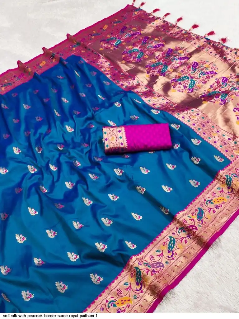 Saree :- Soft Pethani silk saree with zari weaving Minakari design and Minakari weaving Rich pallu with Minakari weaving peacock border & Tassel attached at Pallu end.