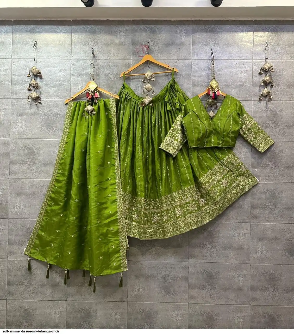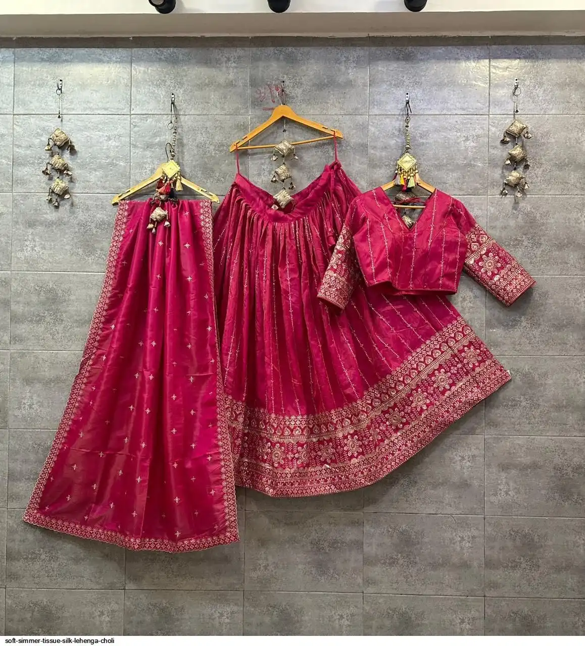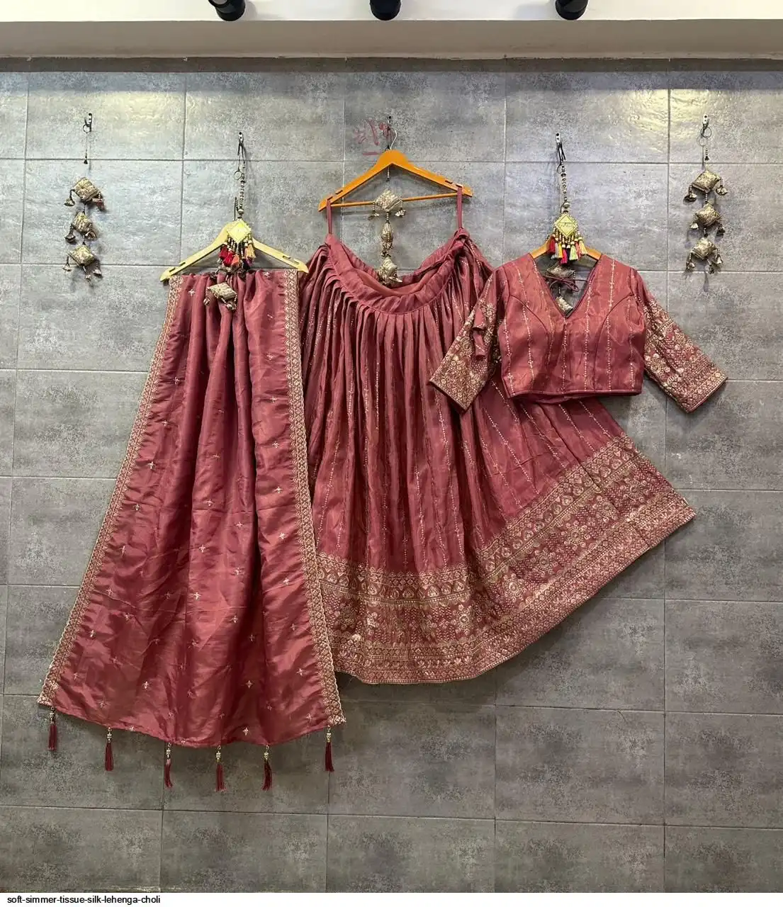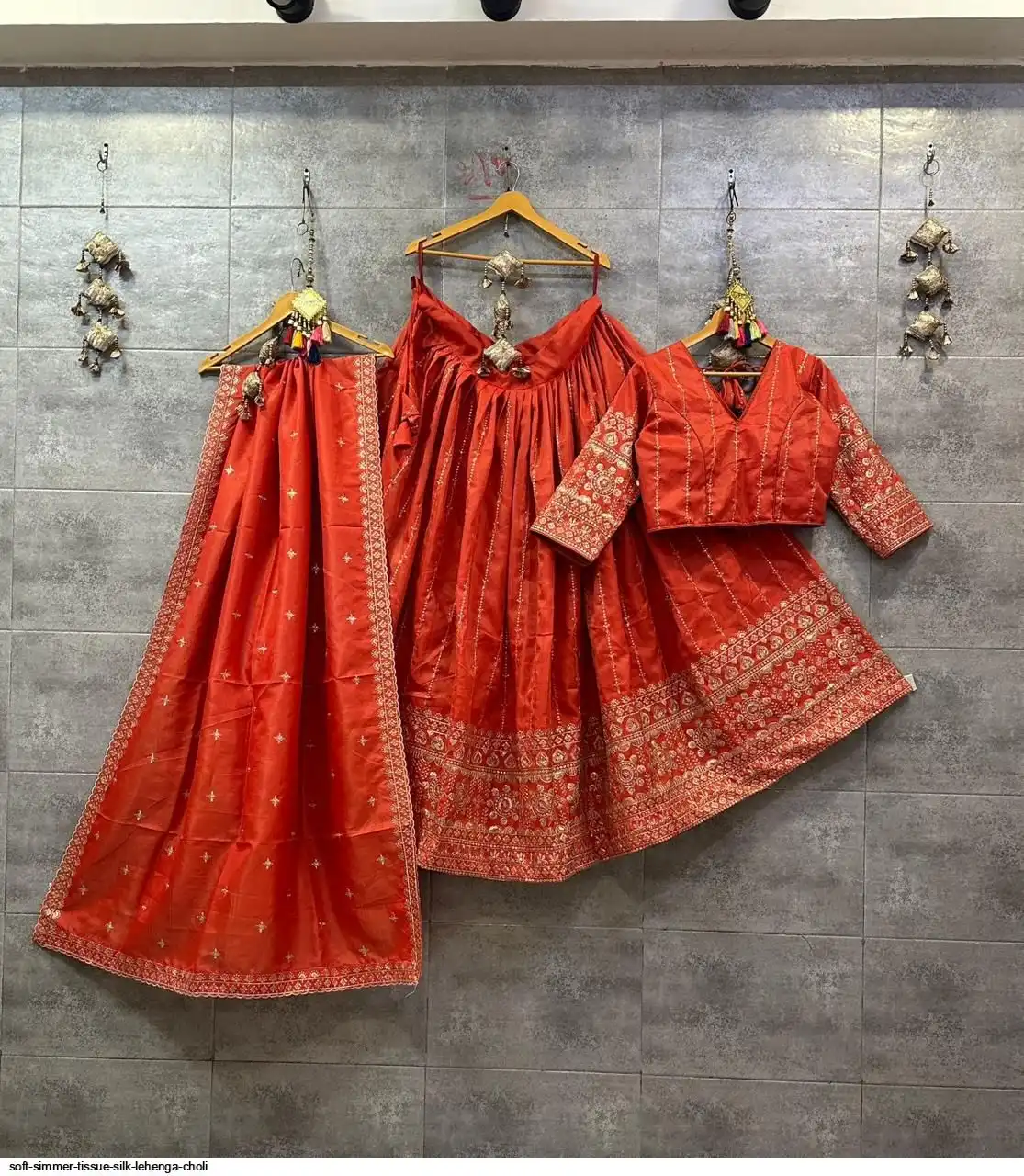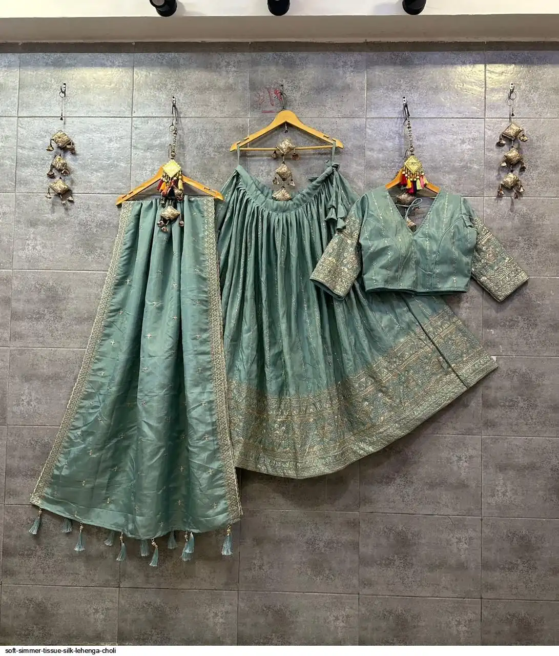 Soft simmer tissue silk fabric chaniya choli with computer work