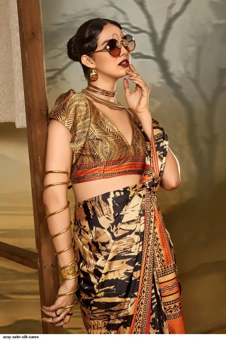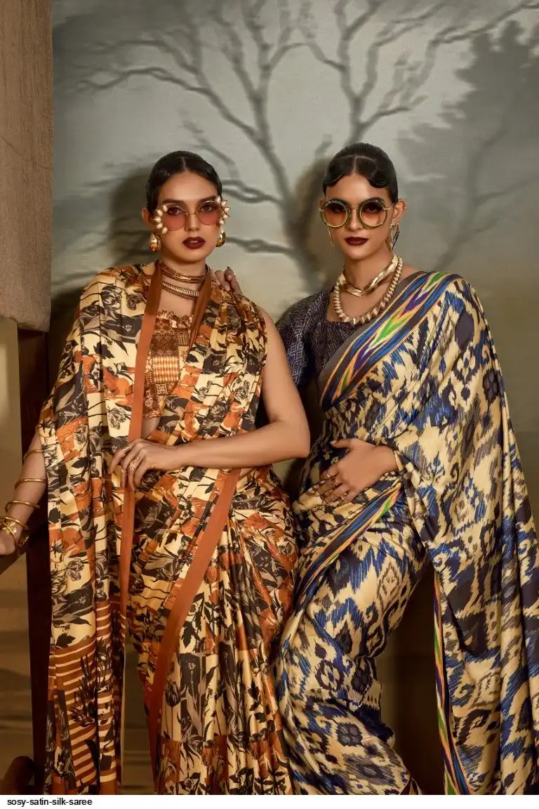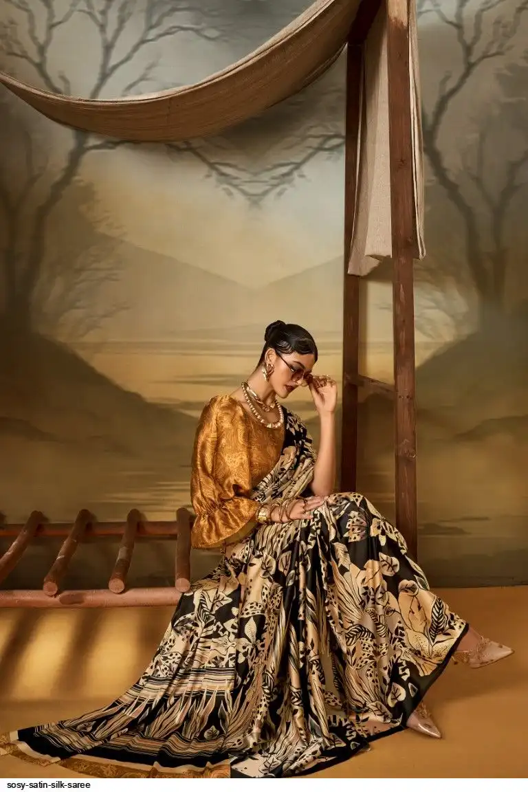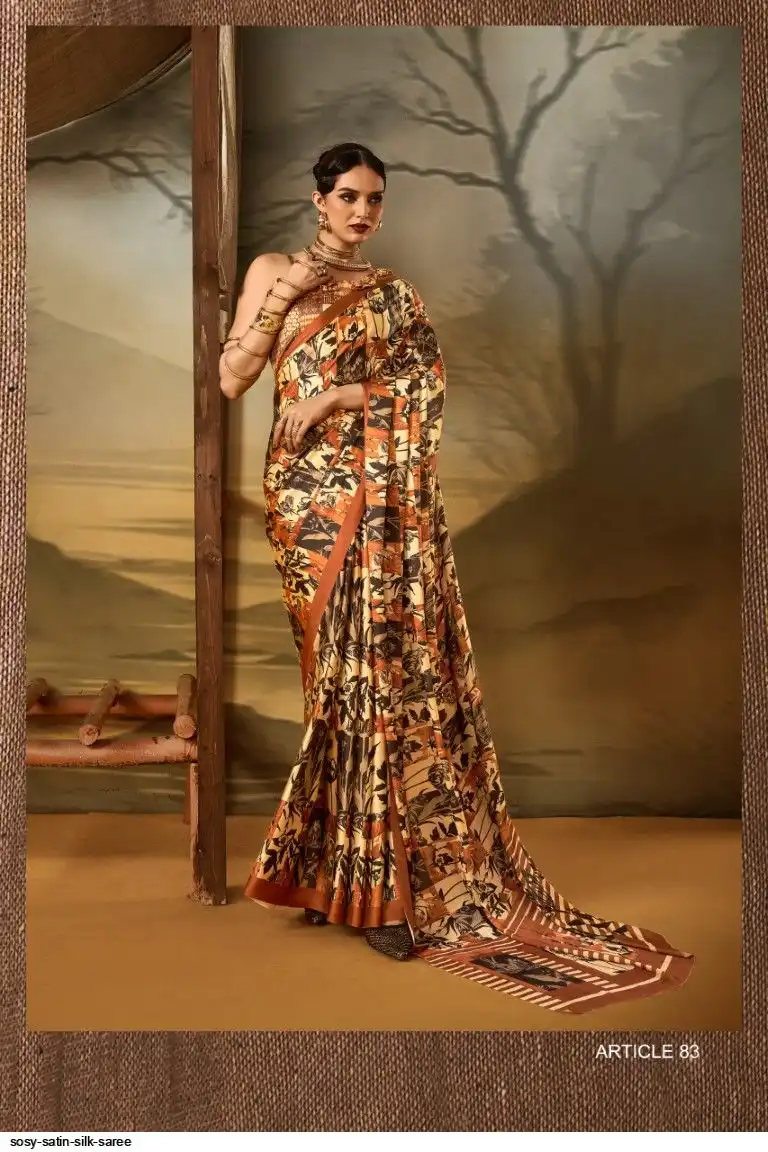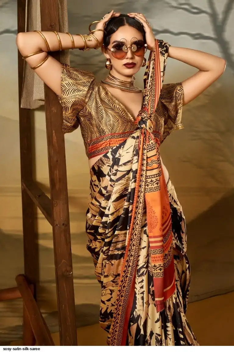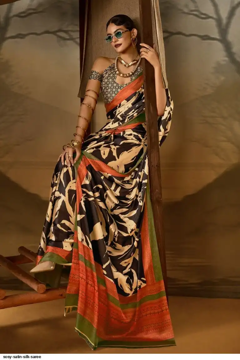 Saree : Printed Satin Crape Fabric