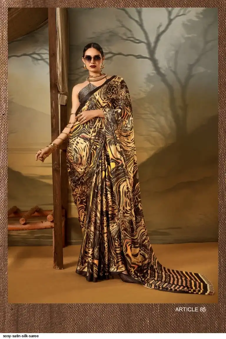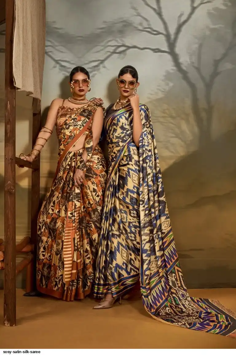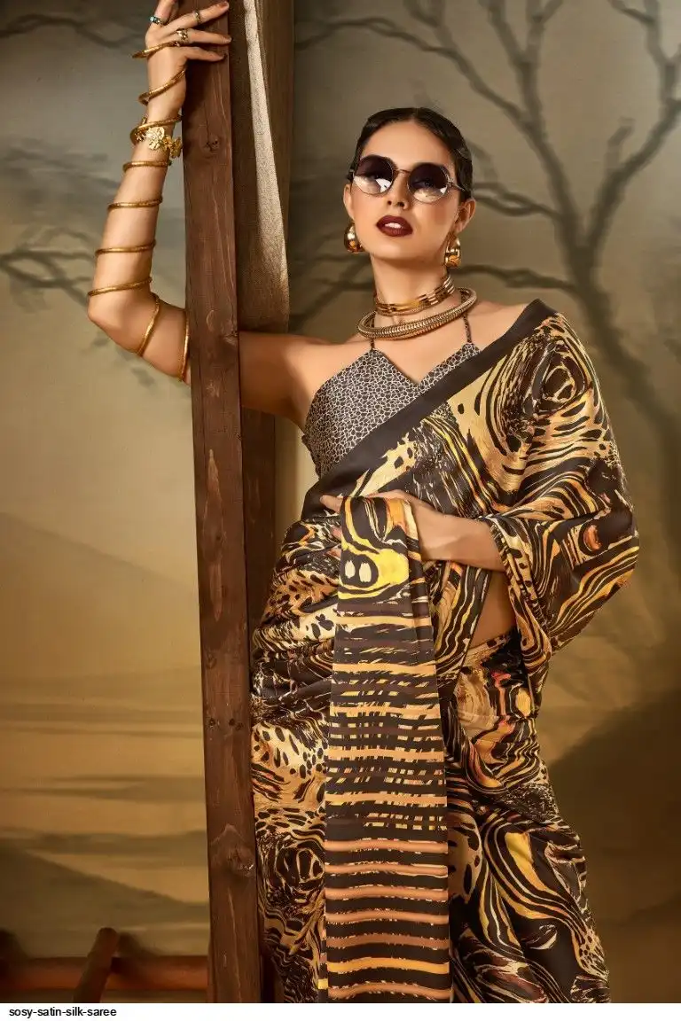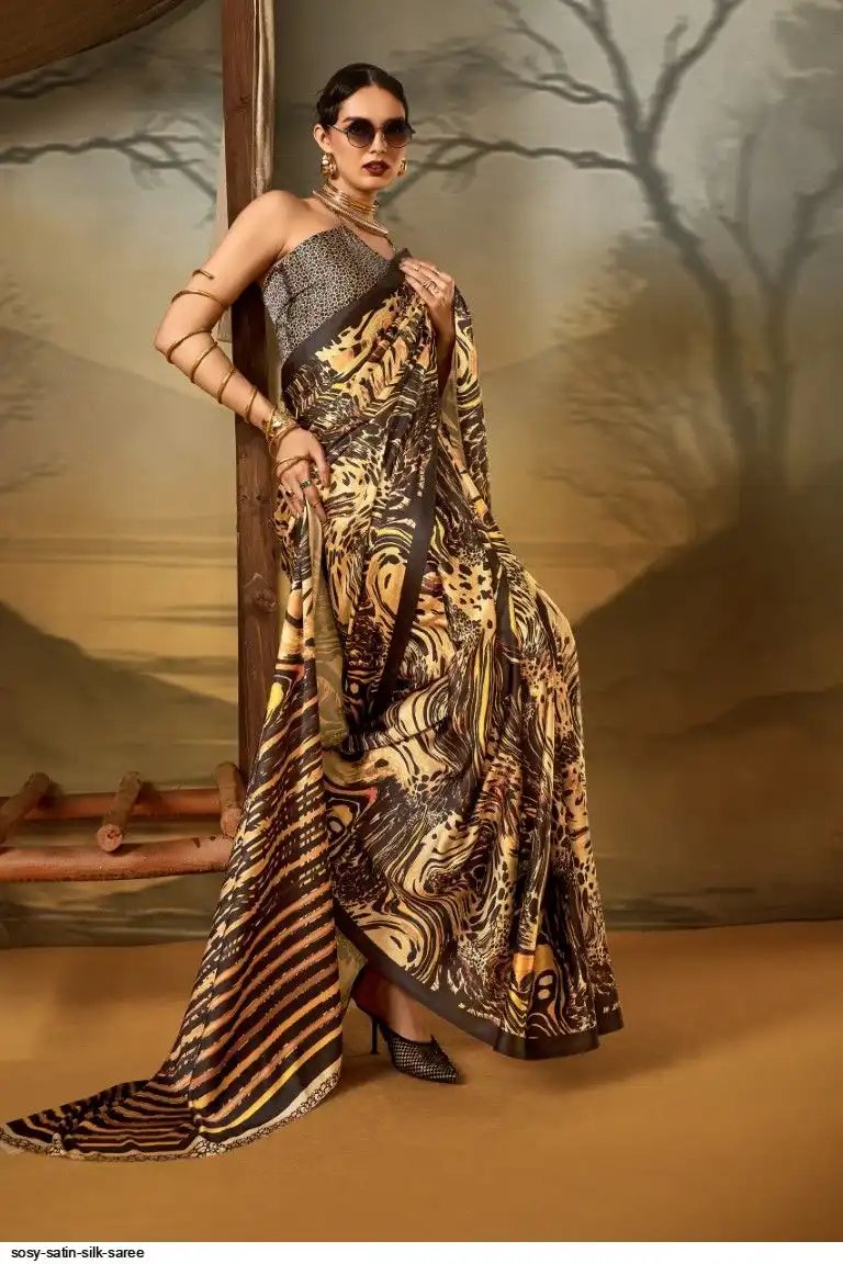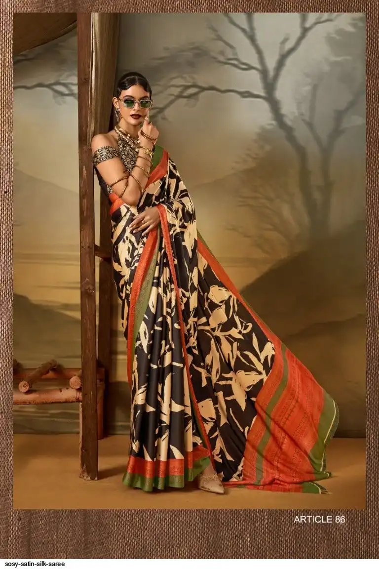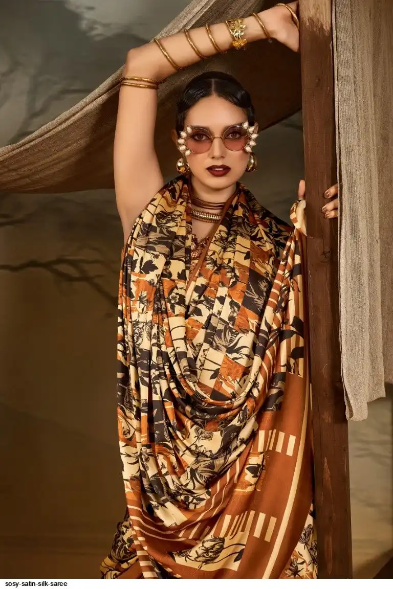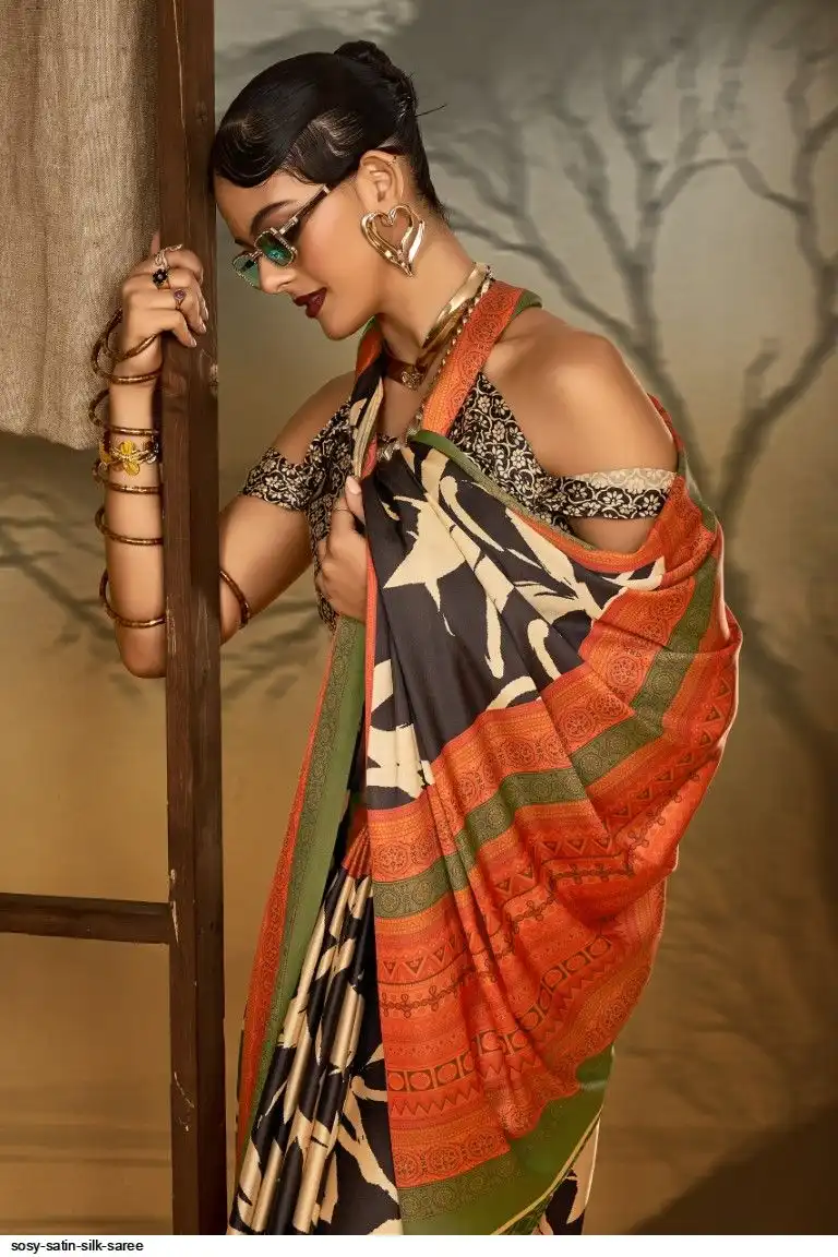 Saree : Printed Satin Crape Fabric