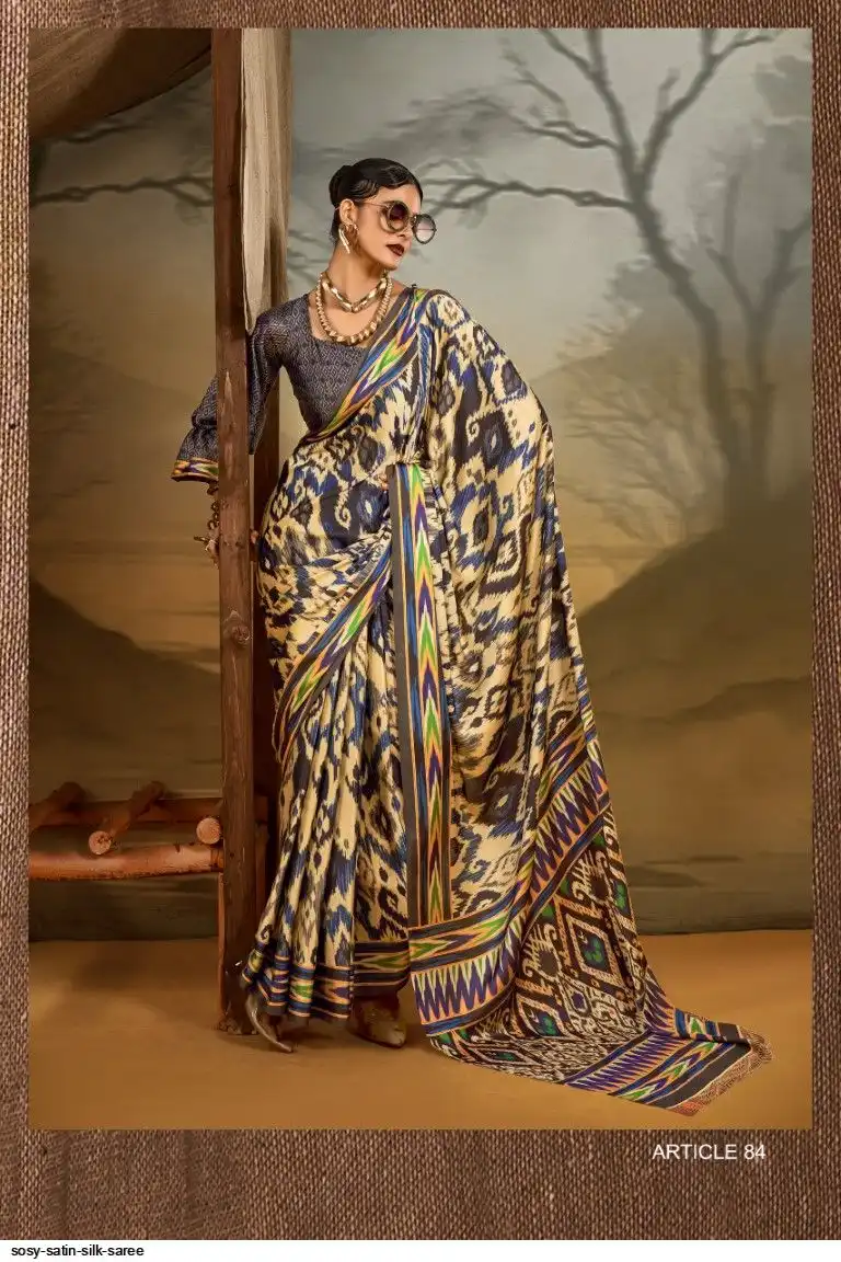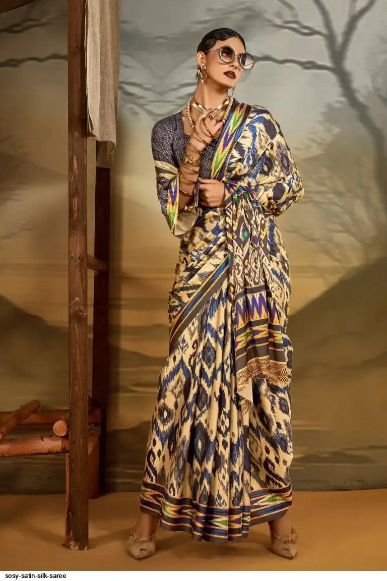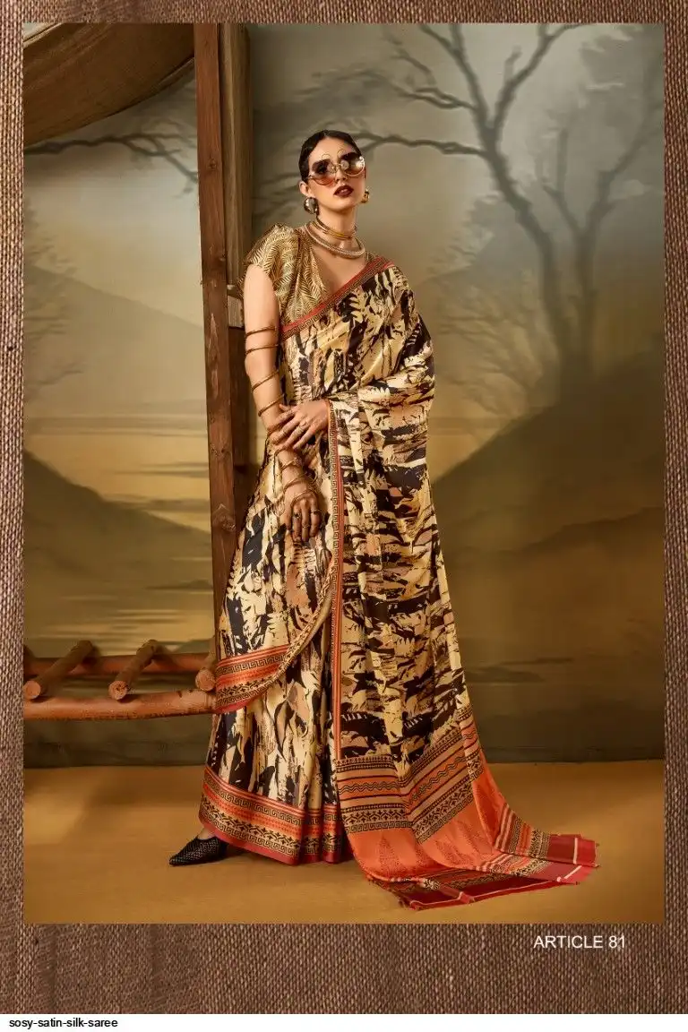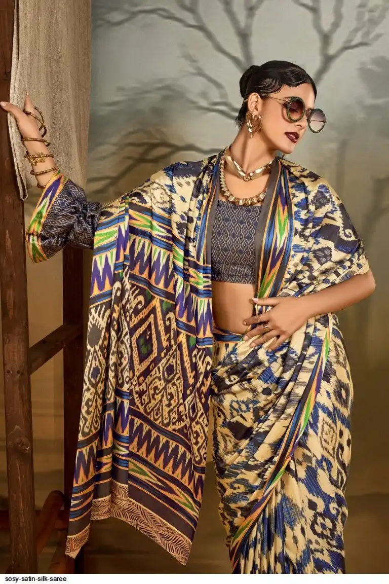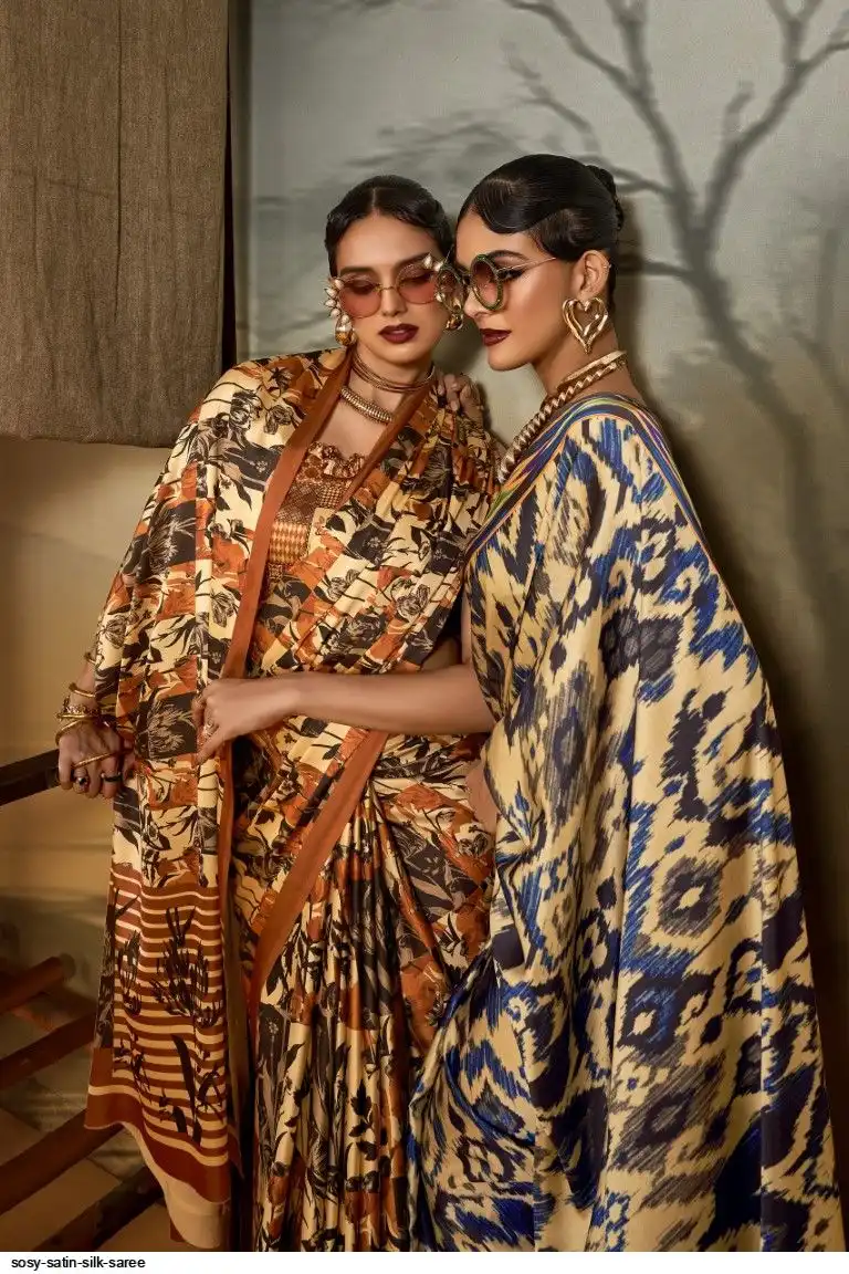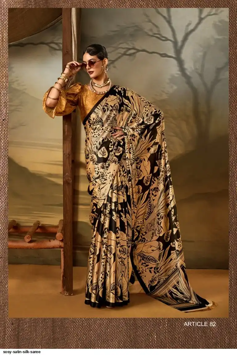 Saree : Printed Satin Crape Fabric