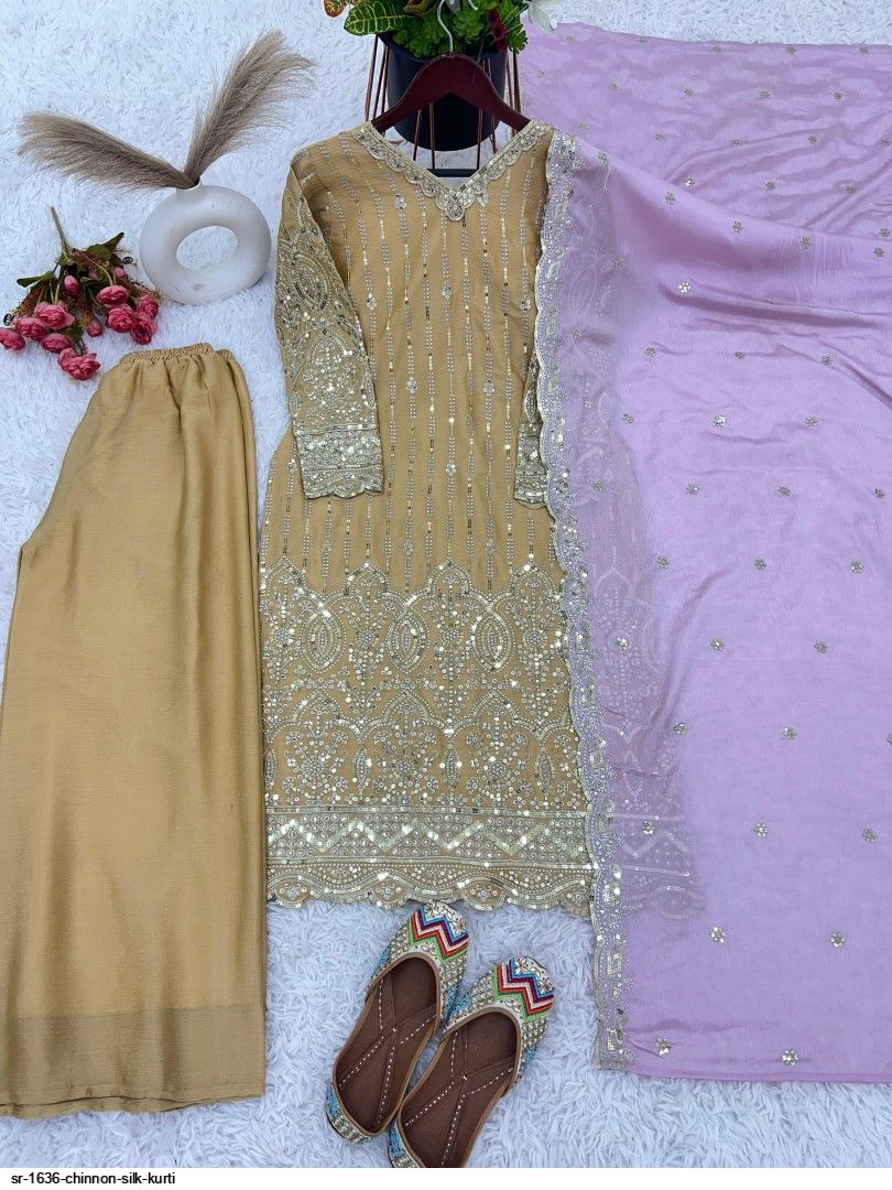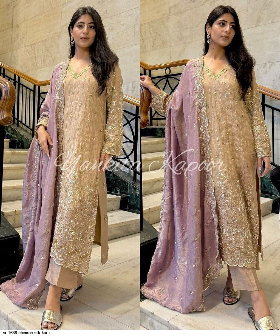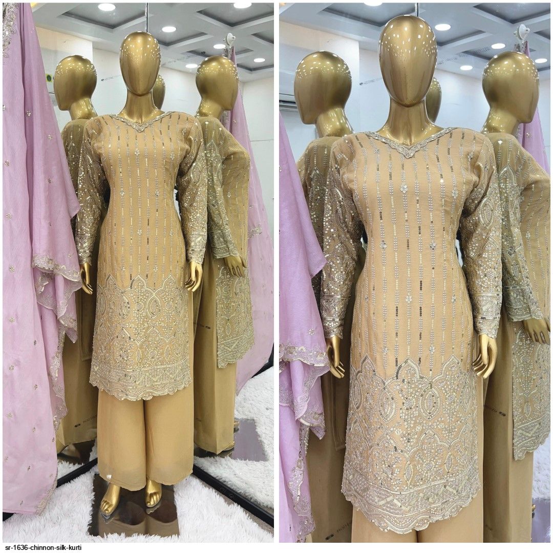 Top Fabric :Pure Heavy Chinnon Silk With Heavy Embroidery Sequence Work With Full Sleeve