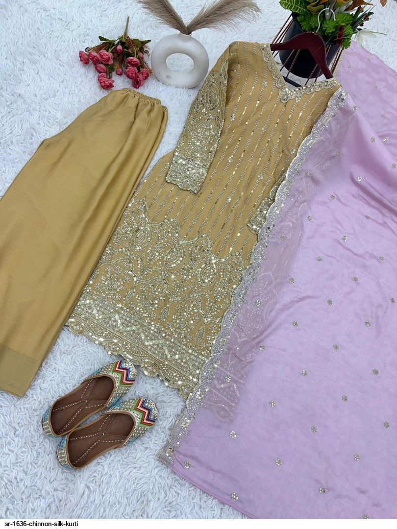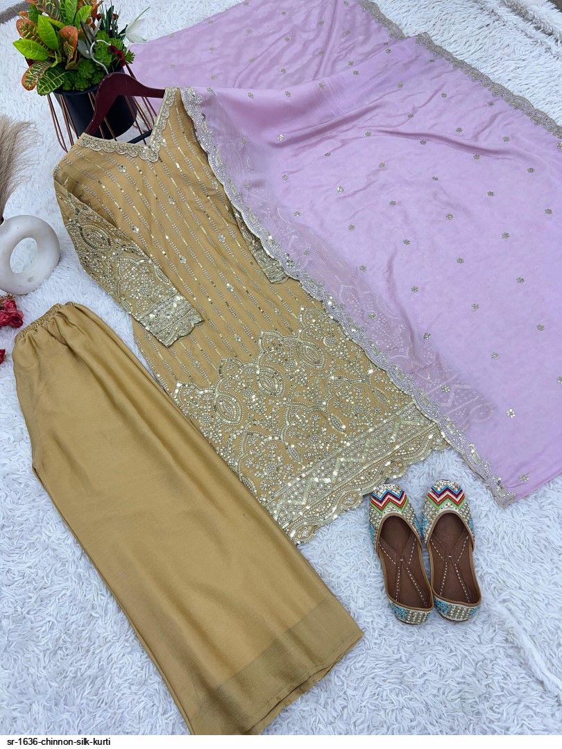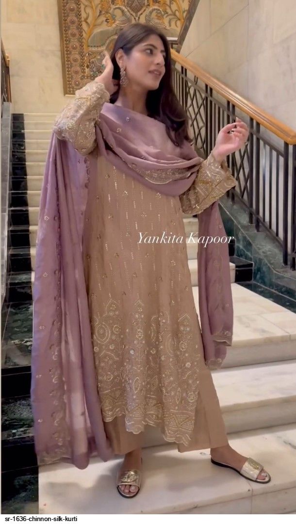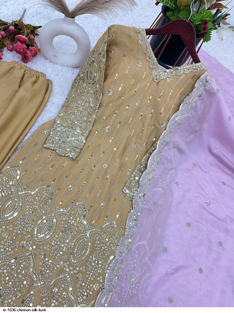 Top Fabric :Pure Heavy Chinnon Silk With Heavy Embroidery Sequence Work With Full Sleeve