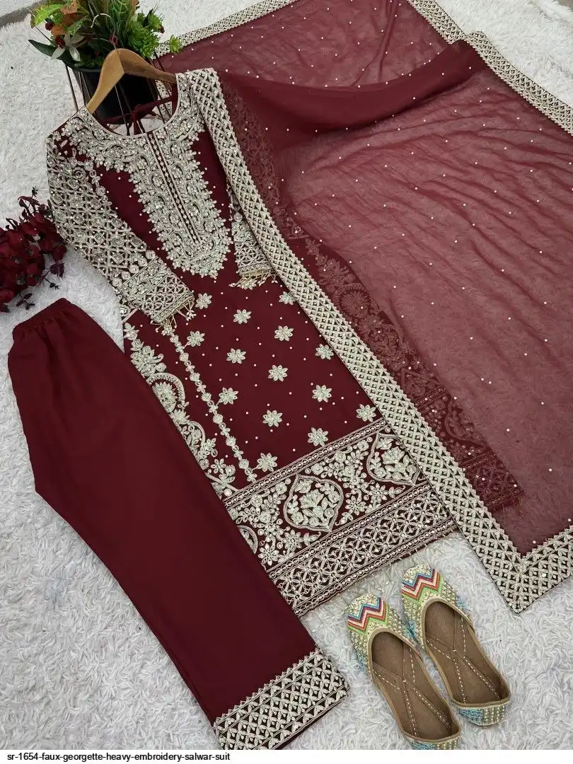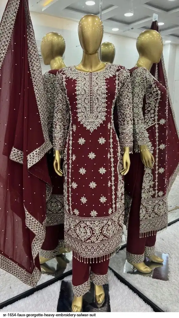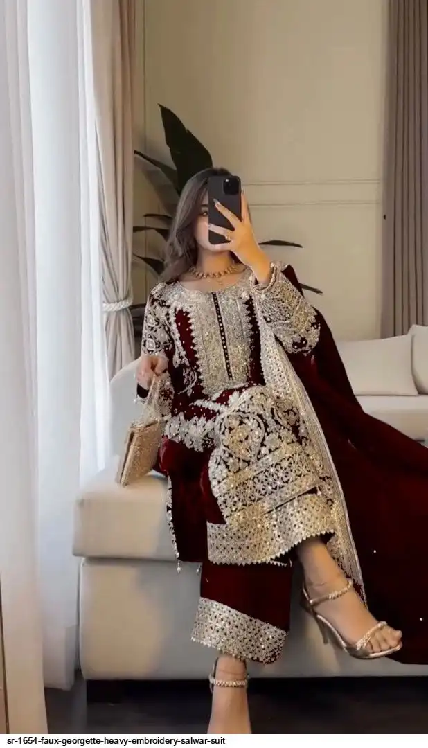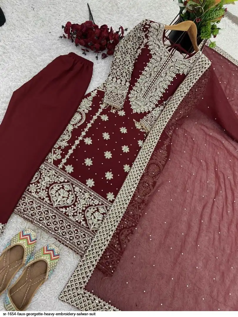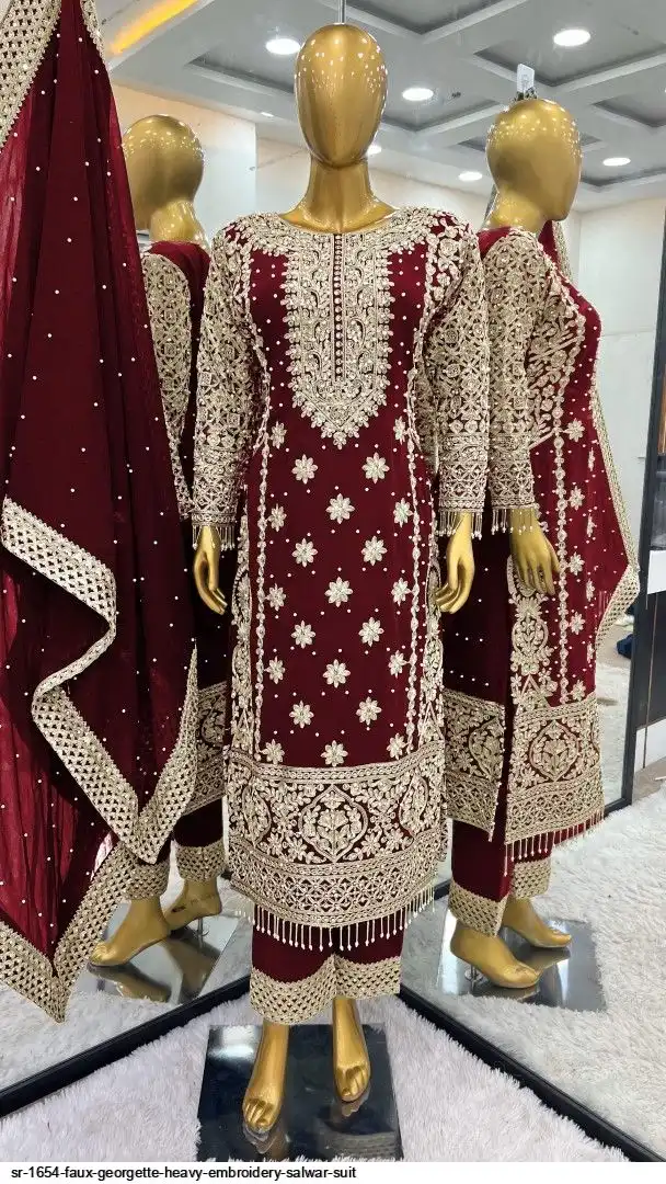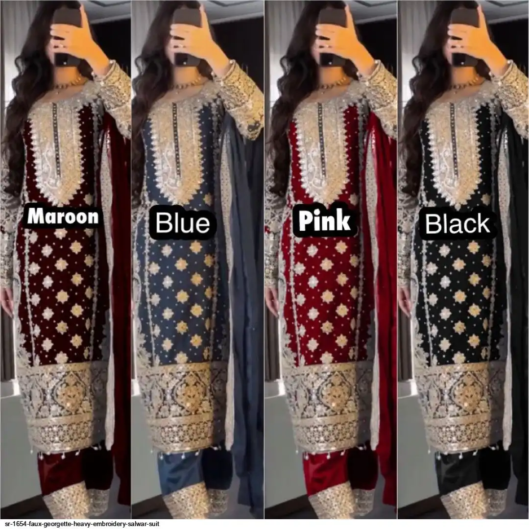 Presenting New Collection In Faux Georgette With Heavy Embroidery Sequence Work Top-Bottom And Dupatta Set Fully Stitched Ready To Wear