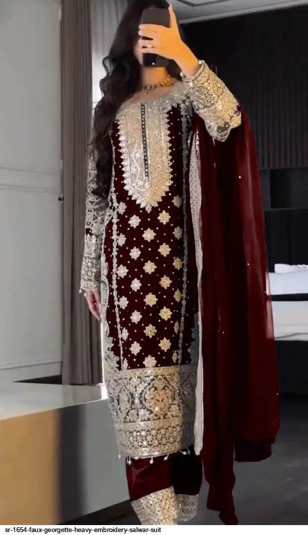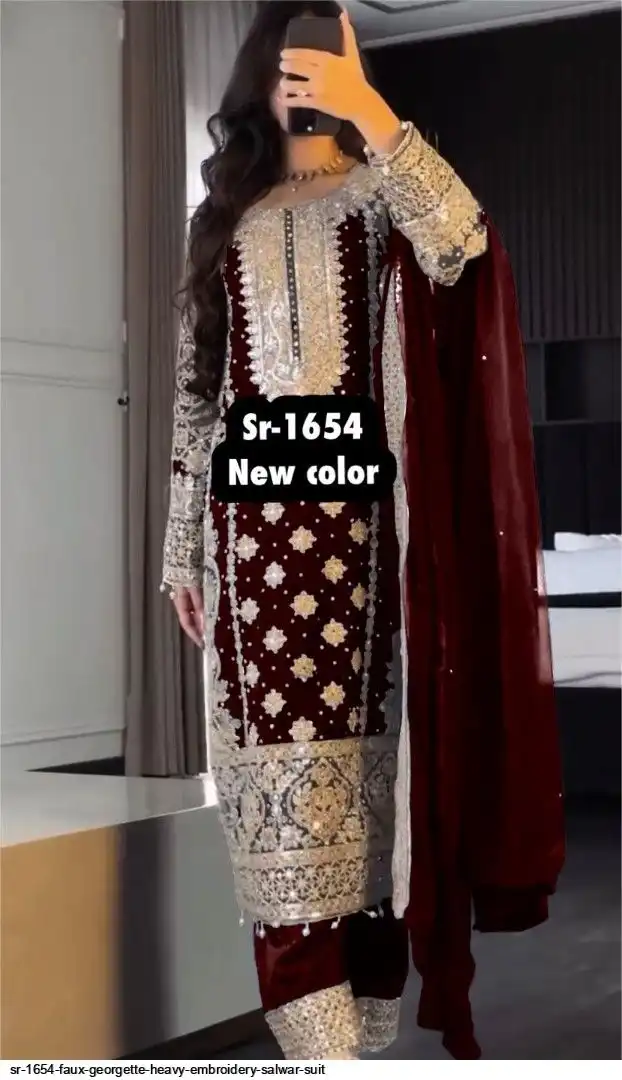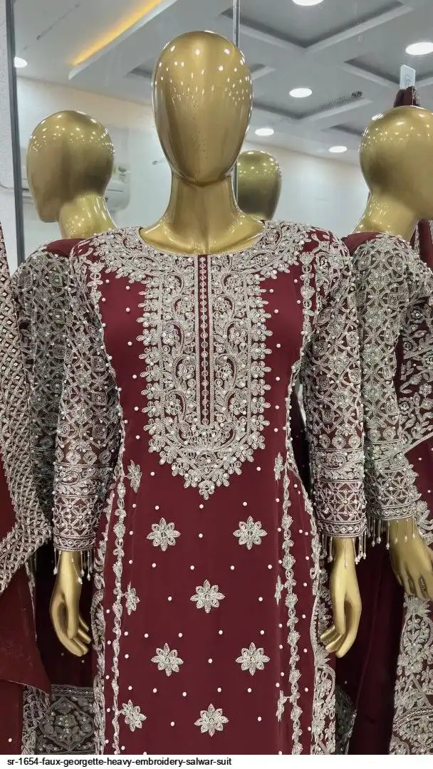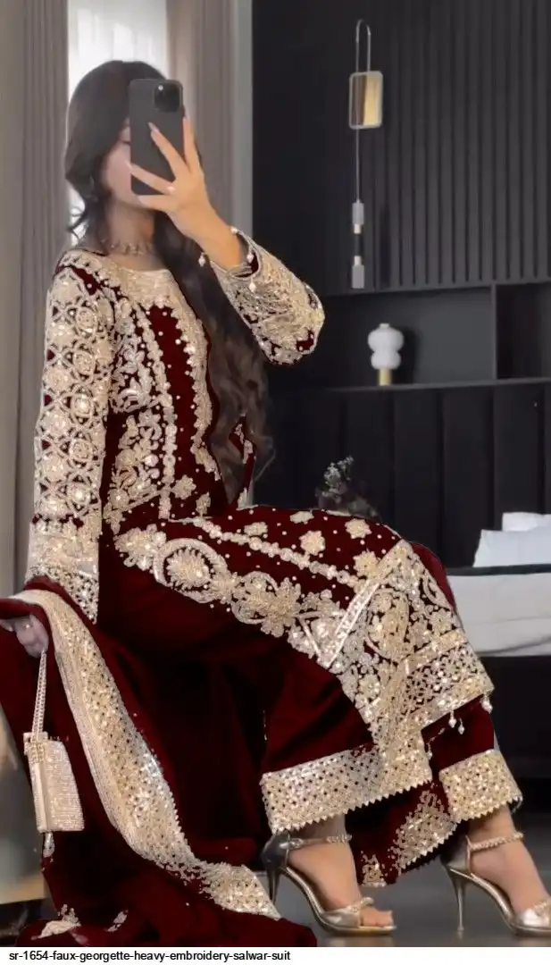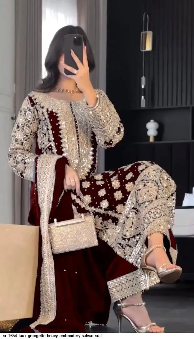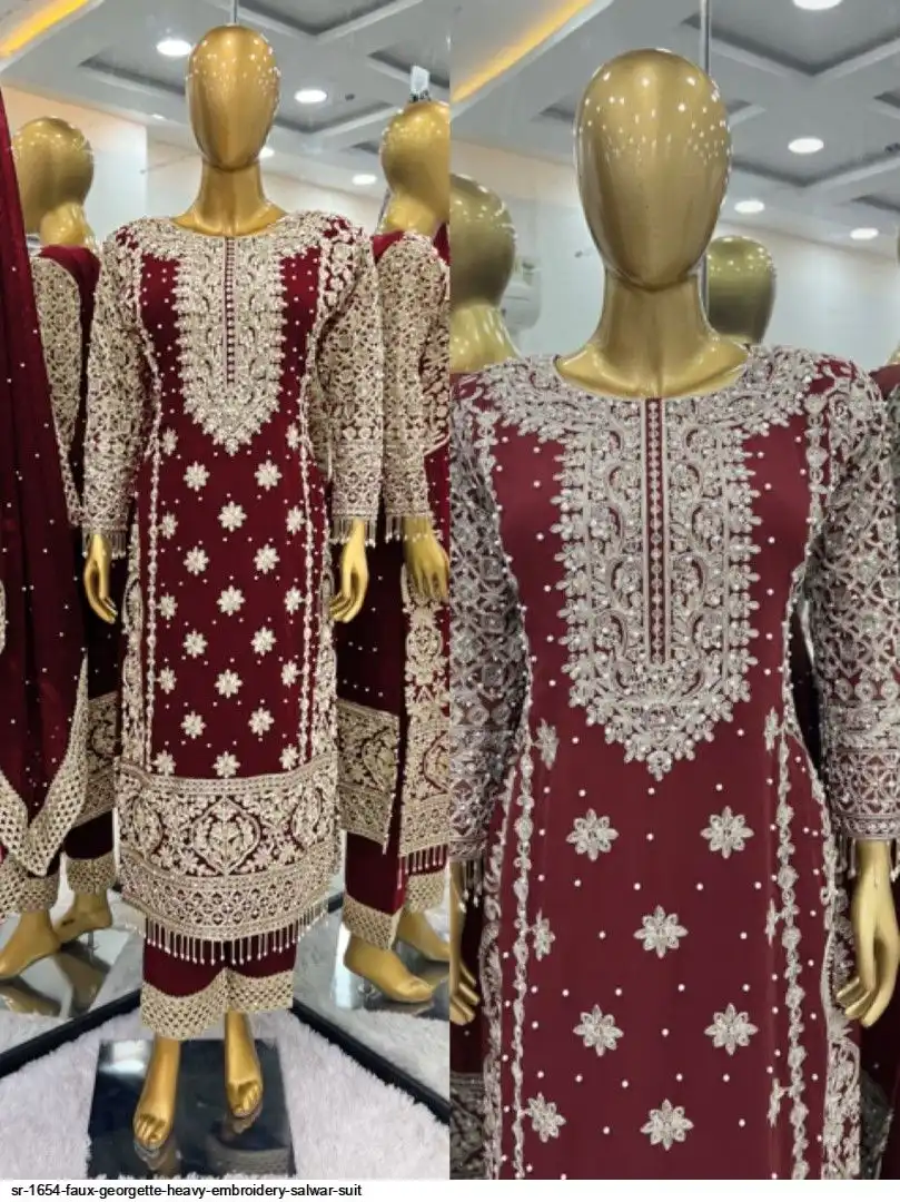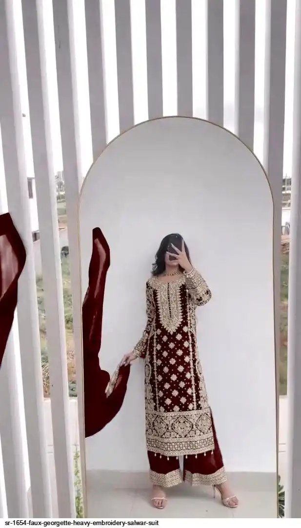 Presenting New Collection In Faux Georgette With Heavy Embroidery Sequence Work Top-Bottom And Dupatta Set Fully Stitched Ready To Wear
