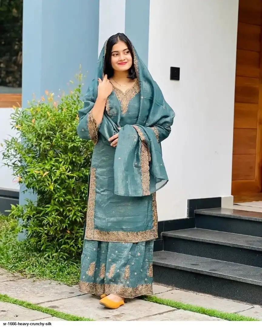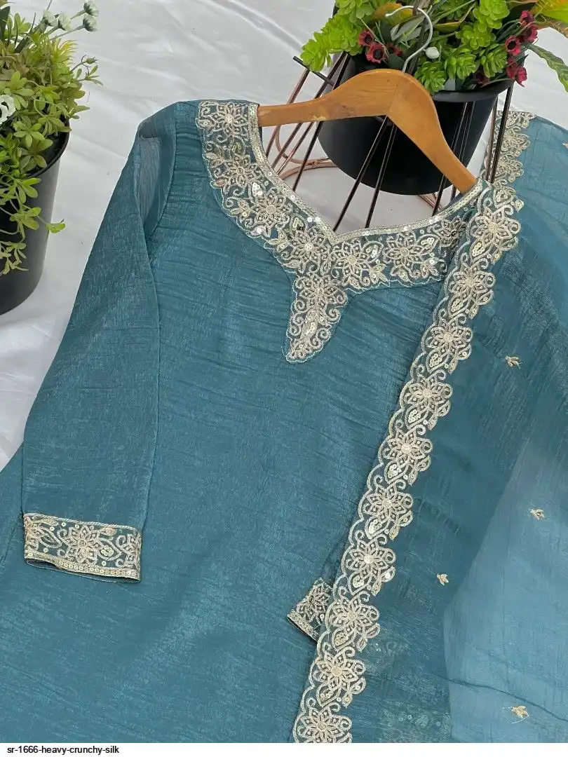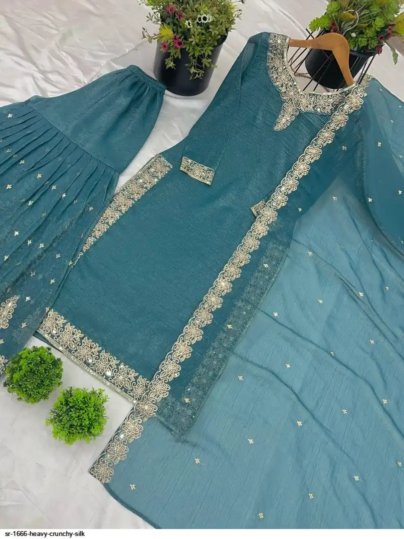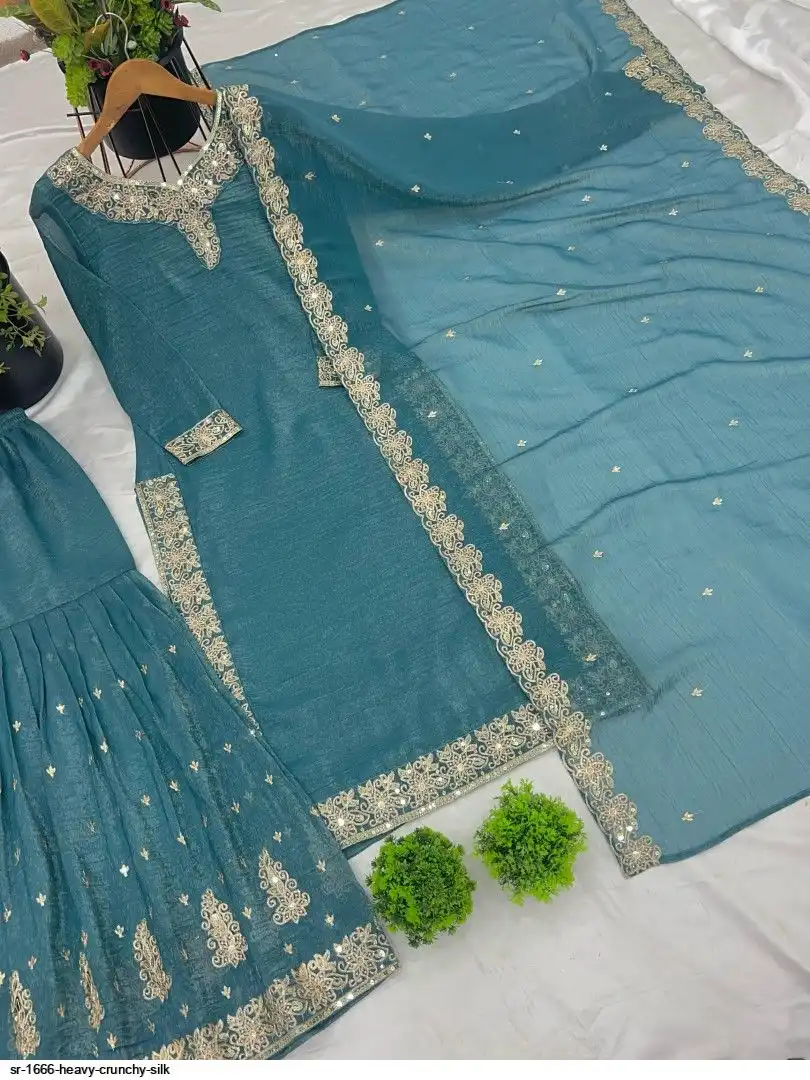 Bottom Fabric:-Heavy Crunchy Silk With Heavy Embroidery-Sequence Work with Elastic( *Full Stiched)