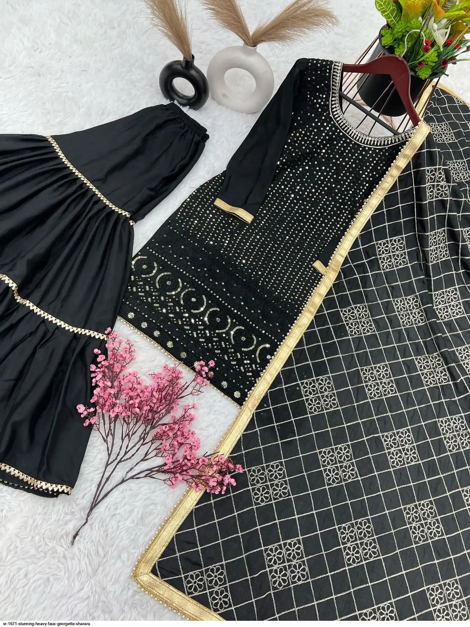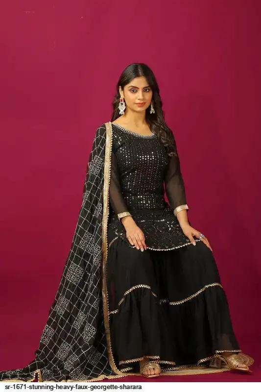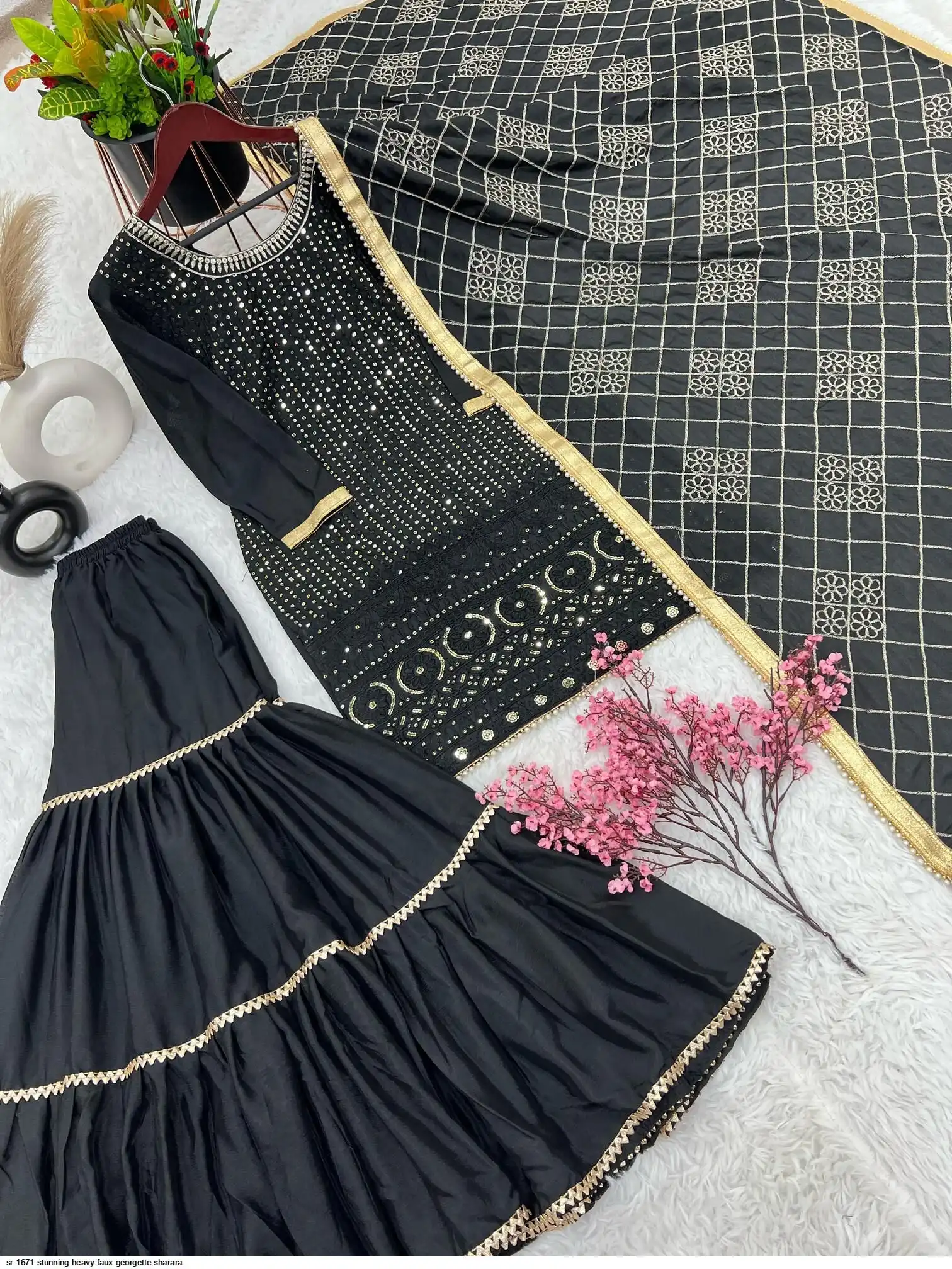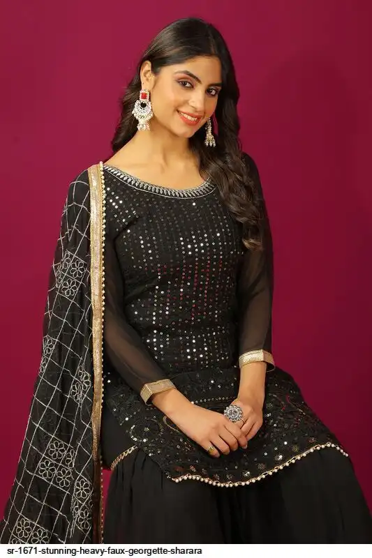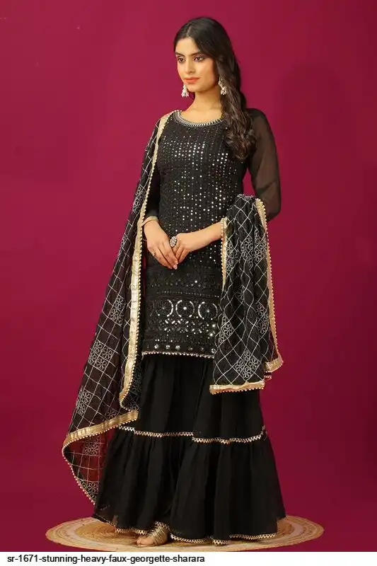 Plazo Fabrics : Faux Georgette With Raffal Work