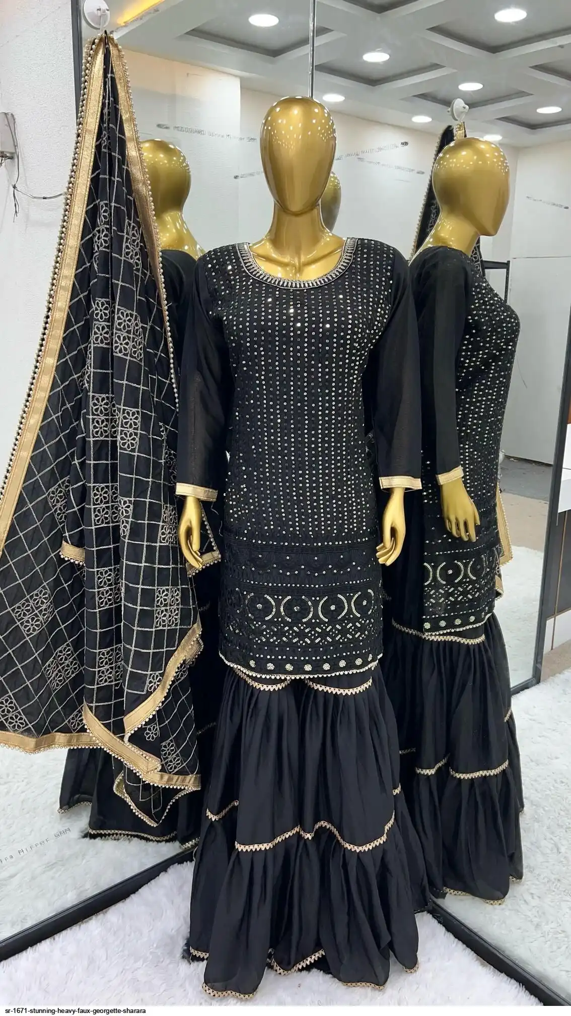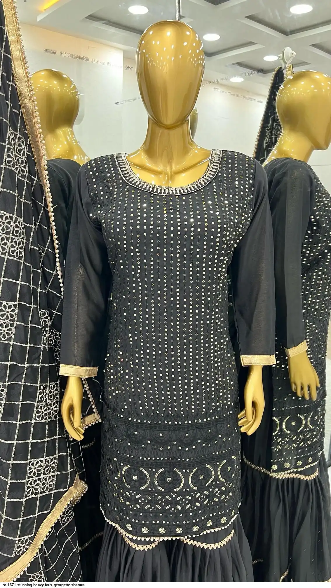 Top Fabrics :Faux Georgette With Havvy Embroidery And 5mm Siqueance Work With Moti Less With Sleevs