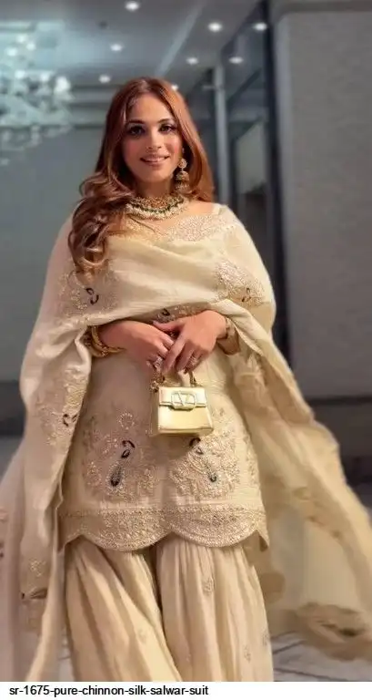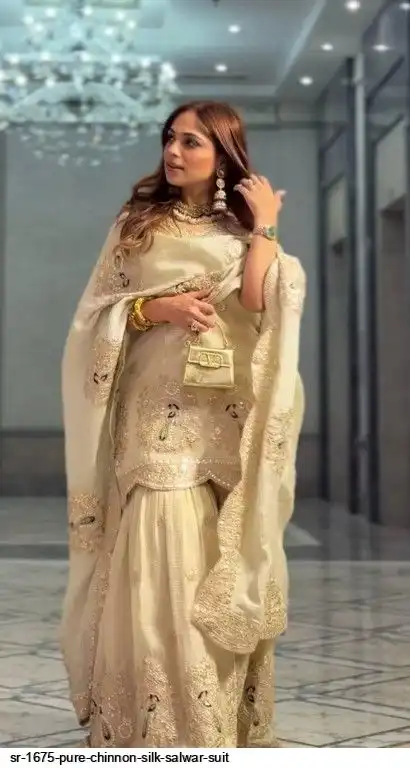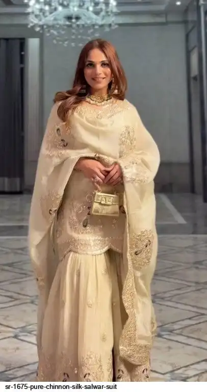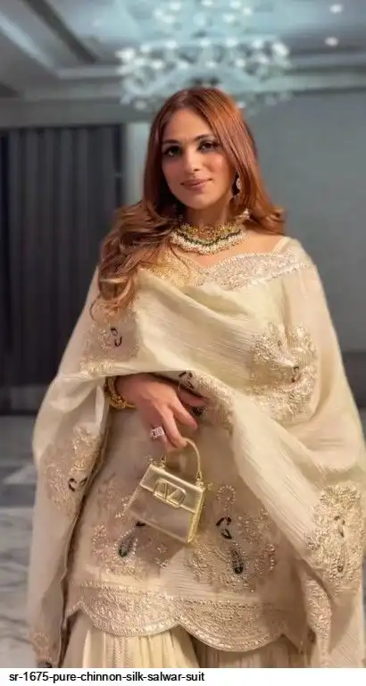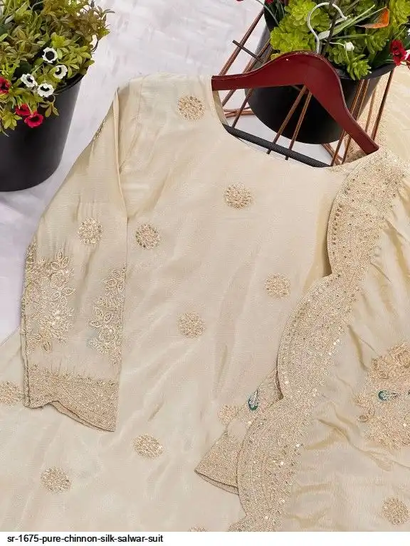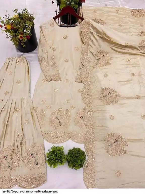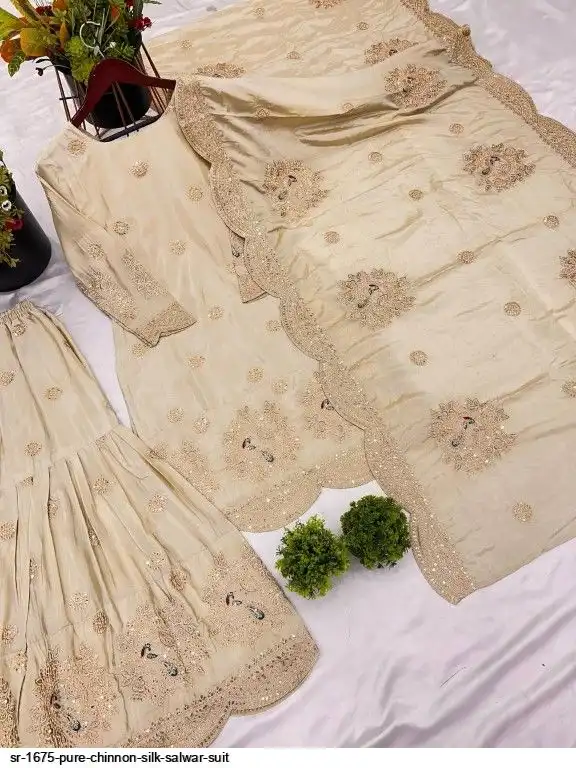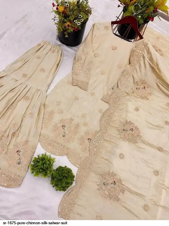 *Presenting New Designer Collection In Pure Chinnon With Heavy Embroidery Coding Dori-Sequence Work Top-Bottom And Dupatta Set Fully Stitched Ready To Wear *