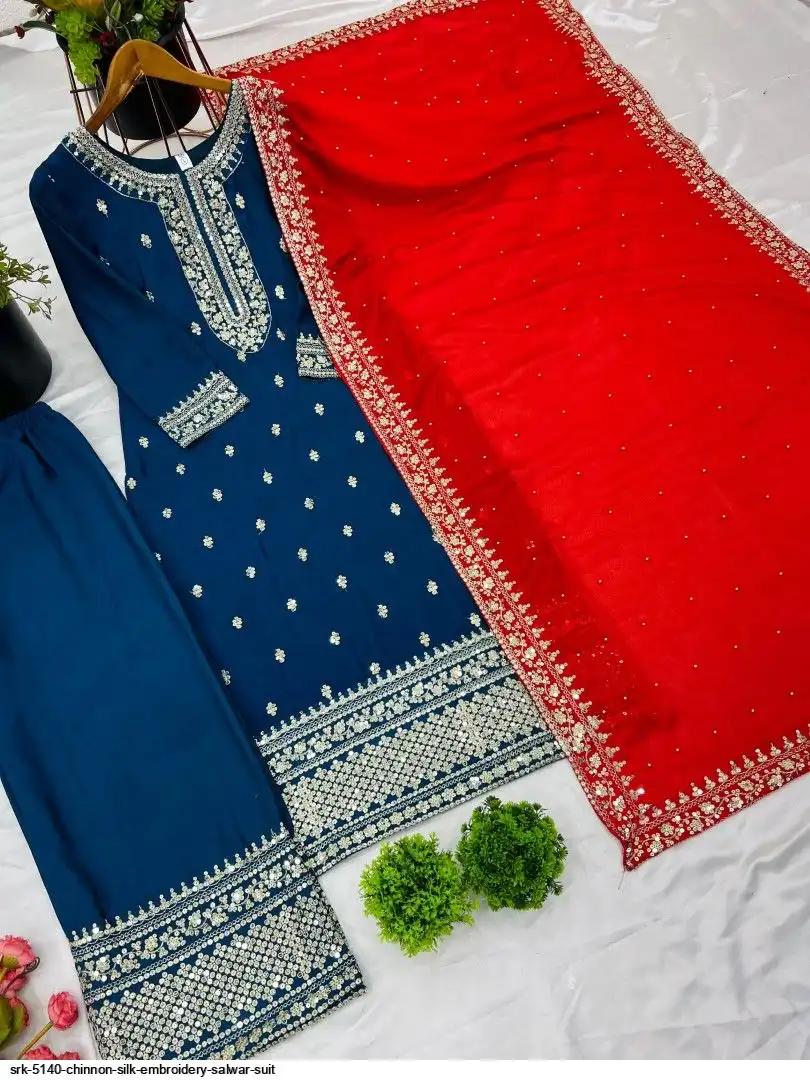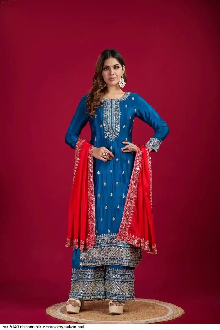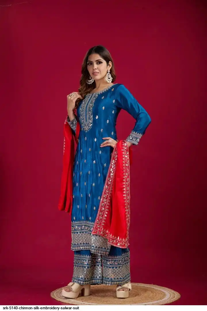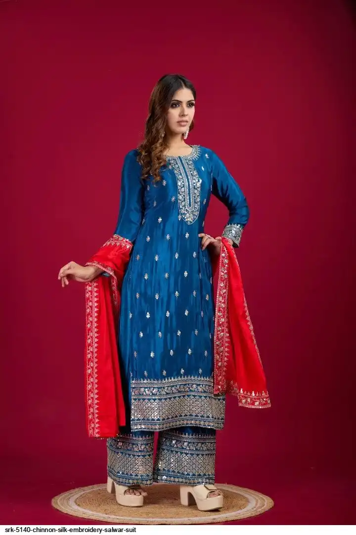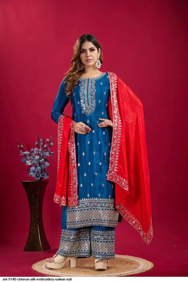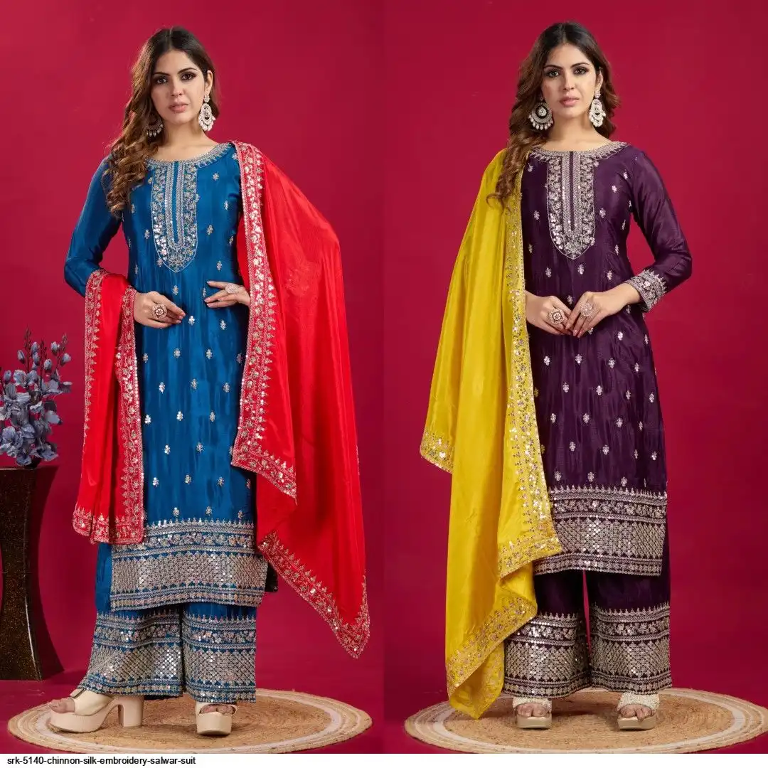 Presenting New Festival Collection In Chinnon And Heavy Embroidery Sequence Work Top-Bottom And Dupatta Set Fully Stitched Ready To Wear