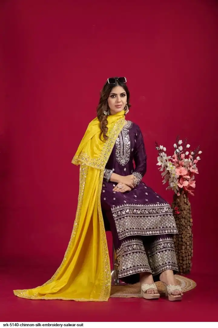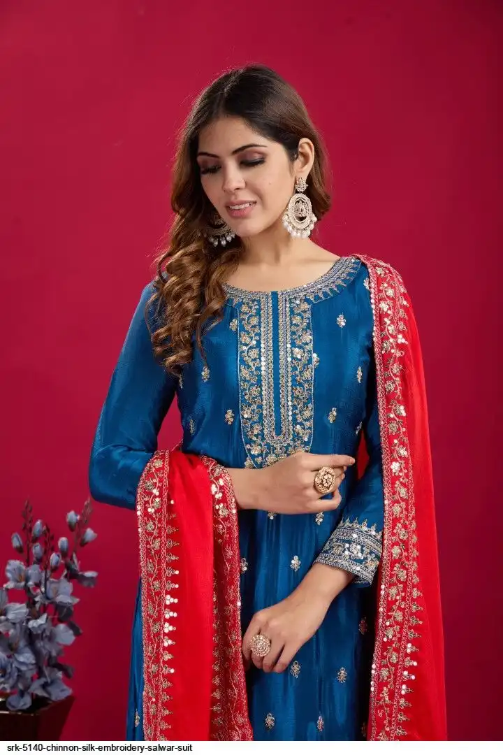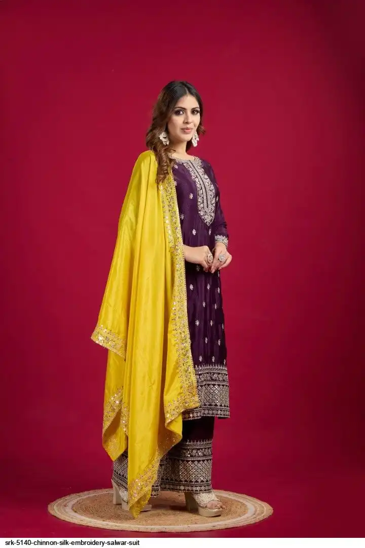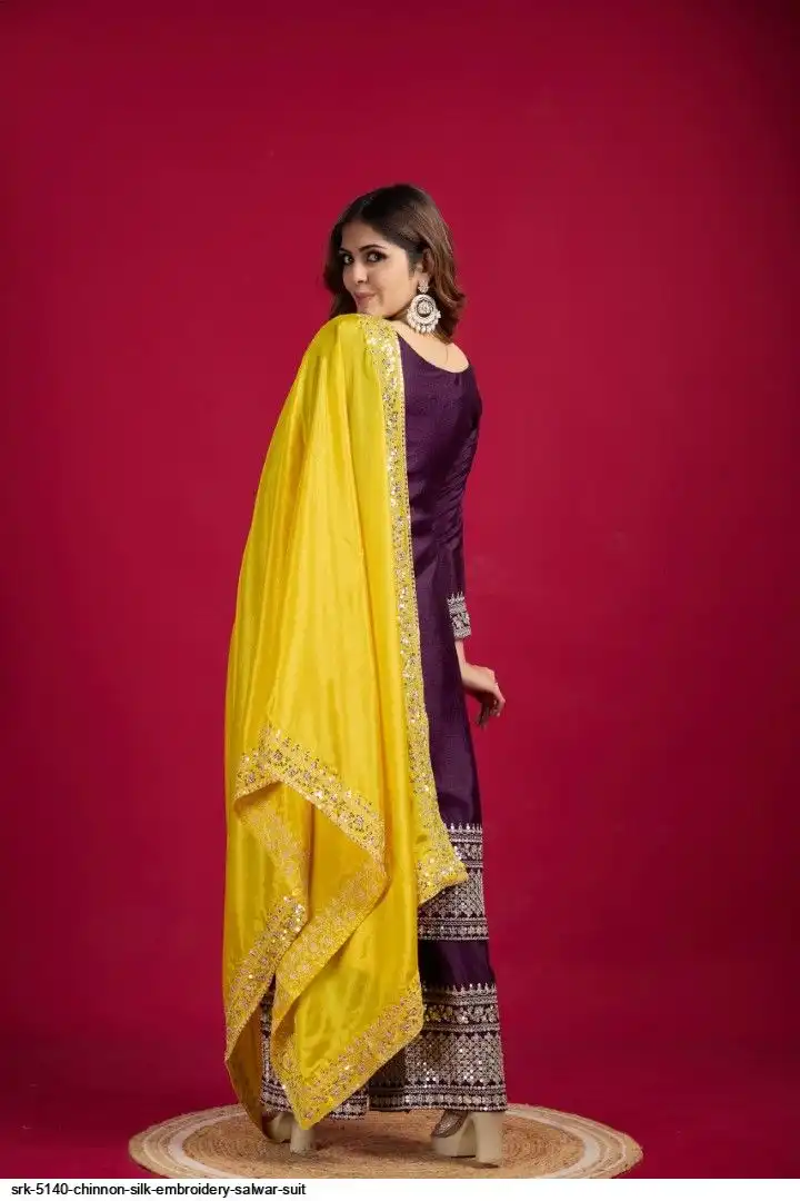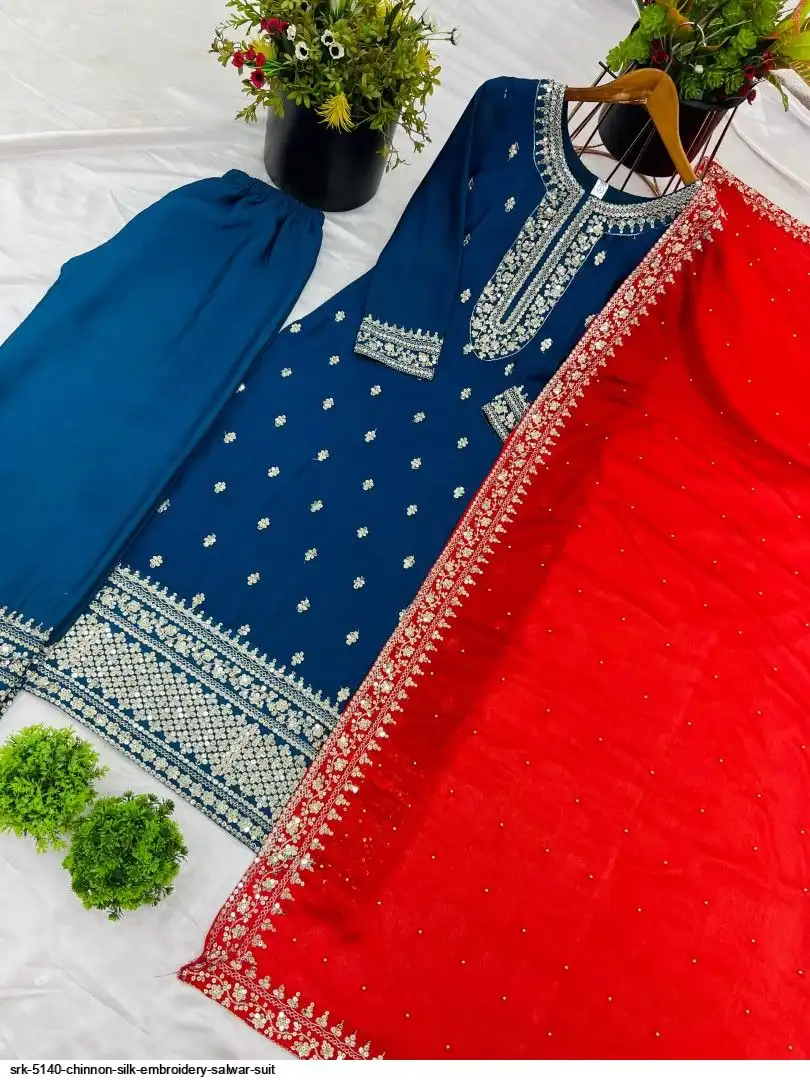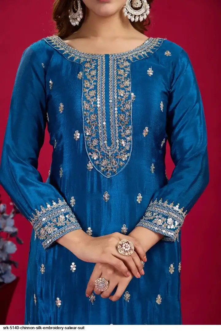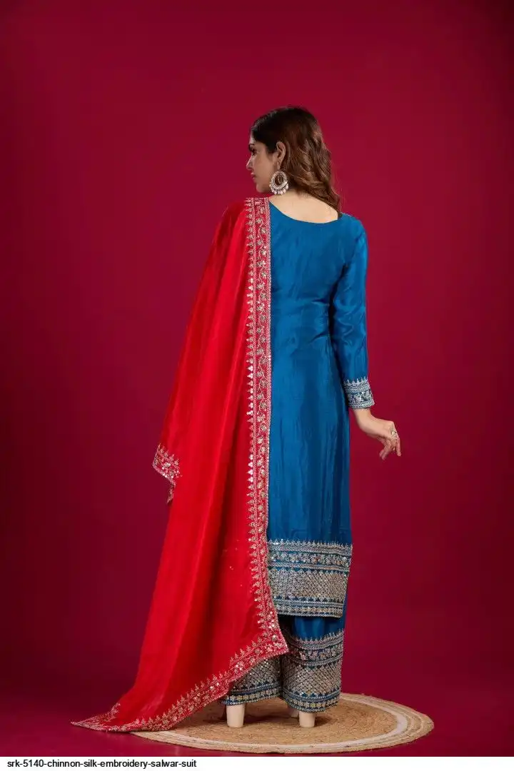 Presenting New Festival Collection In Chinnon And Heavy Embroidery Sequence Work Top-Bottom And Dupatta Set Fully Stitched Ready To Wear