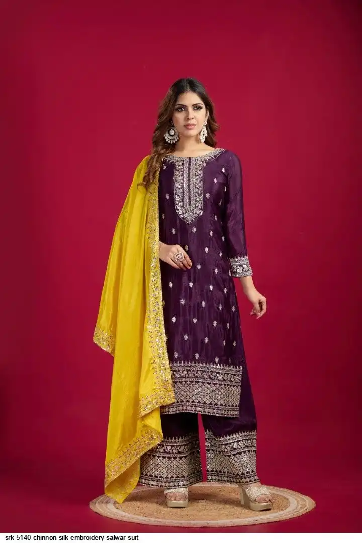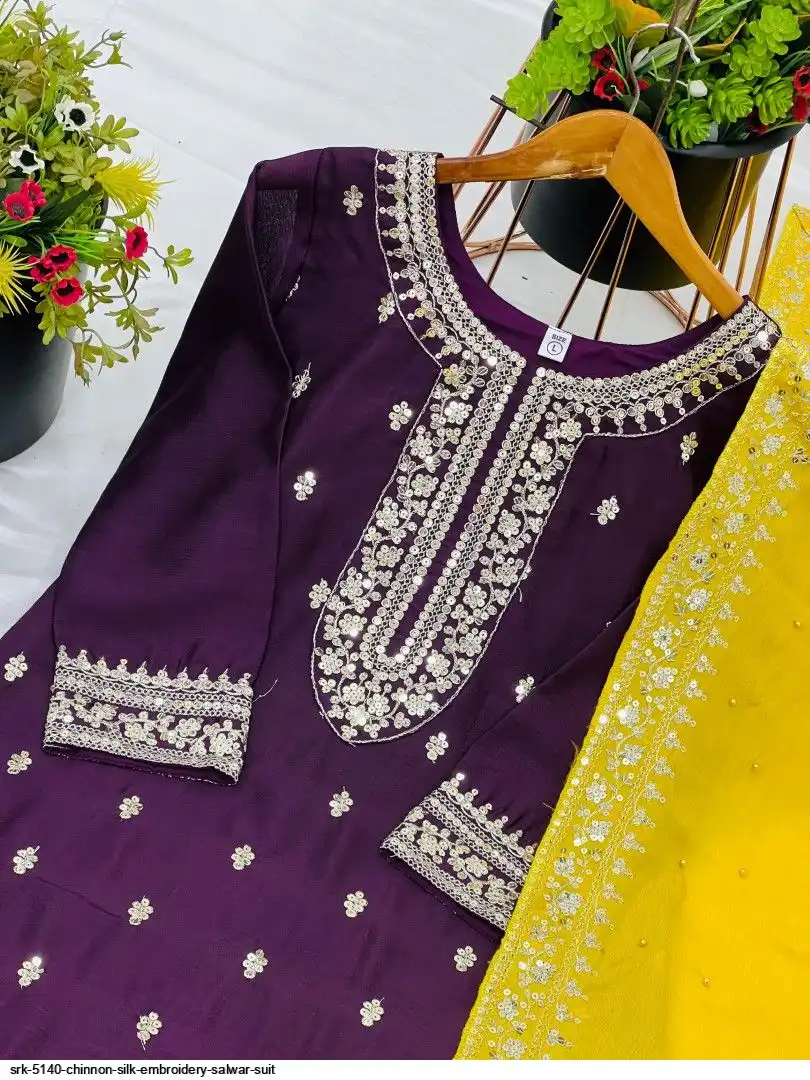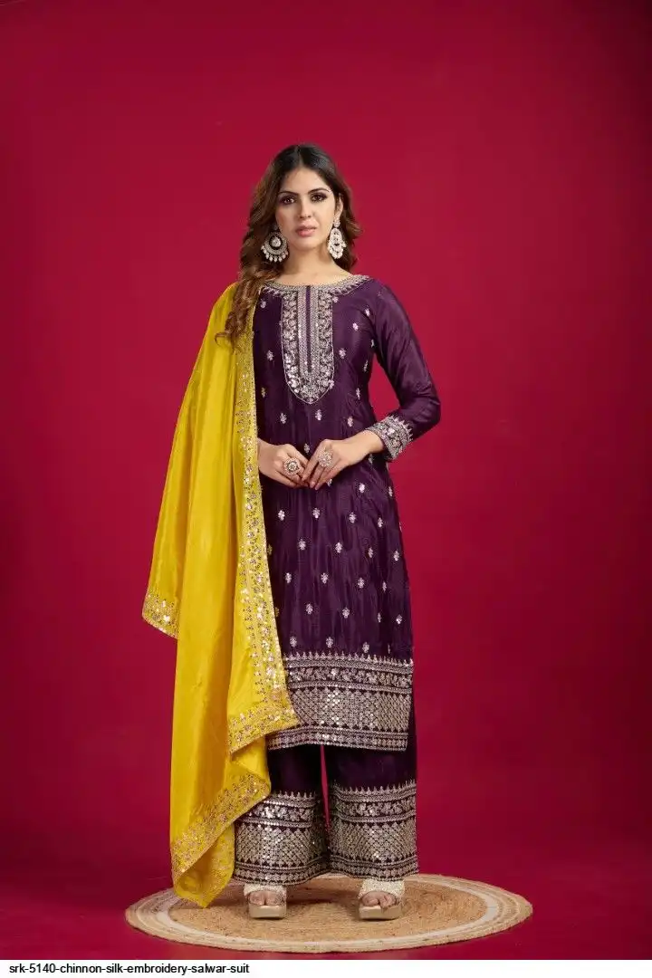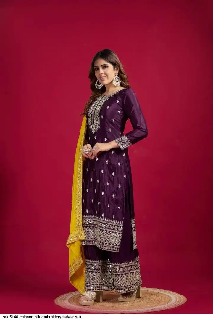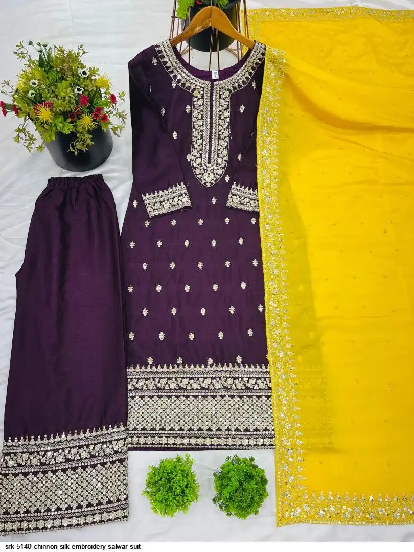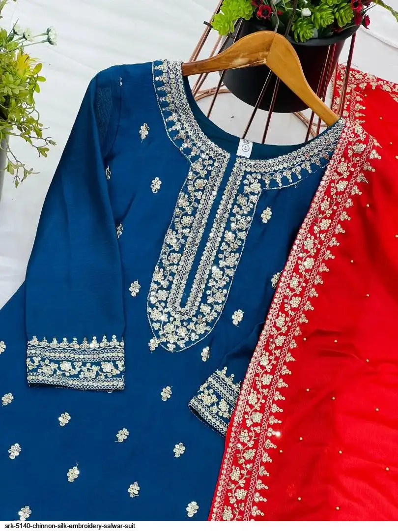 Presenting New Festival Collection In Chinnon And Heavy Embroidery Sequence Work Top-Bottom And Dupatta Set Fully Stitched Ready To Wear