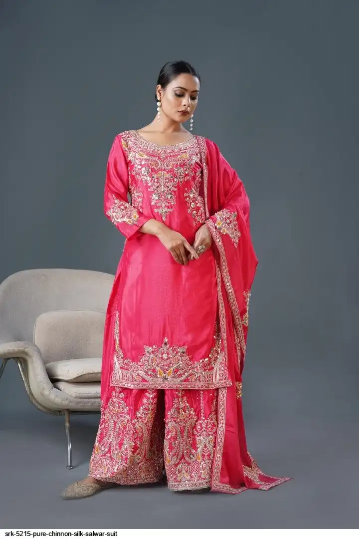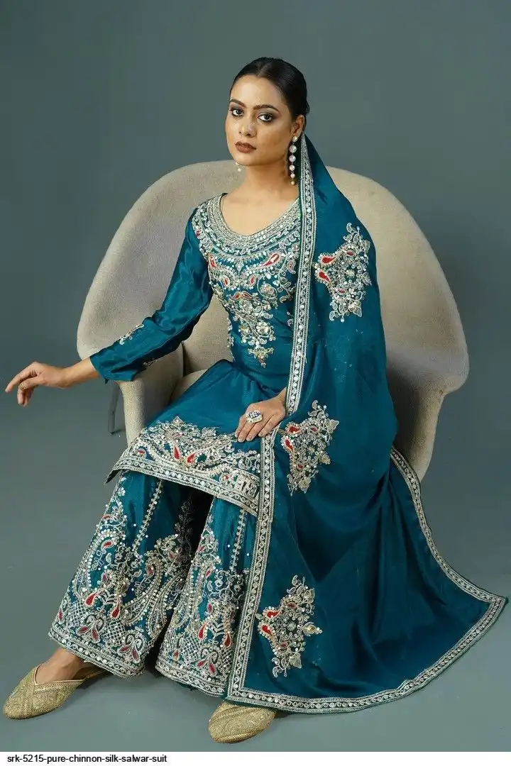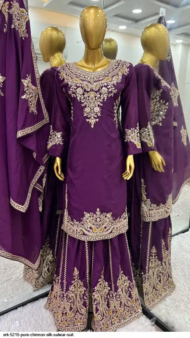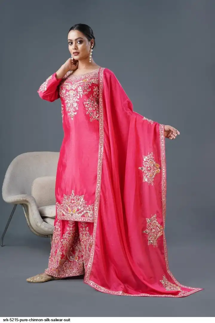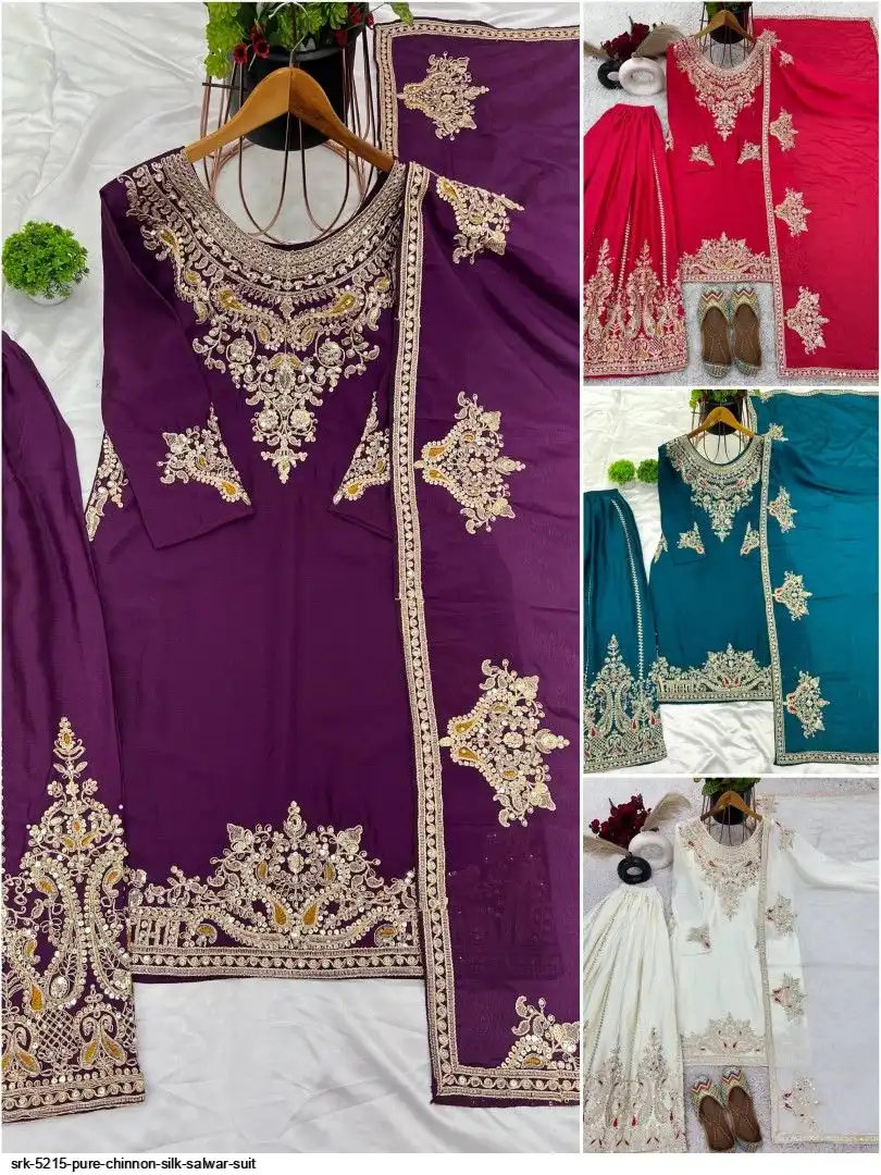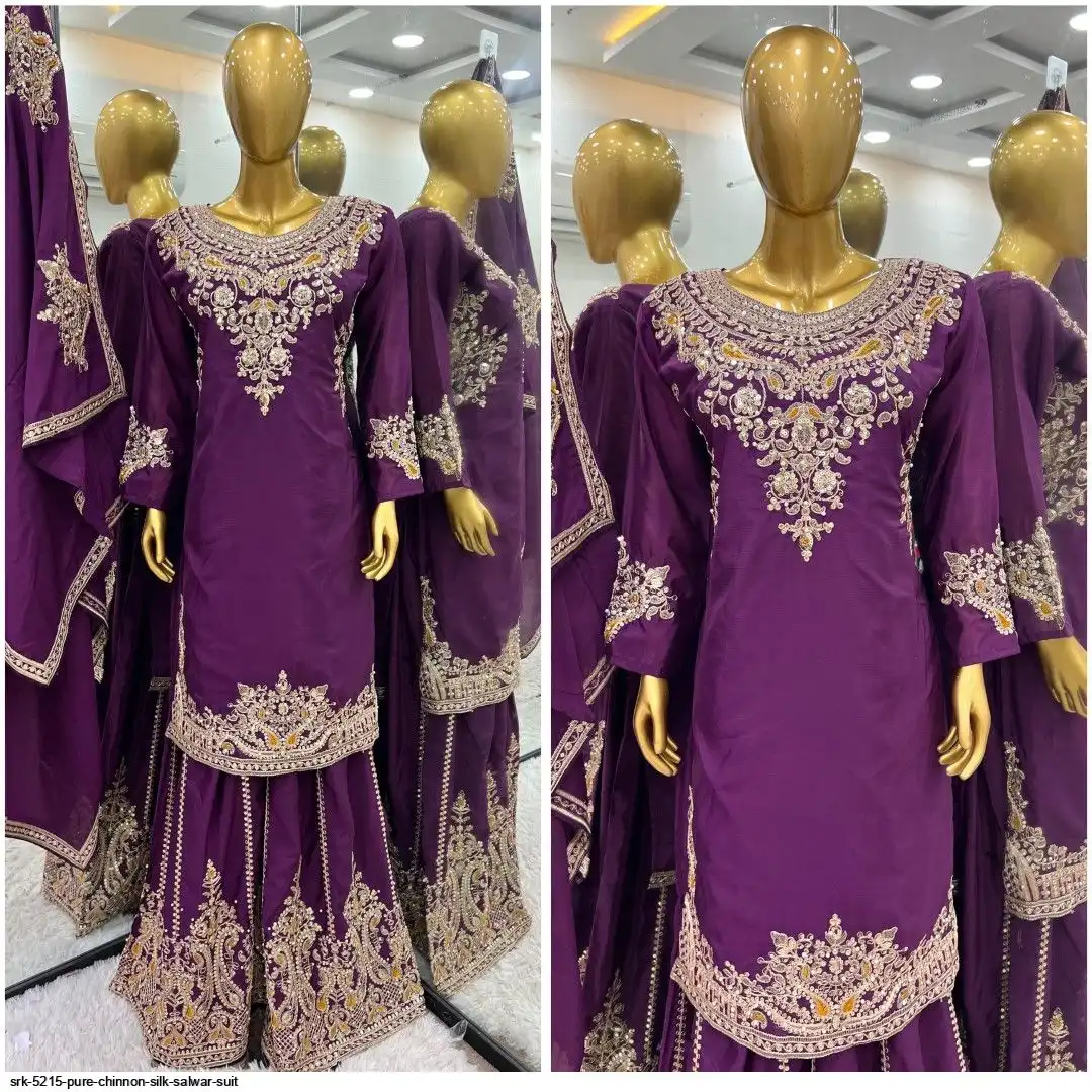 Presenting New Designer Collection In Pure Chinnon With Heavy Embroidery Coding Dori-Sequence Work Top-Bottom And Dupatta Set Fully Stitched Ready To Wear