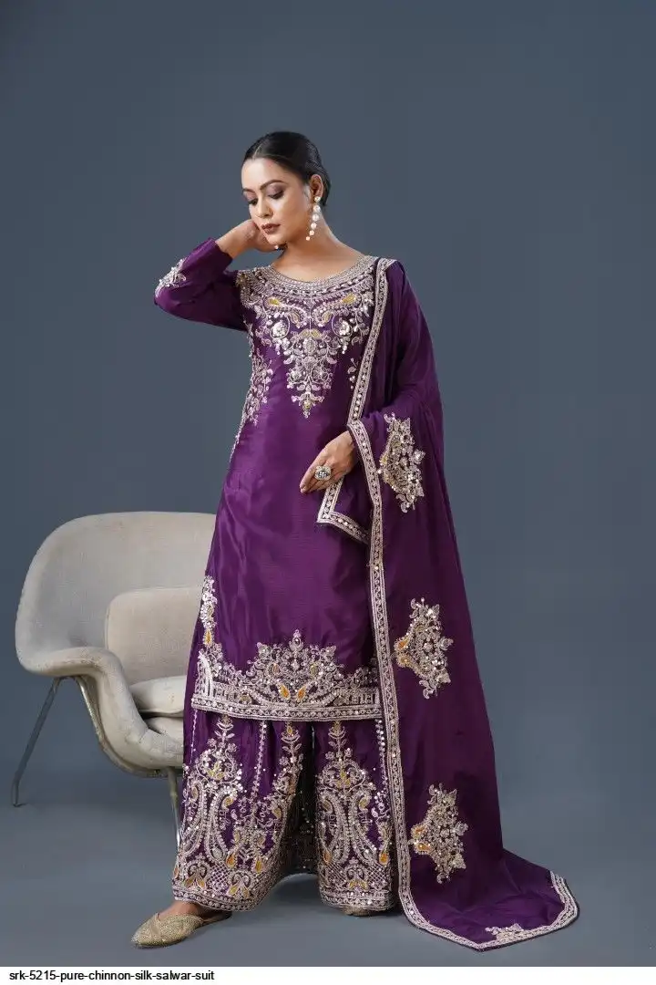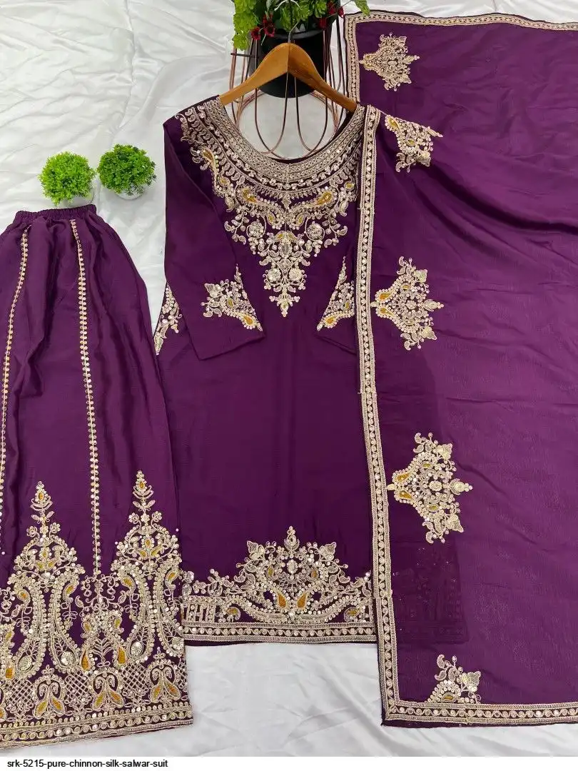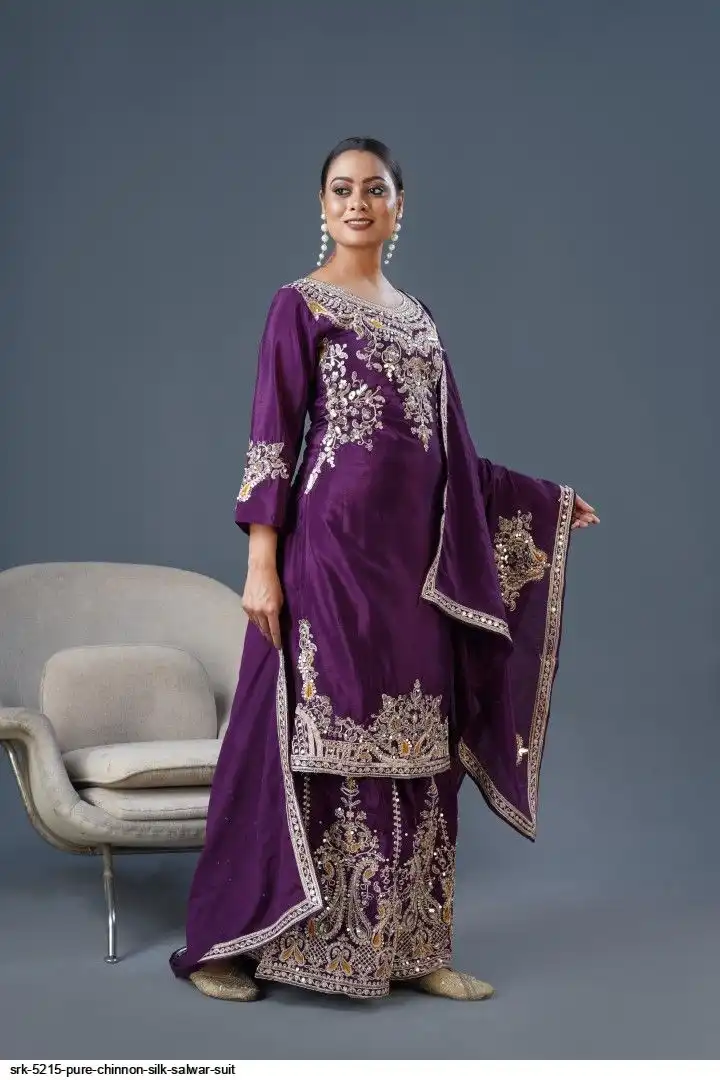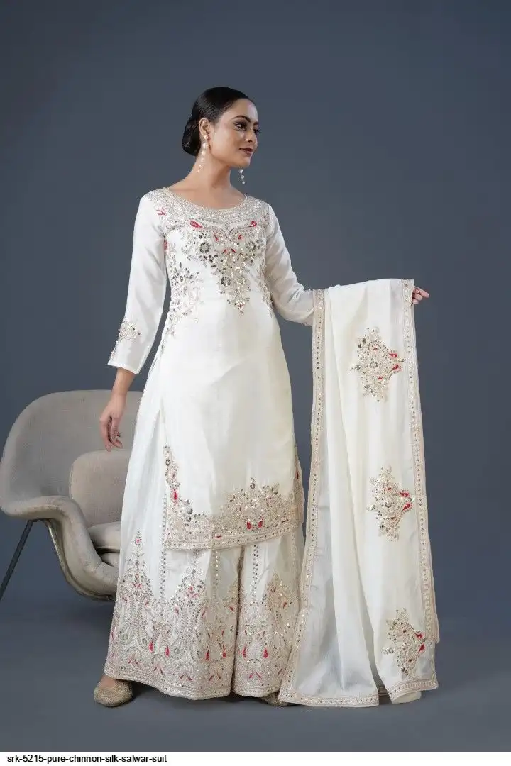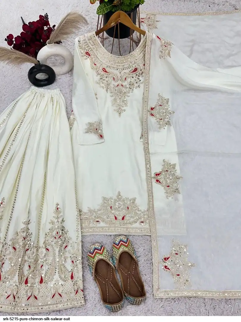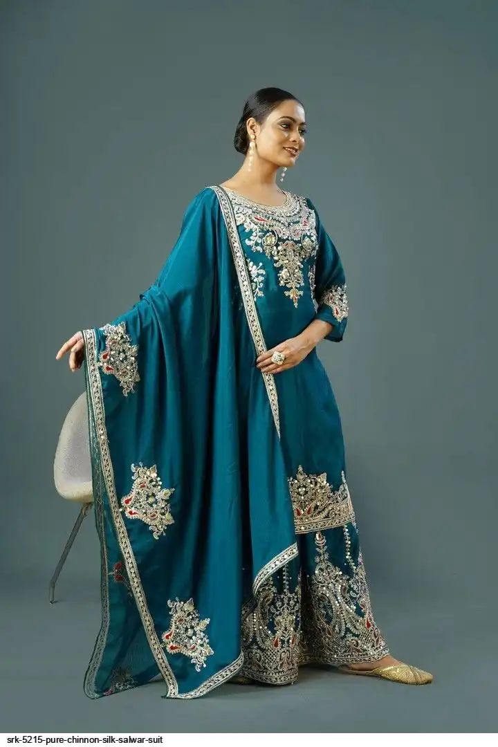 Presenting New Designer Collection In Pure Chinnon With Heavy Embroidery Coding Dori-Sequence Work Top-Bottom And Dupatta Set Fully Stitched Ready To Wear