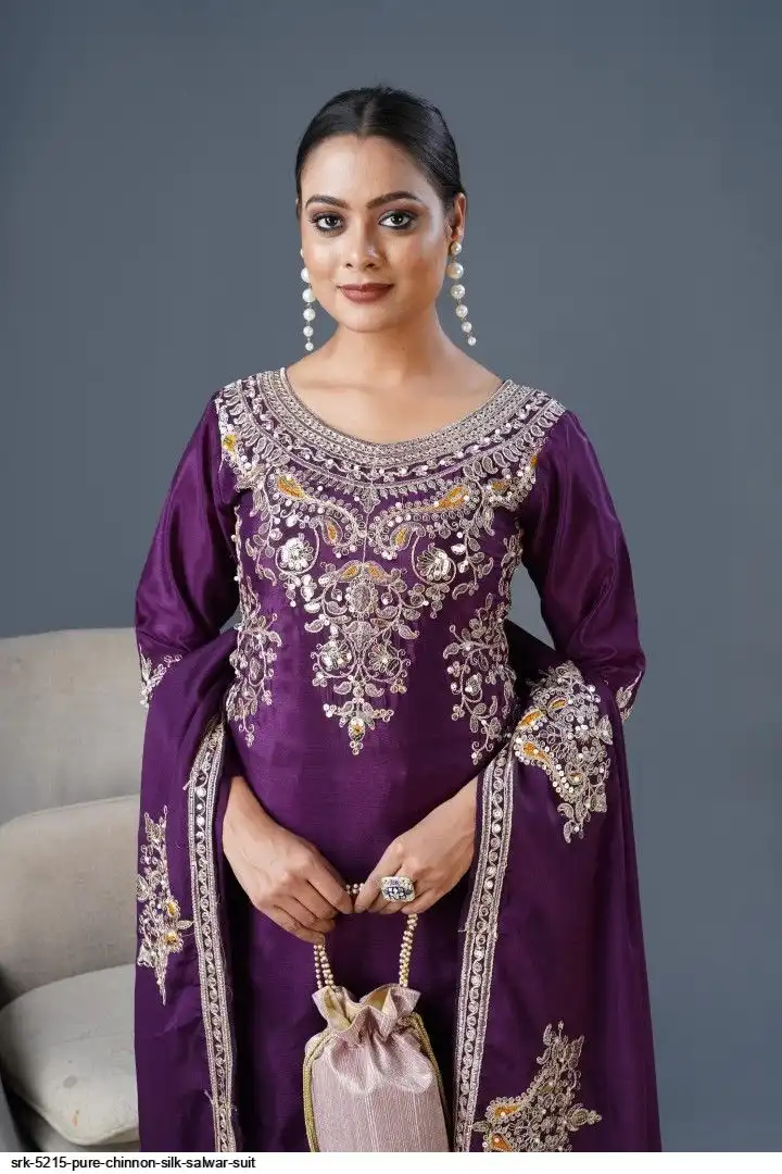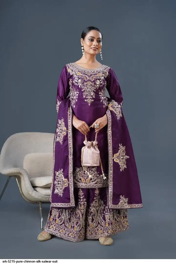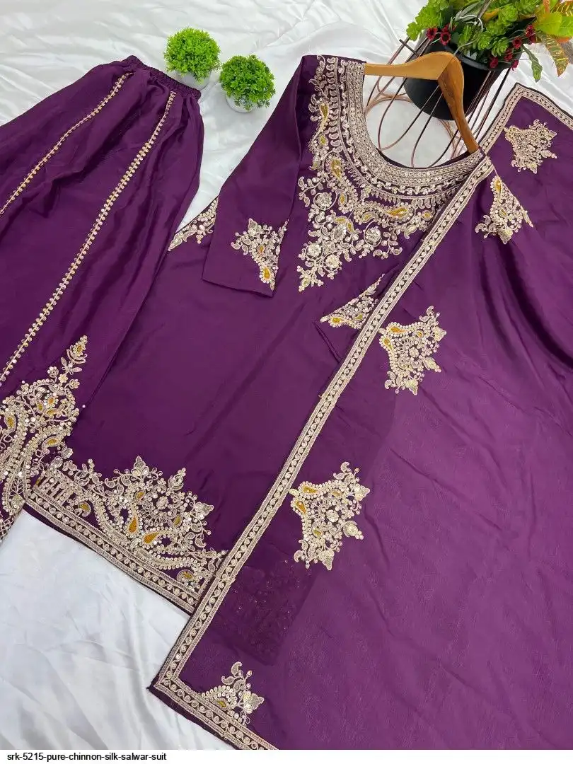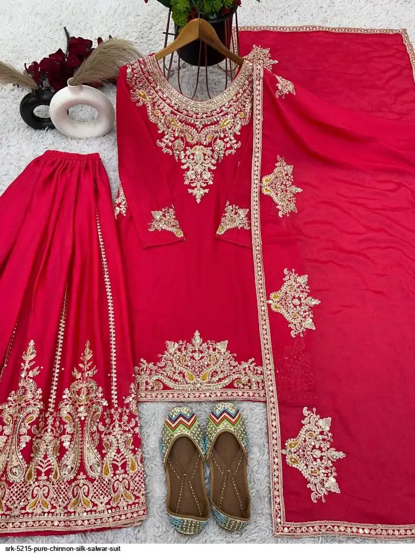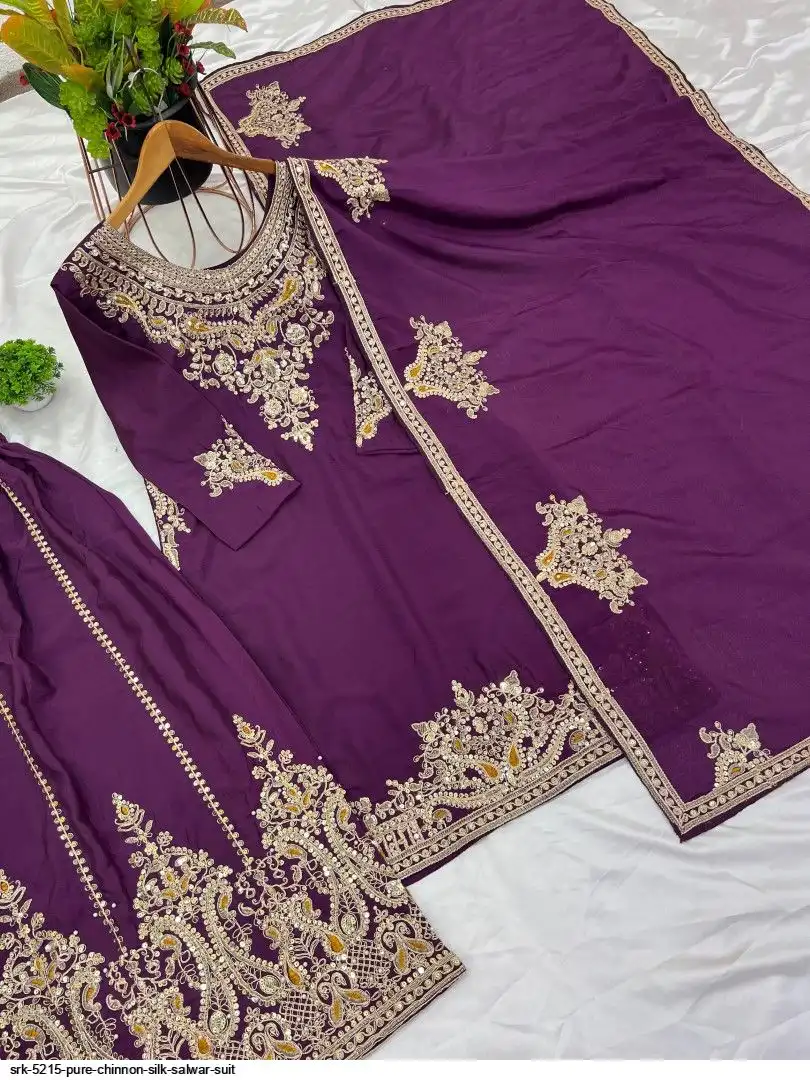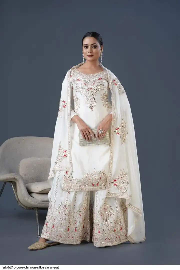 Presenting New Designer Collection In Pure Chinnon With Heavy Embroidery Coding Dori-Sequence Work Top-Bottom And Dupatta Set Fully Stitched Ready To Wear