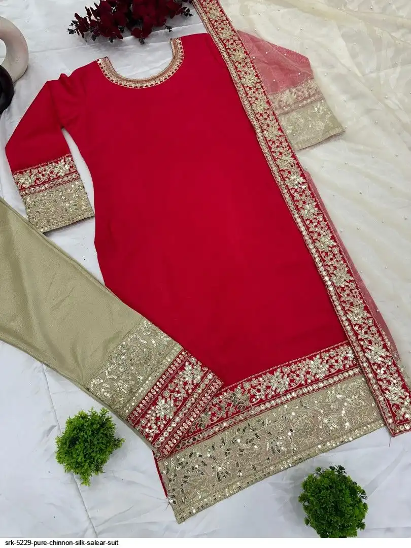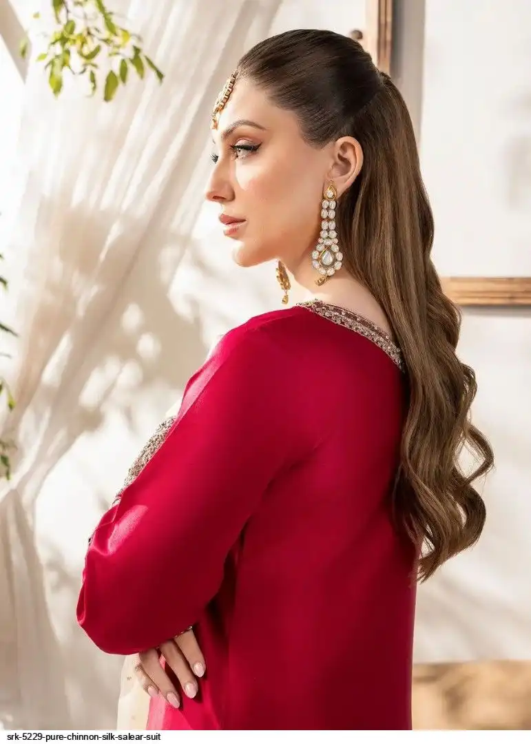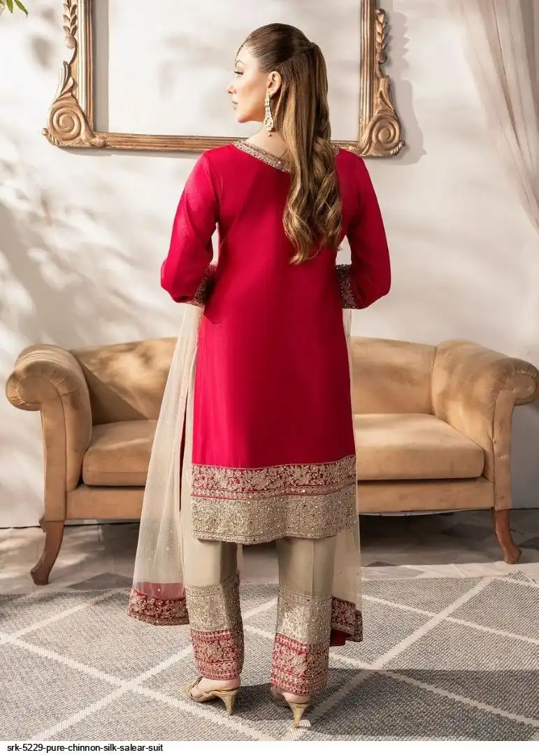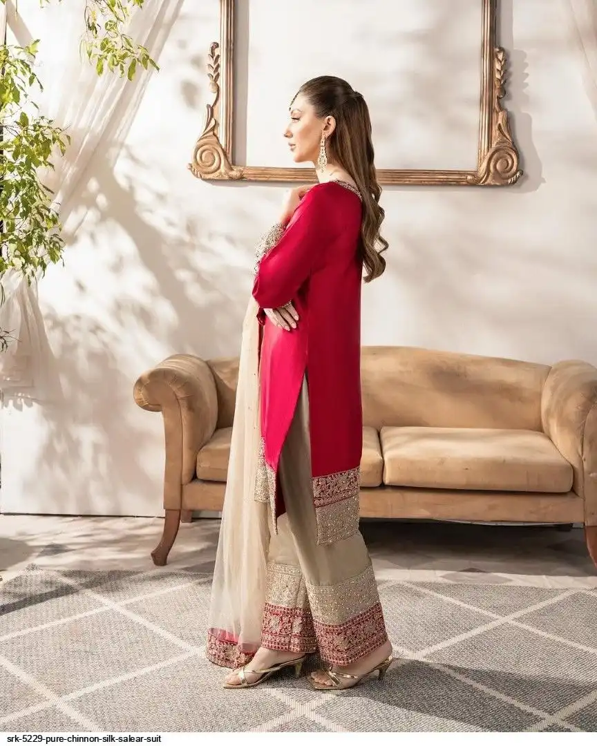 Presenting New Designer Collection In Pure Chinnon With Heavy Embroidery Coding Dori-Sequence Work Top-Bottom And Dupatta Set Fully Stitched Ready To Wear