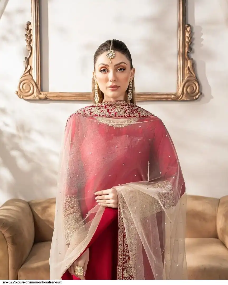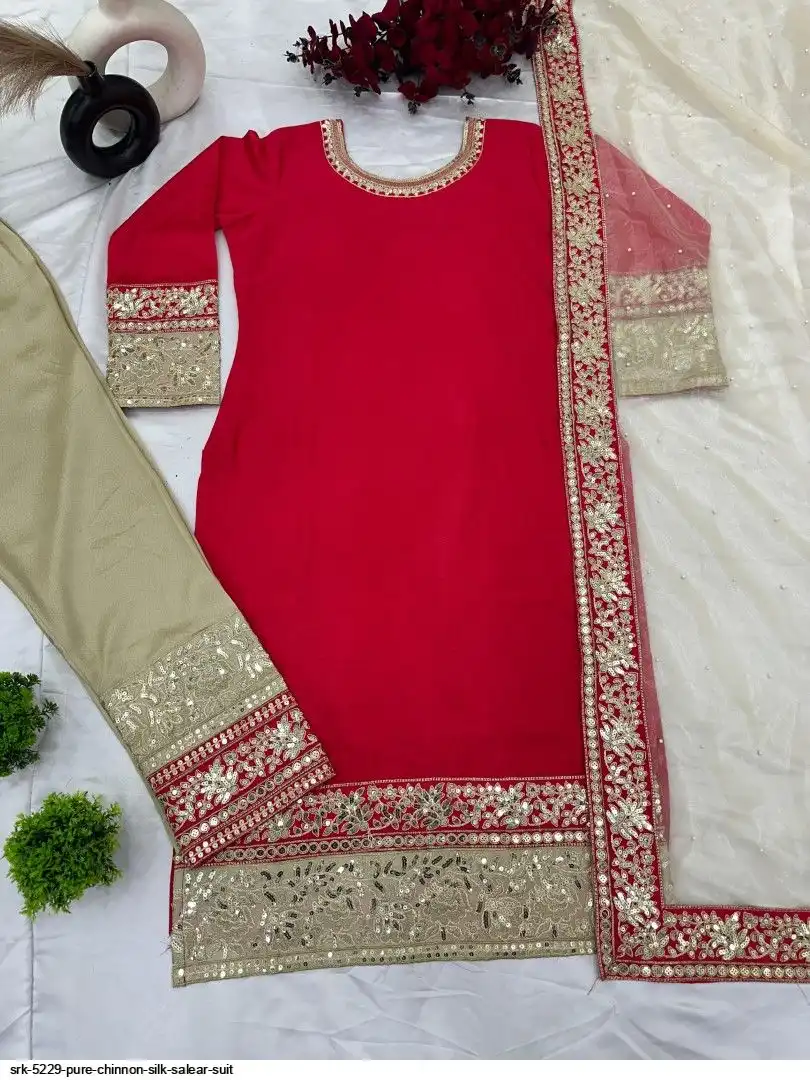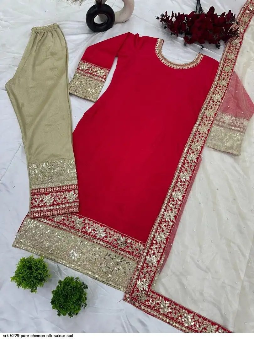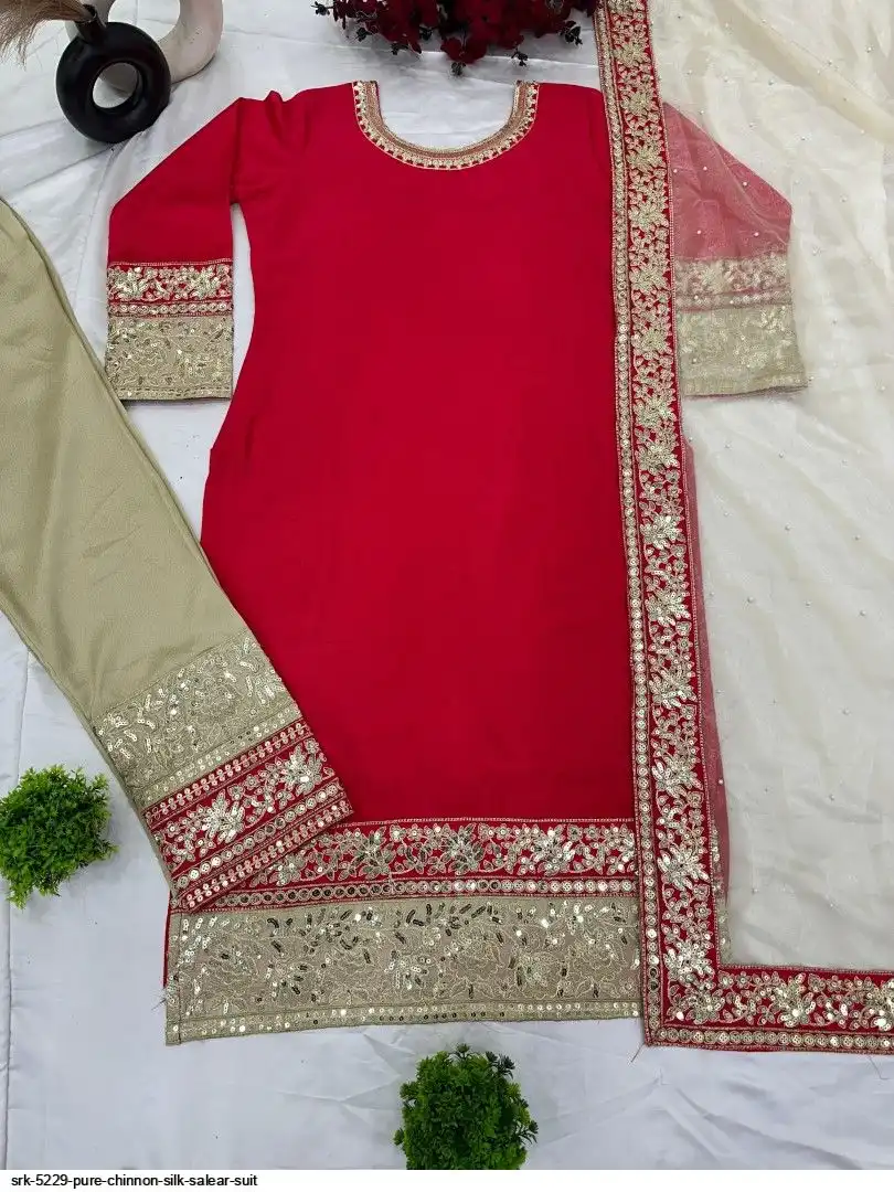 Presenting New Designer Collection In Pure Chinnon With Heavy Embroidery Coding Dori-Sequence Work Top-Bottom And Dupatta Set Fully Stitched Ready To Wear