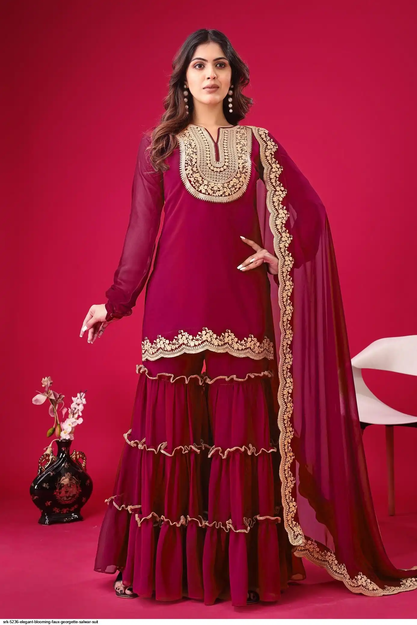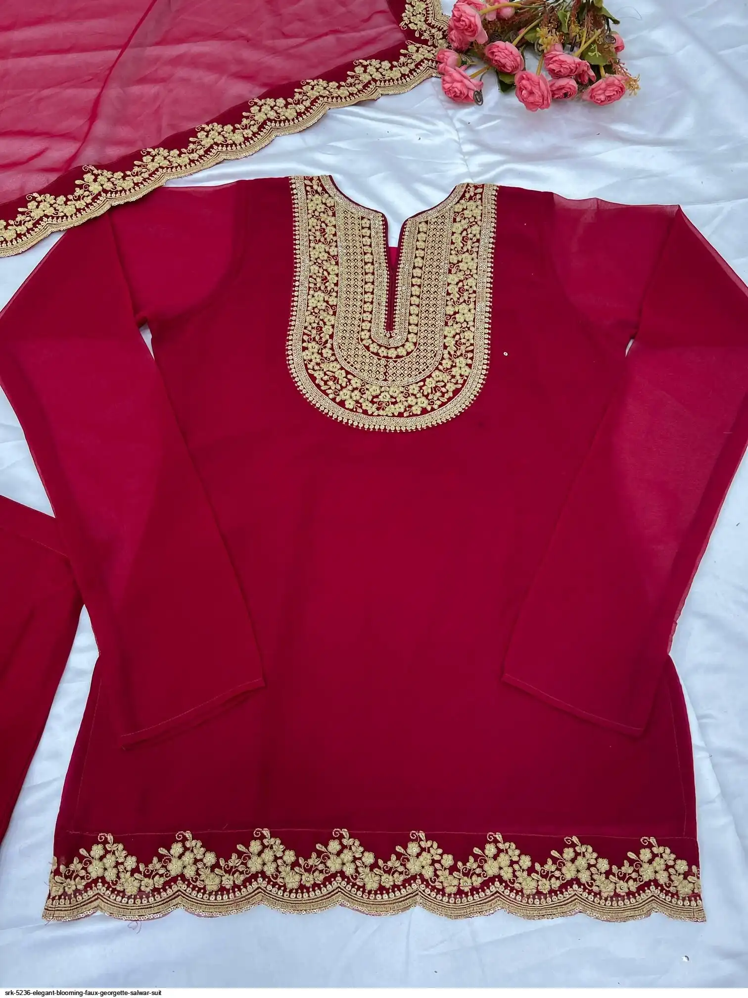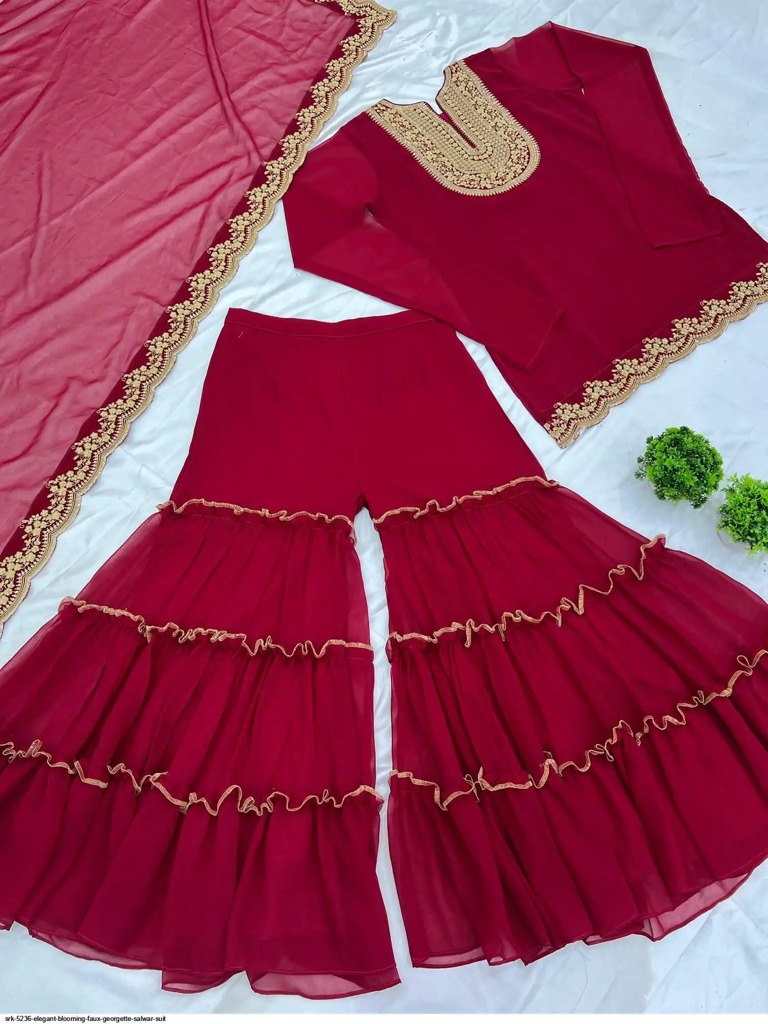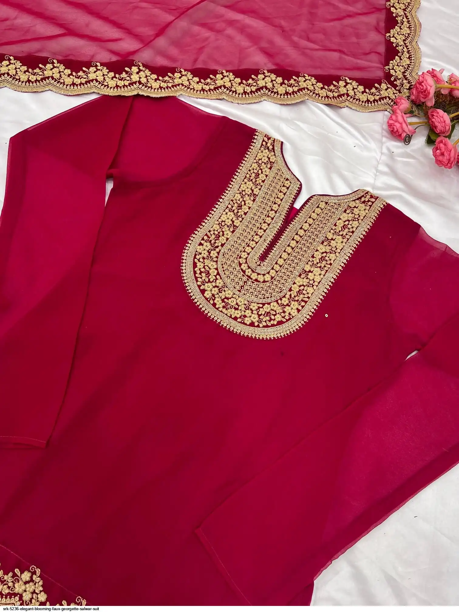 Top Fabric :Blooming Faux Georgette With Heavy Embroidery 3mm Sequence Thread Work With Full Sleeve