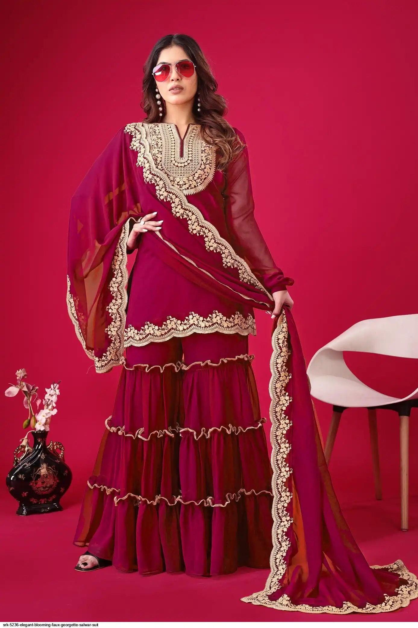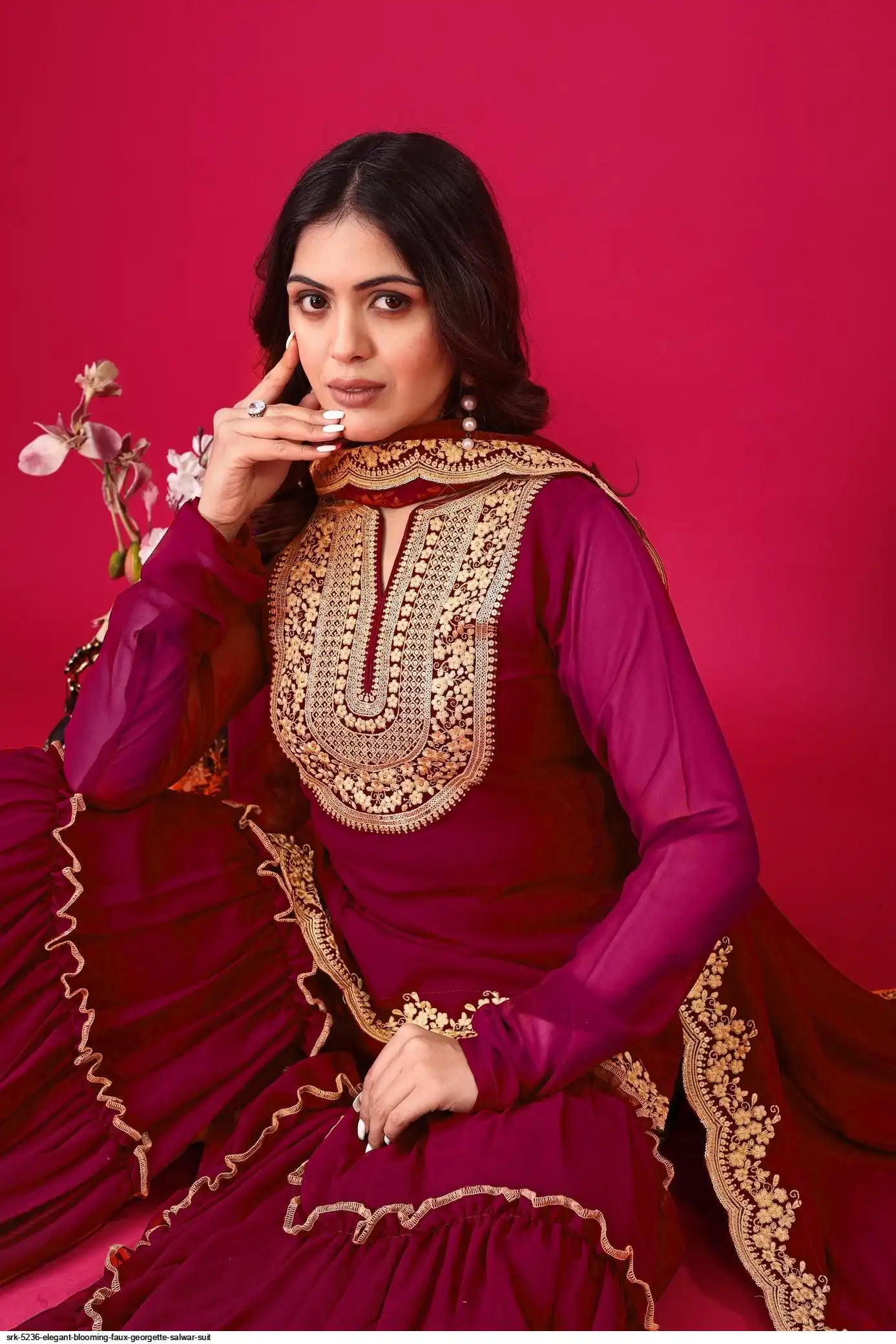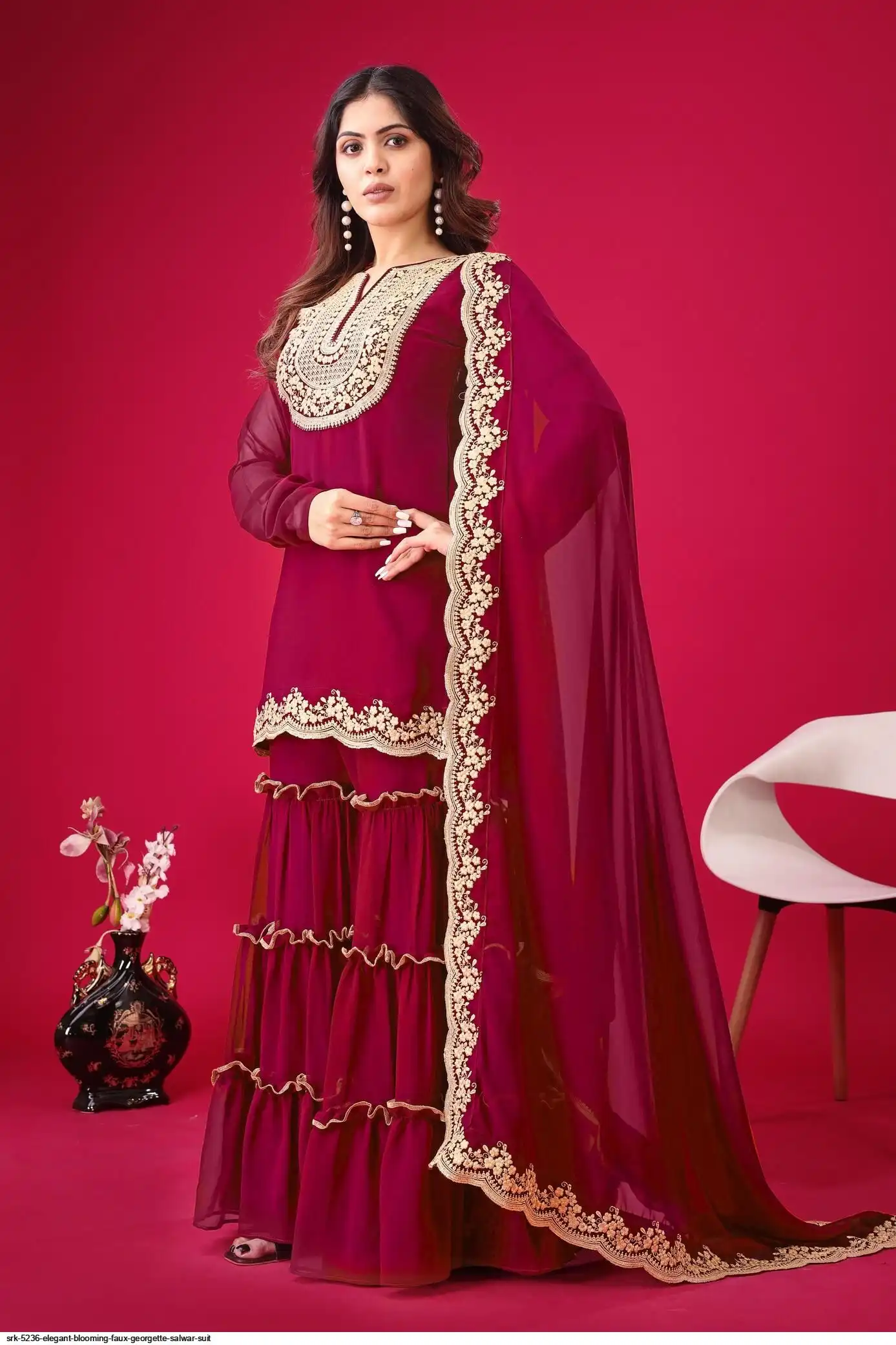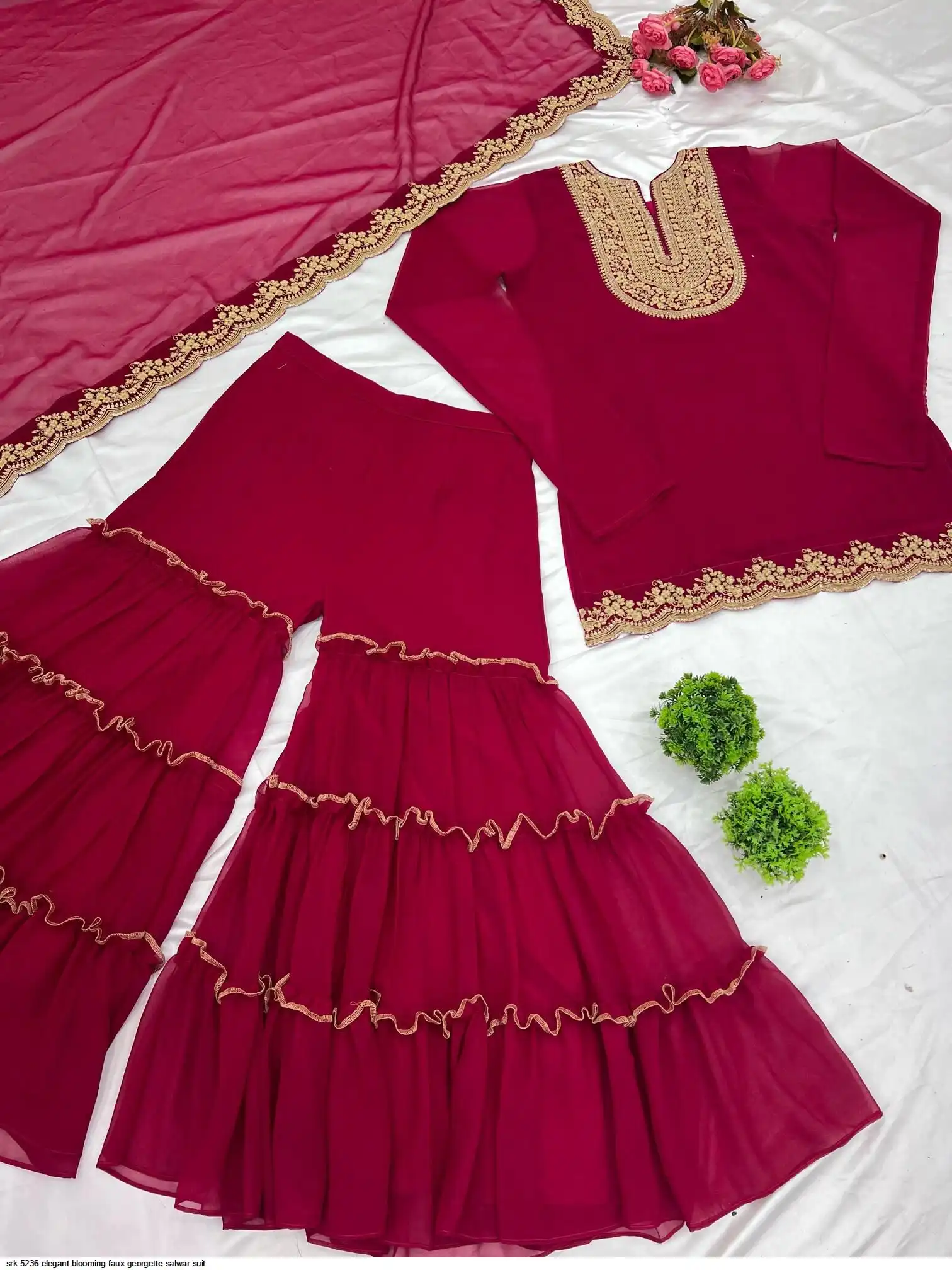 Top Fabric :Blooming Faux Georgette With Heavy Embroidery 3mm Sequence Thread Work With Full Sleeve