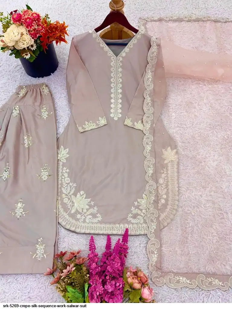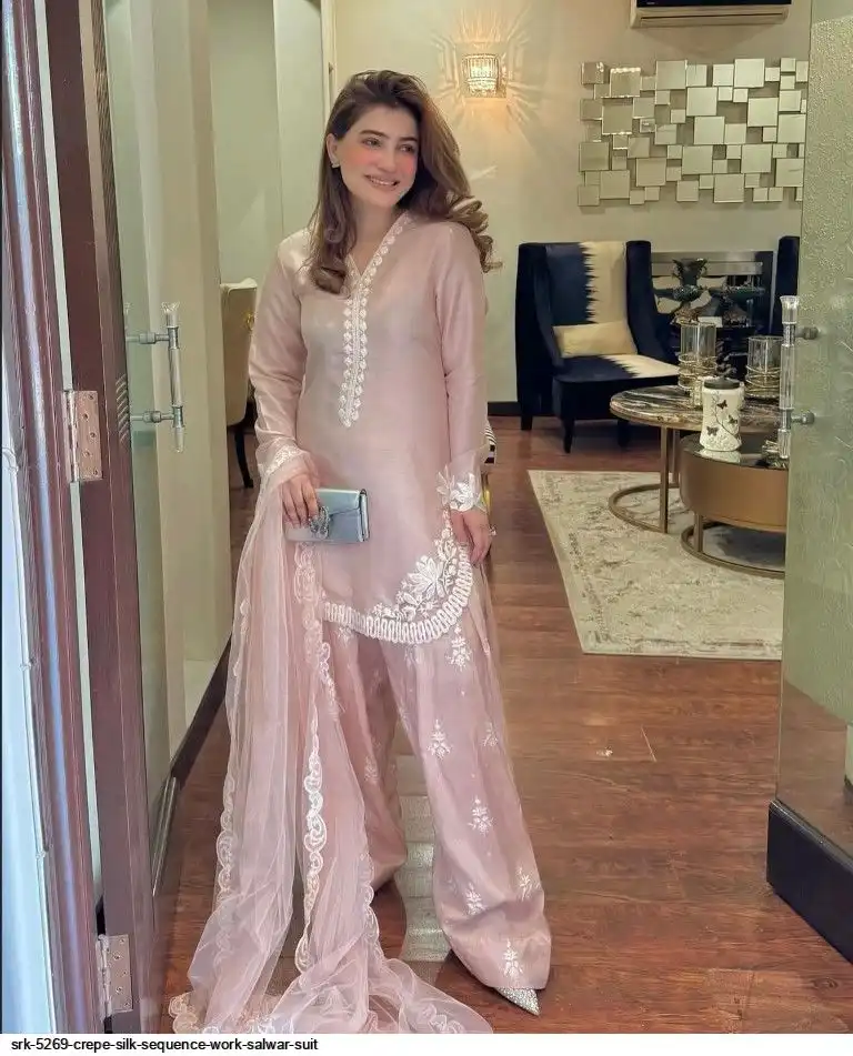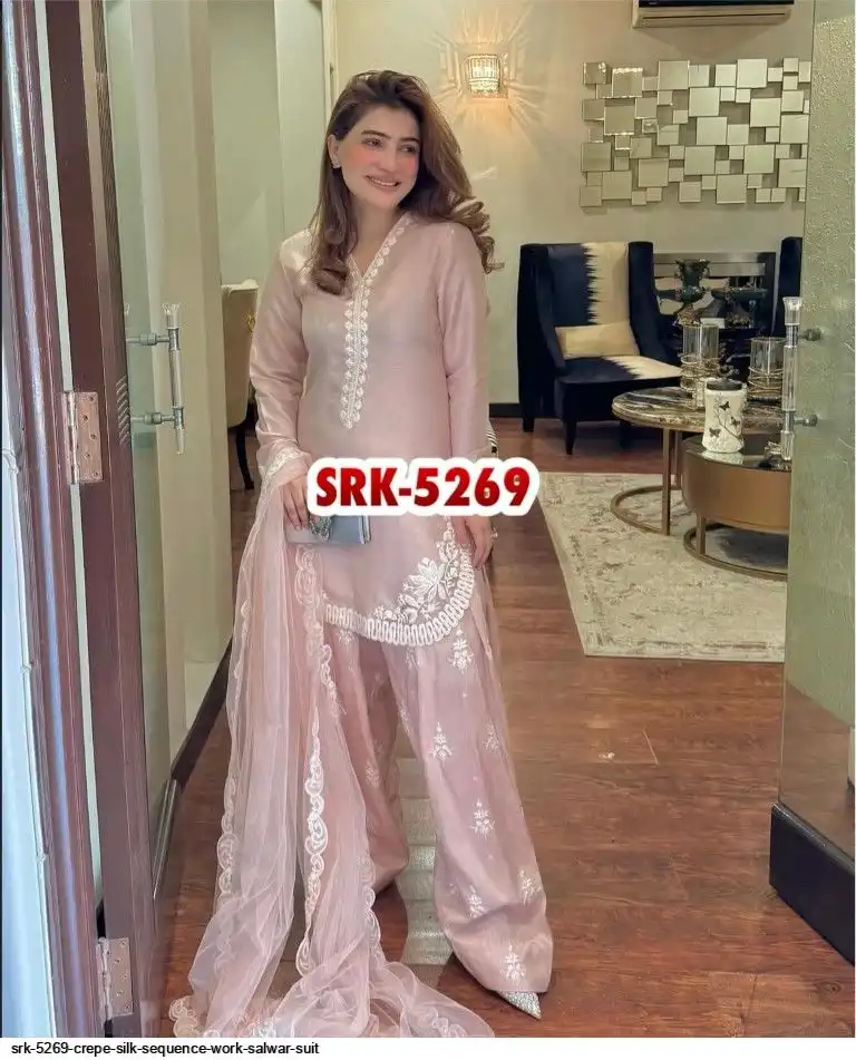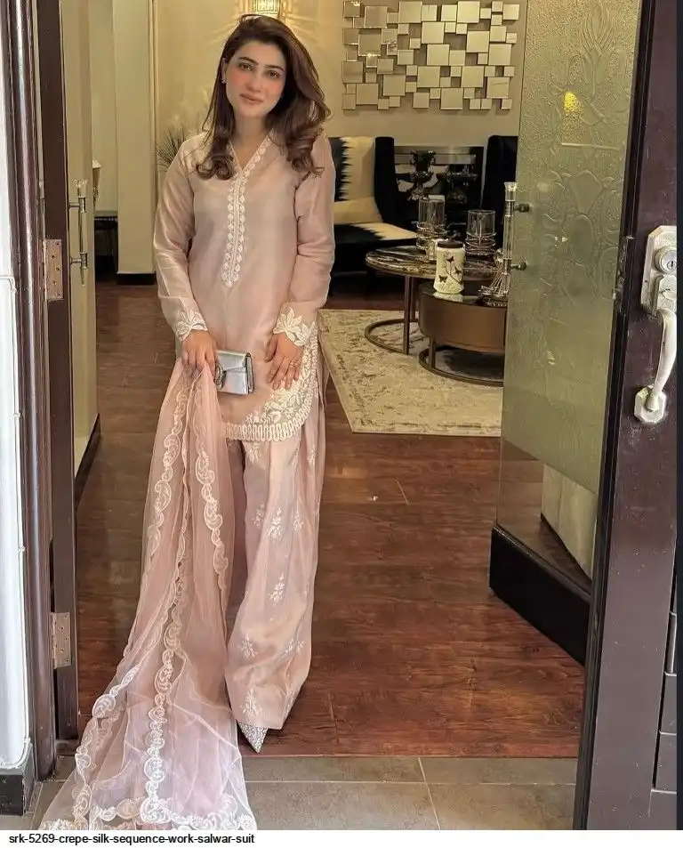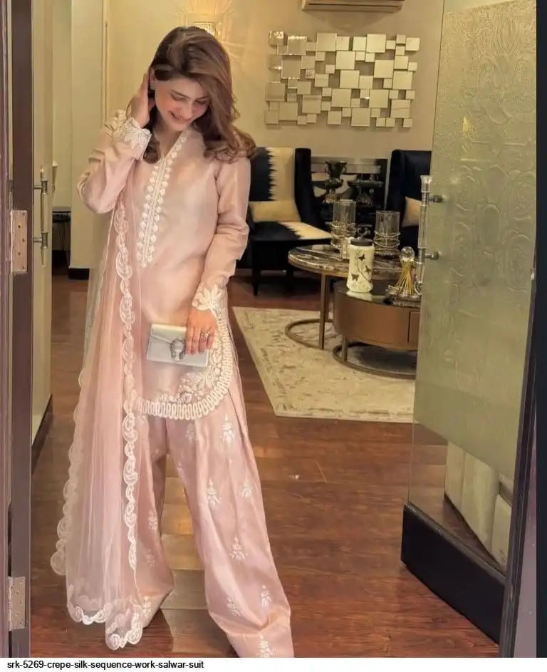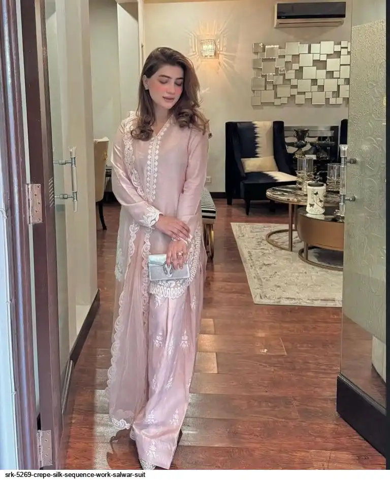 Top Fabric :Pure Natural Crep Silk With Embroidery Sequence Work With Full Sleeve