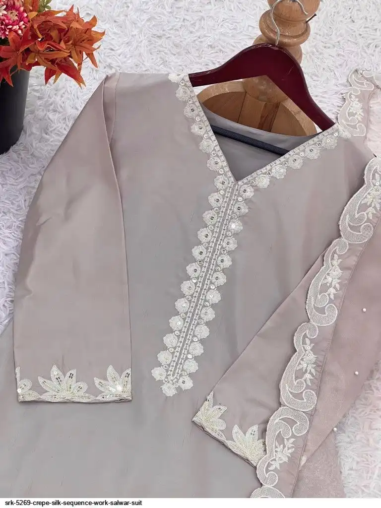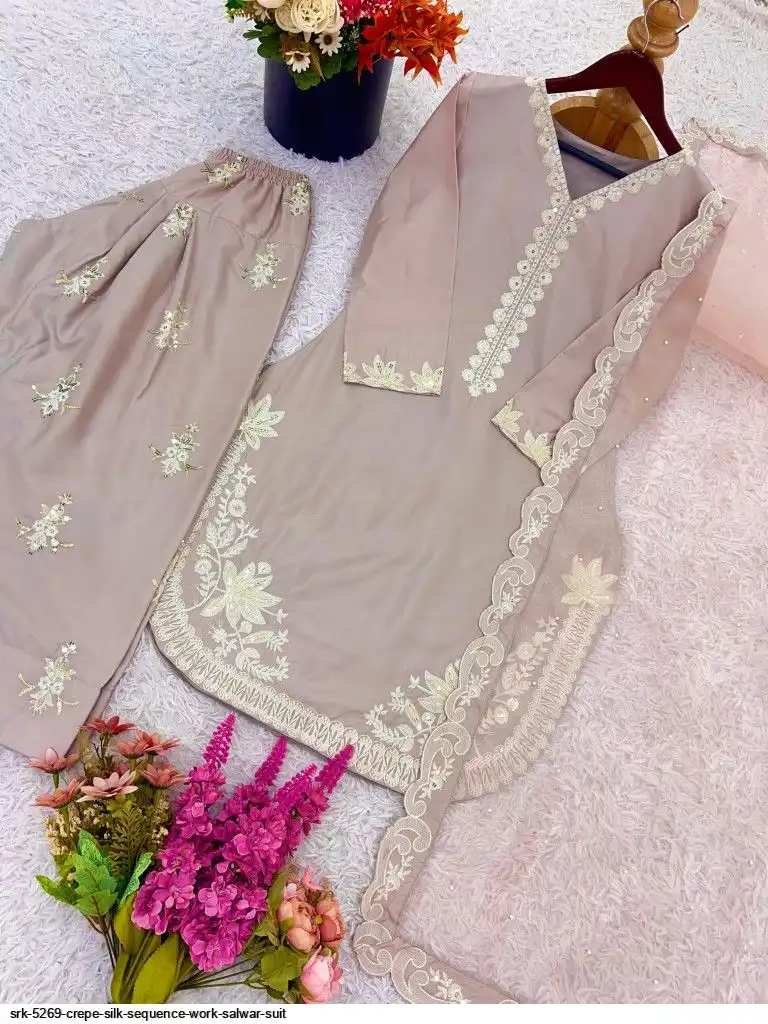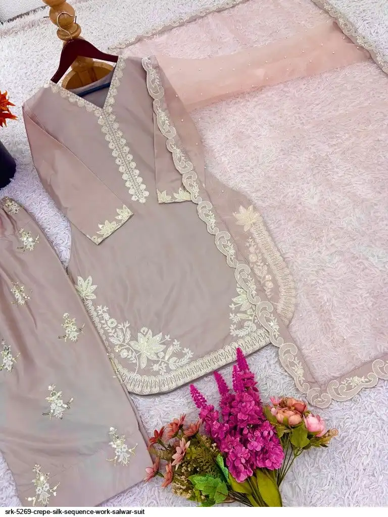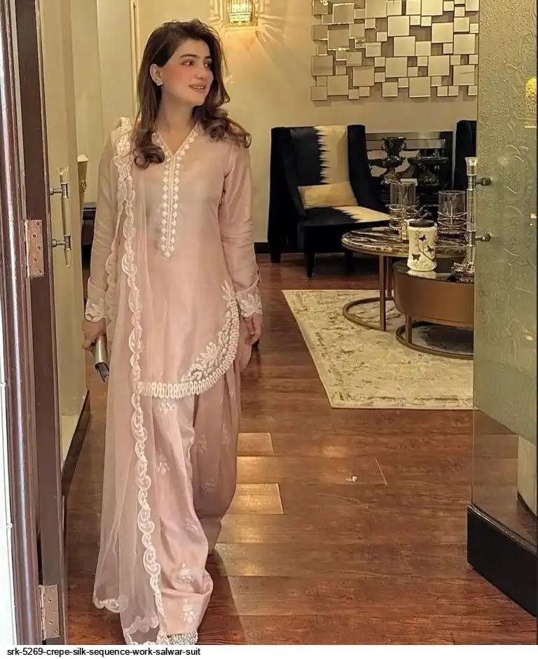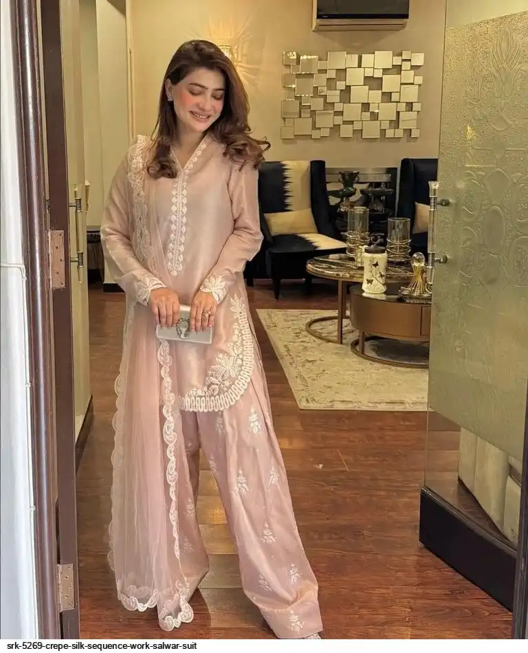 Top Fabric :Pure Natural Crep Silk With Embroidery Sequence Work With Full Sleeve
