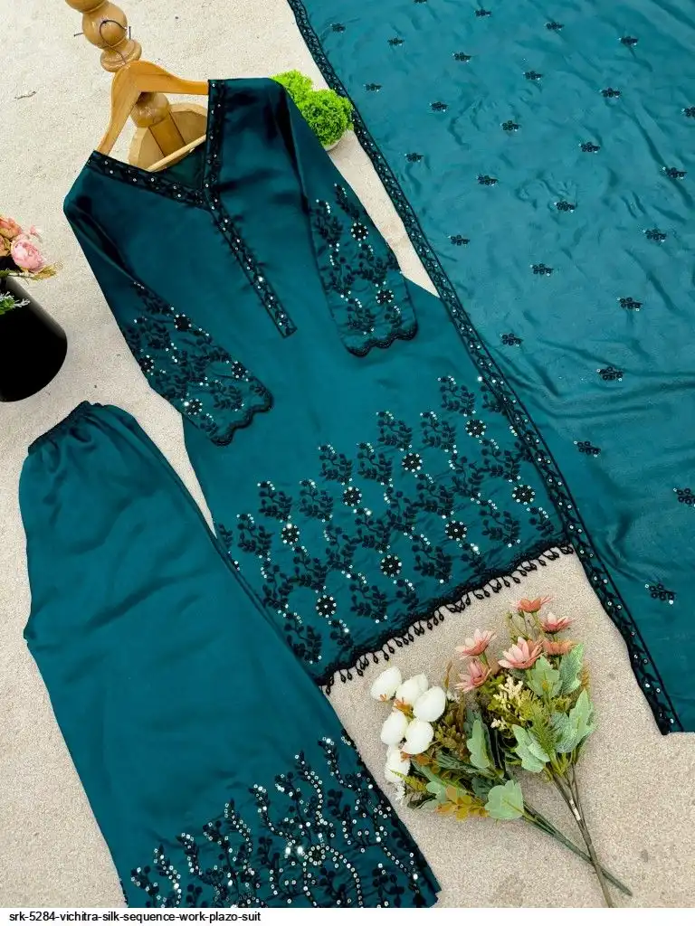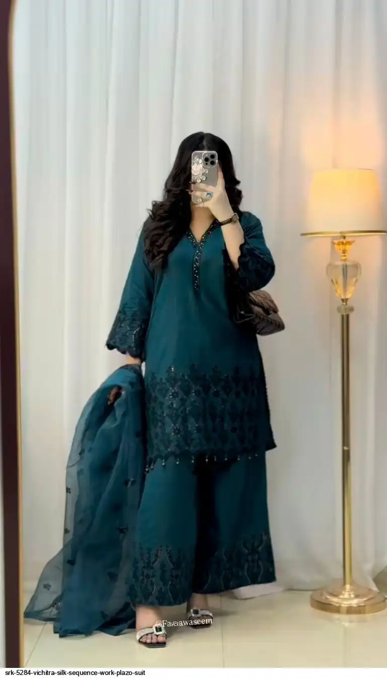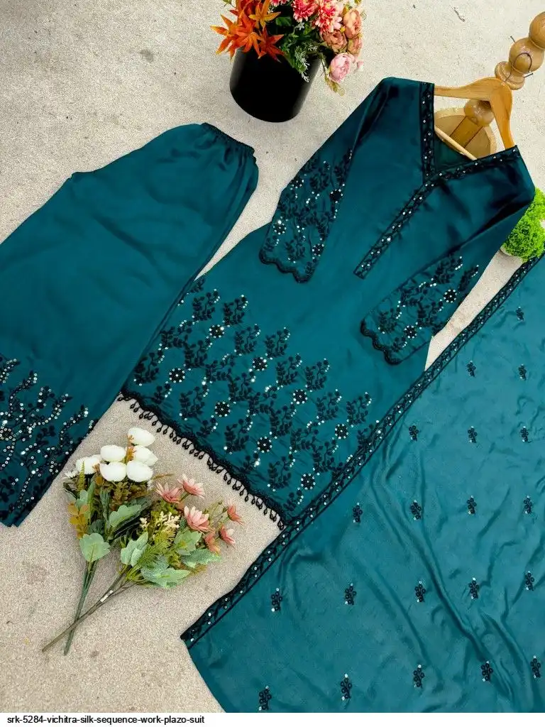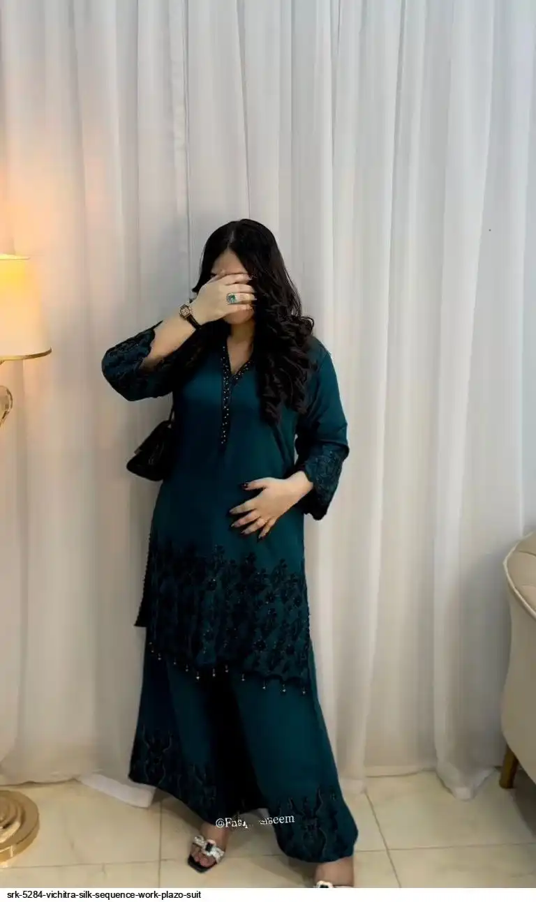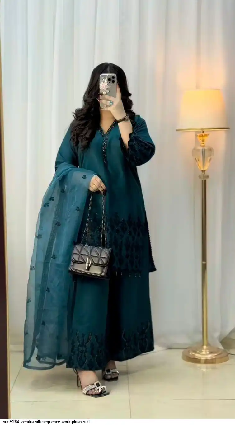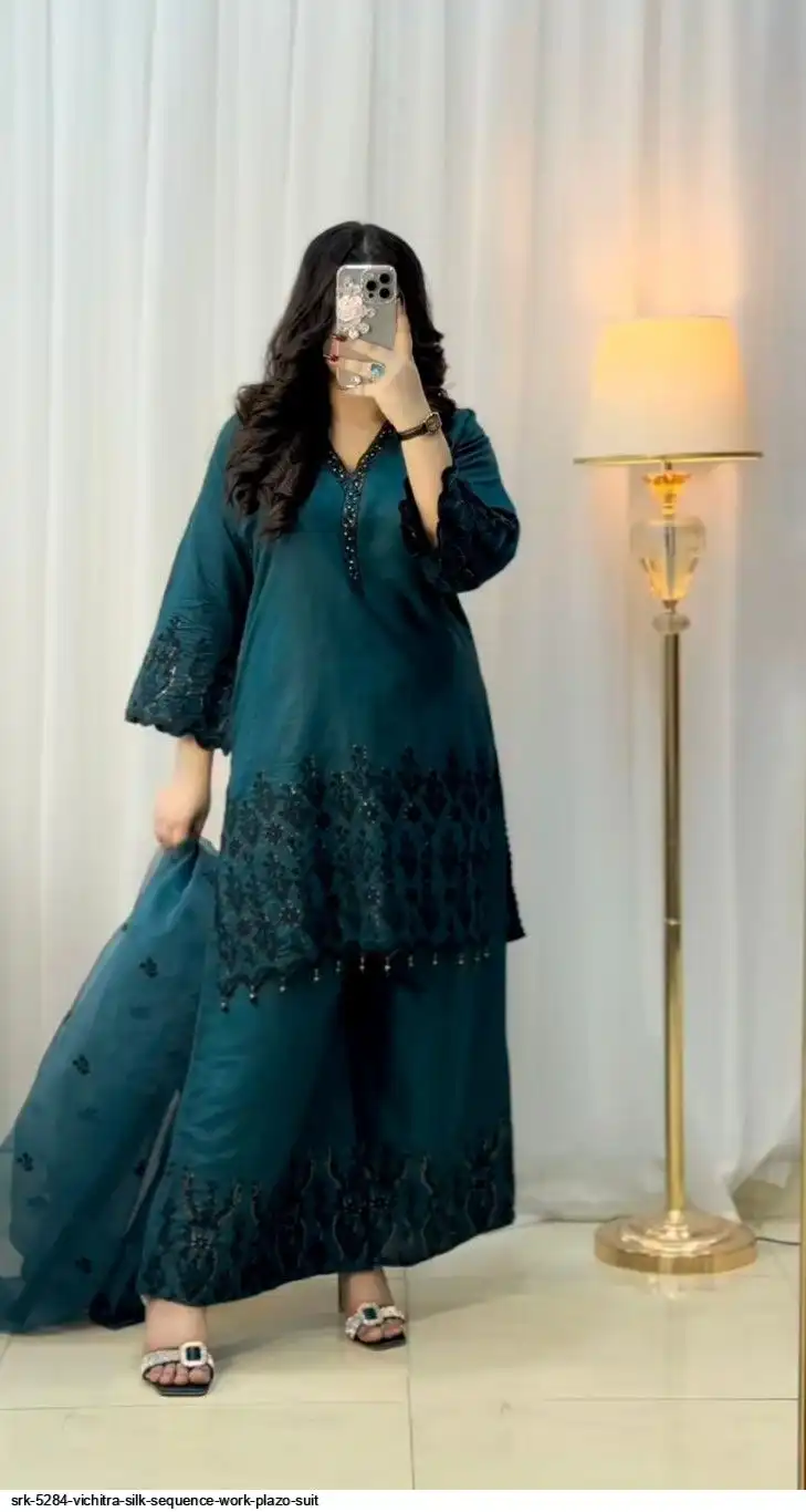 Top Fabric :Vichitra Silk With Embroidery Sequence Work With Full Sleeve