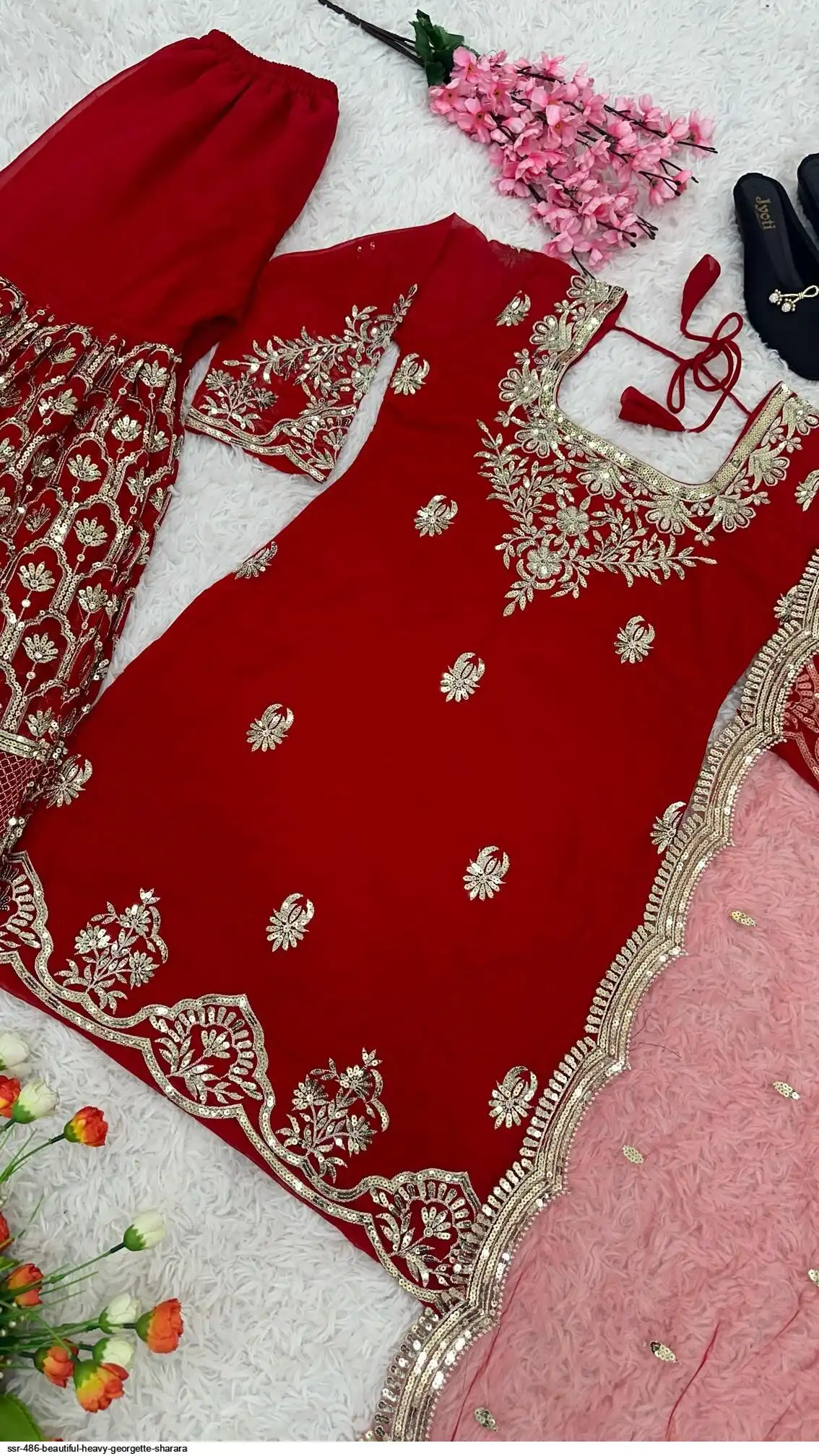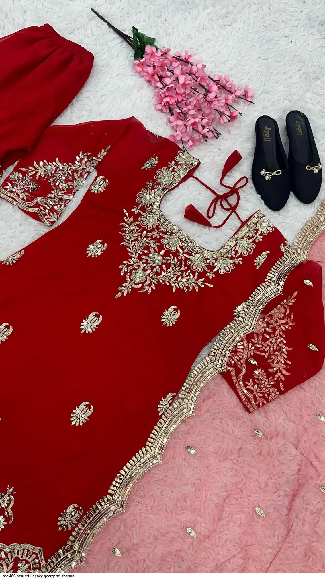 Sharara Fabrics : Heavy Georgette With *Embroidery Sequence Work With Flair