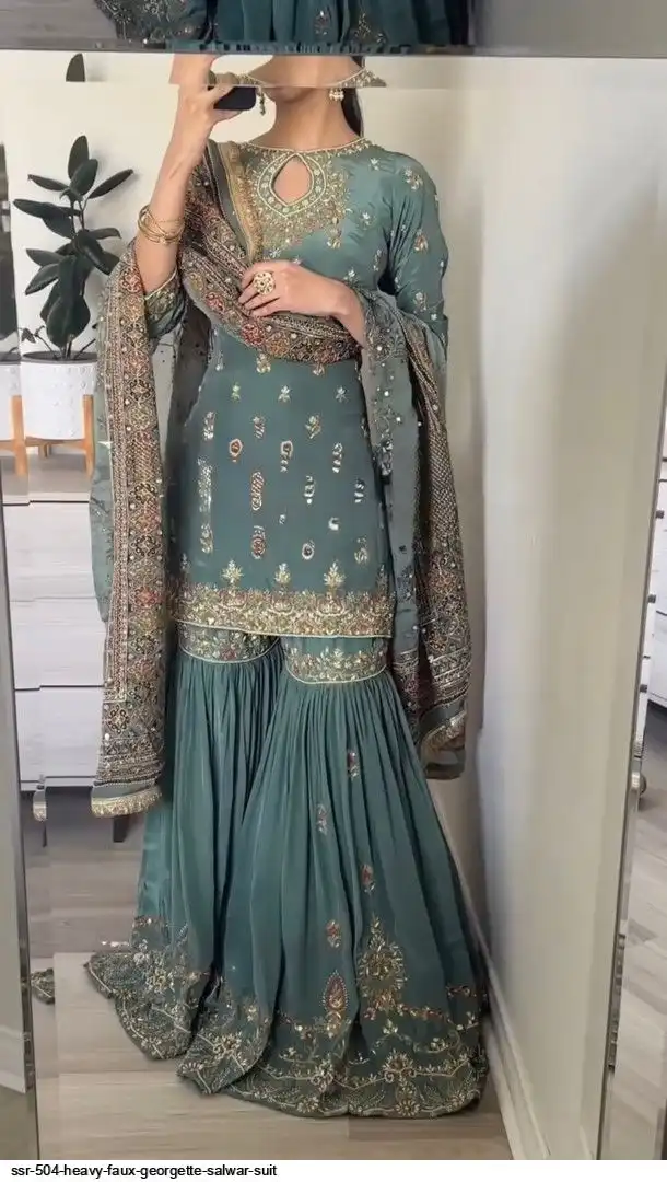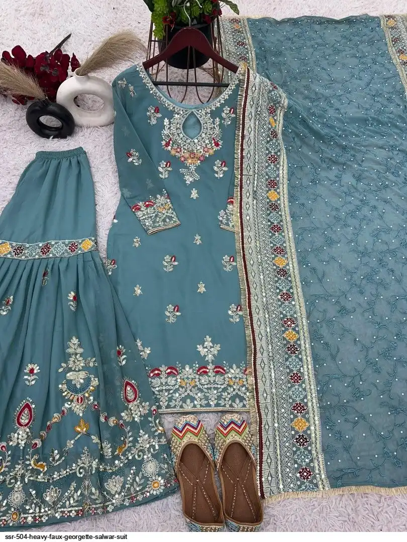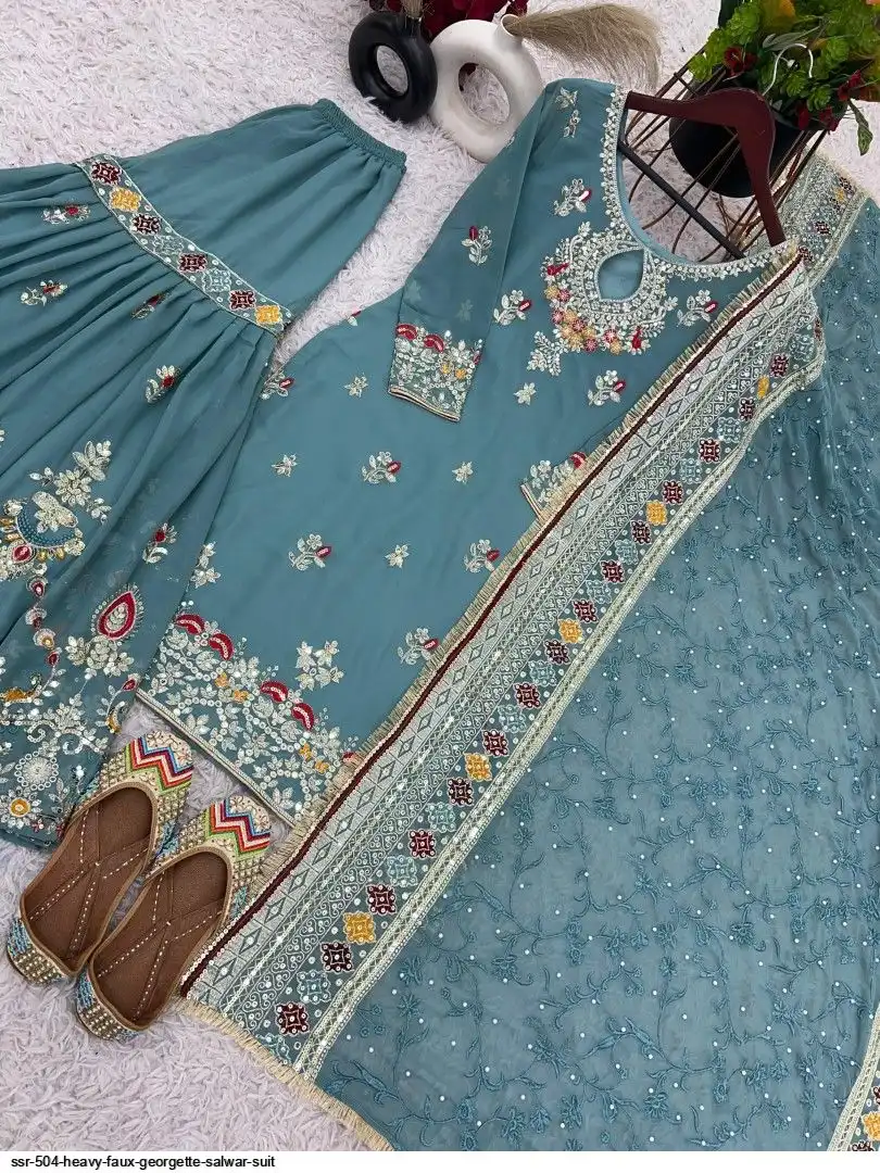 Plazzo Fabrics :Heavy Faux Georgette With 5mm Embroidery Sequence With Fully Flair