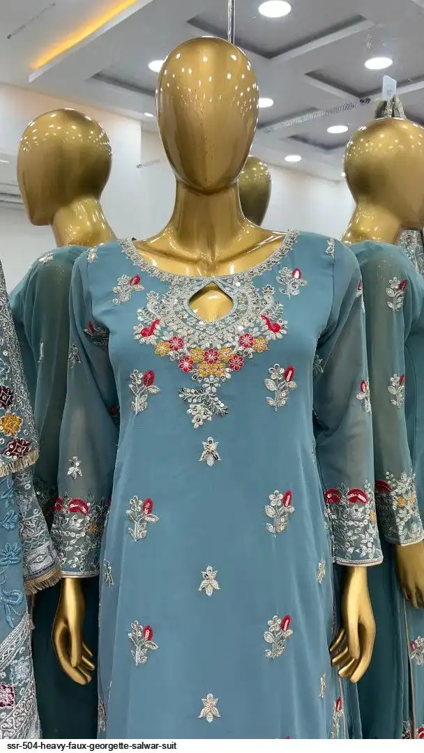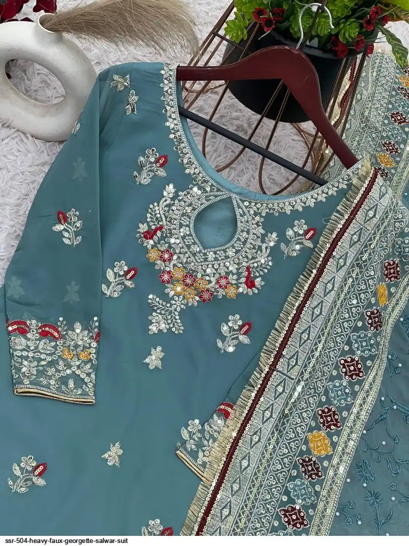 Top Fabric :Heavy Faux Georgette With 5mm Embroidery Sequence Work With Full Sleeve