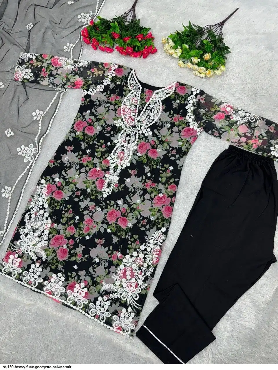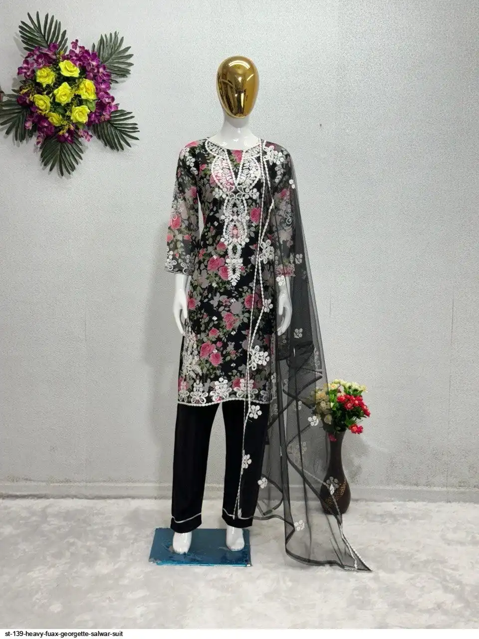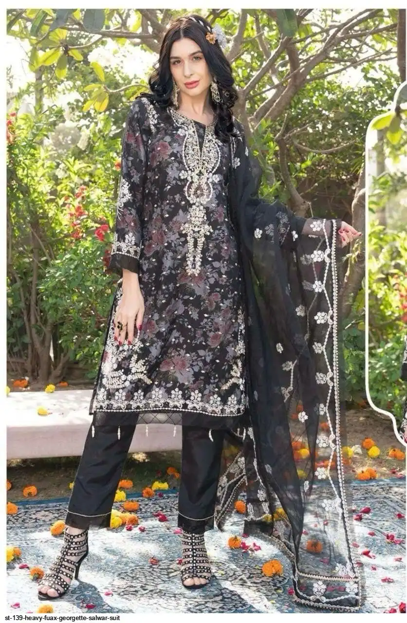 NEW DESIGNER HEAVY FUAX GEORGETTE EMBROIDERY SEQUENCES WORK WITH DIGITAL PRINT PAKISTANI SUIT