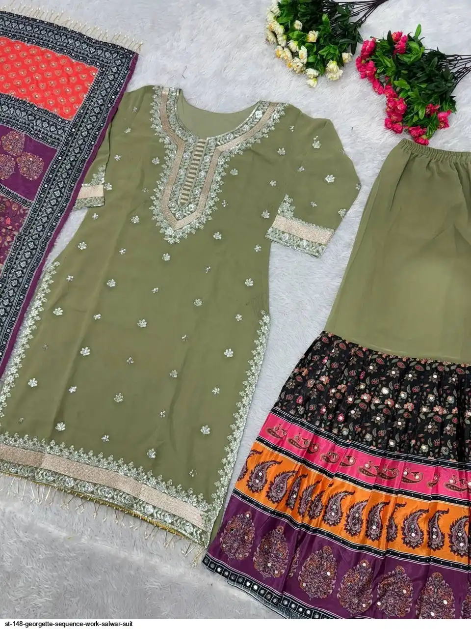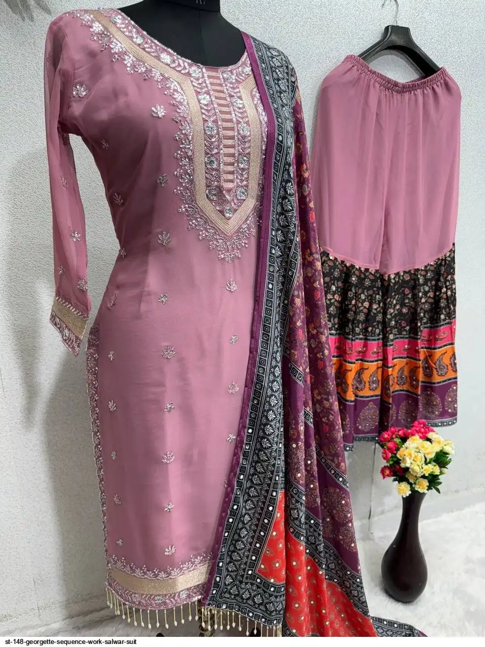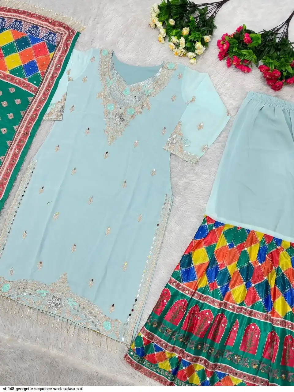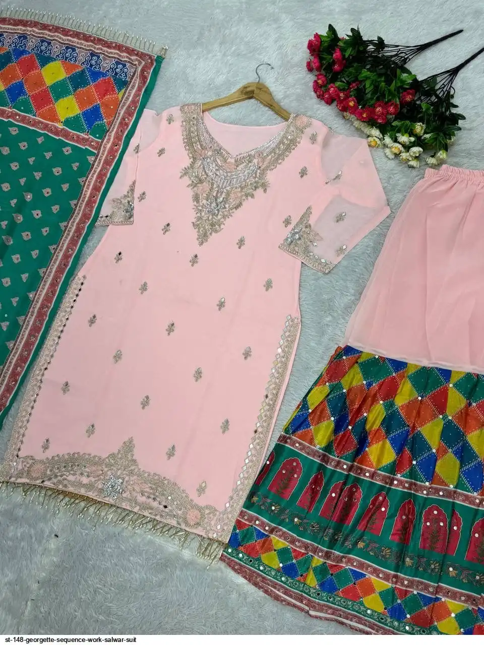 #TOP FABRICS : HEAVY FUAX GEORGETTE WITH REAL MIRROR WORK