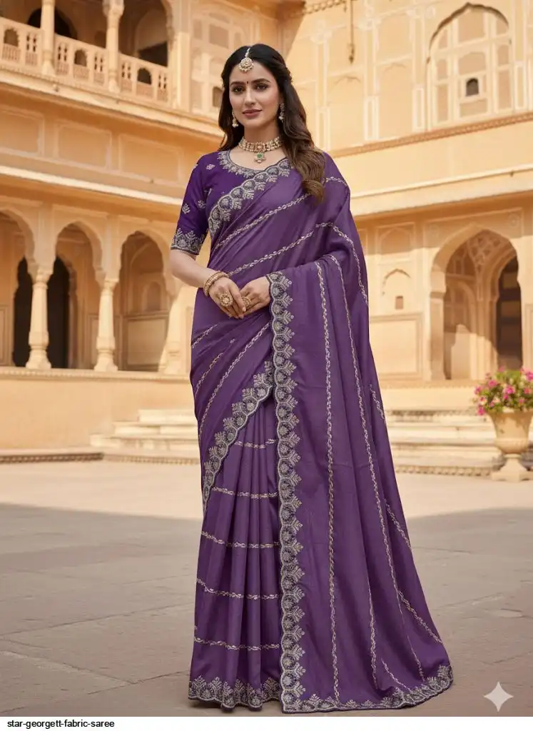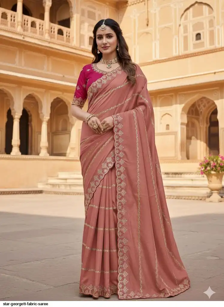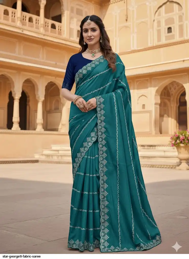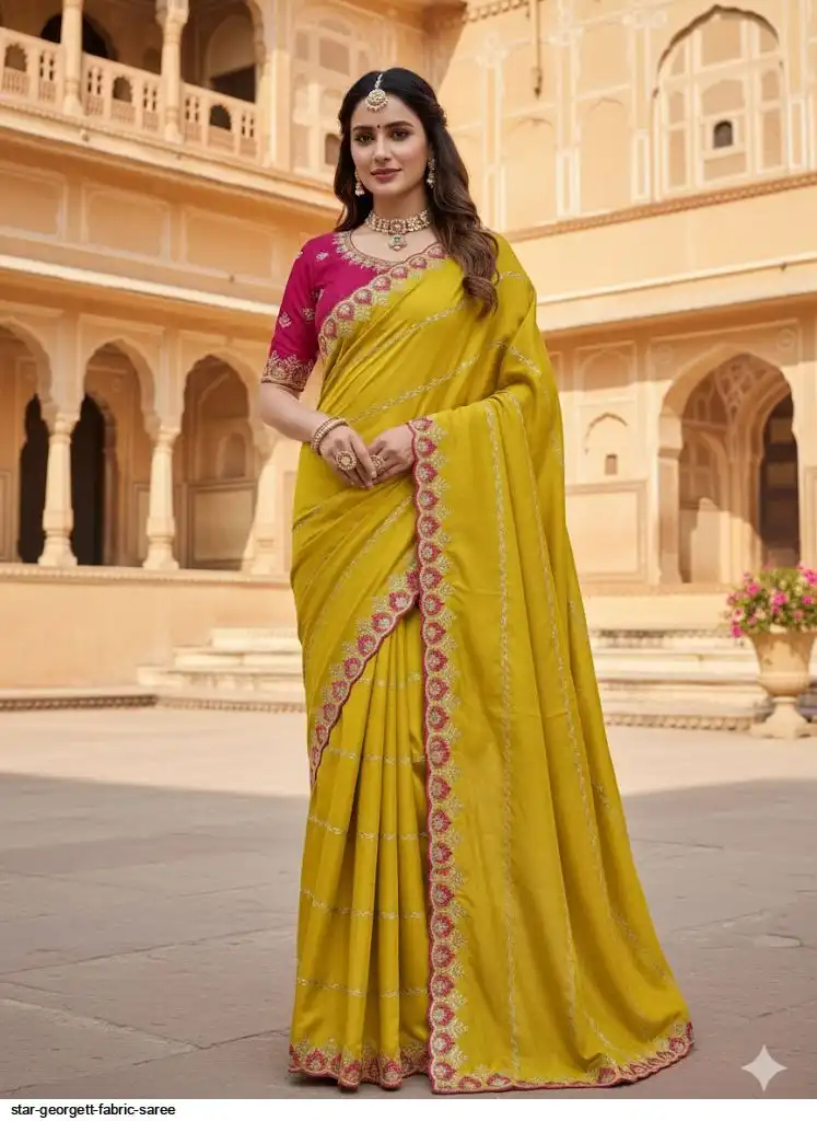 Fabric - Star georgett fabric with c-pallu work with lehariya desgin