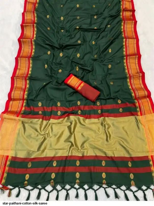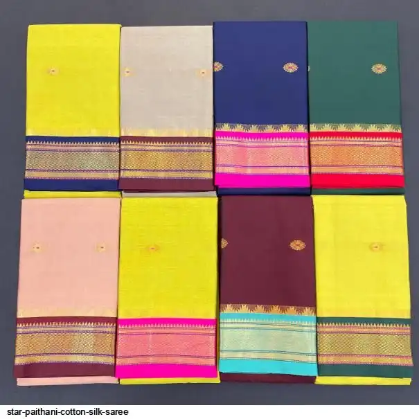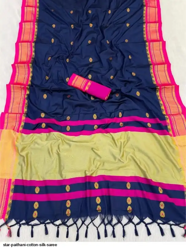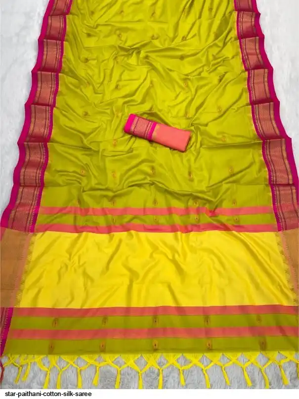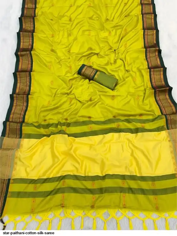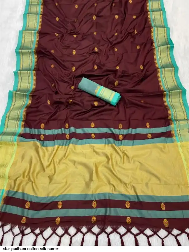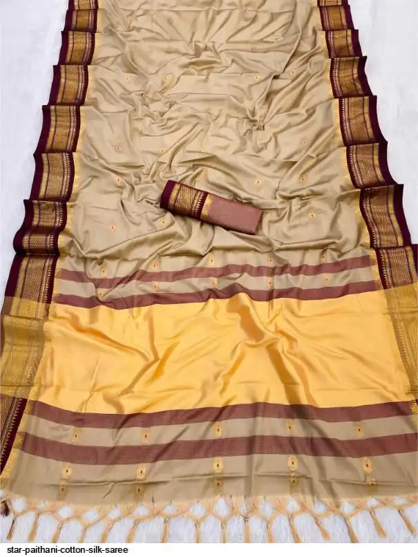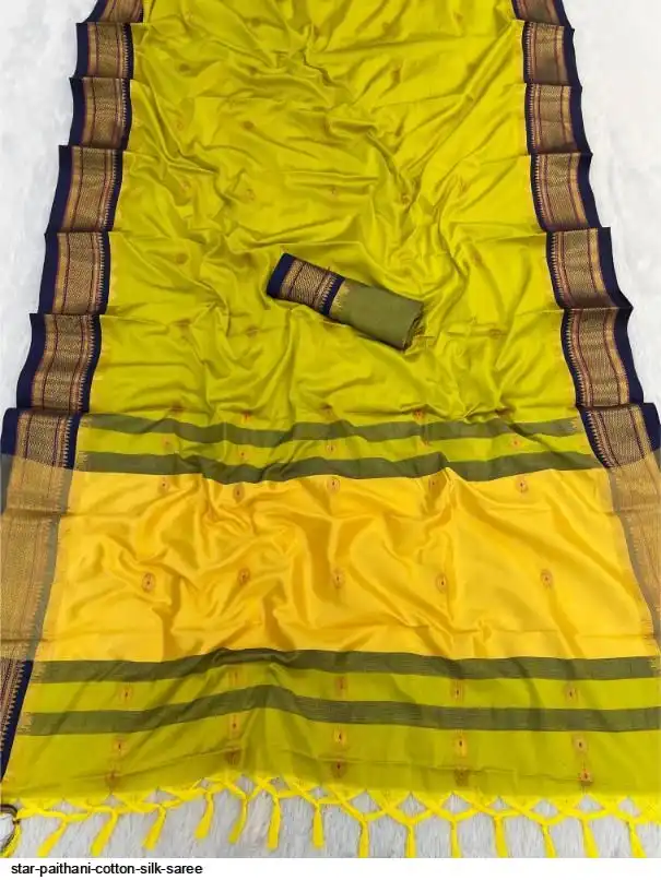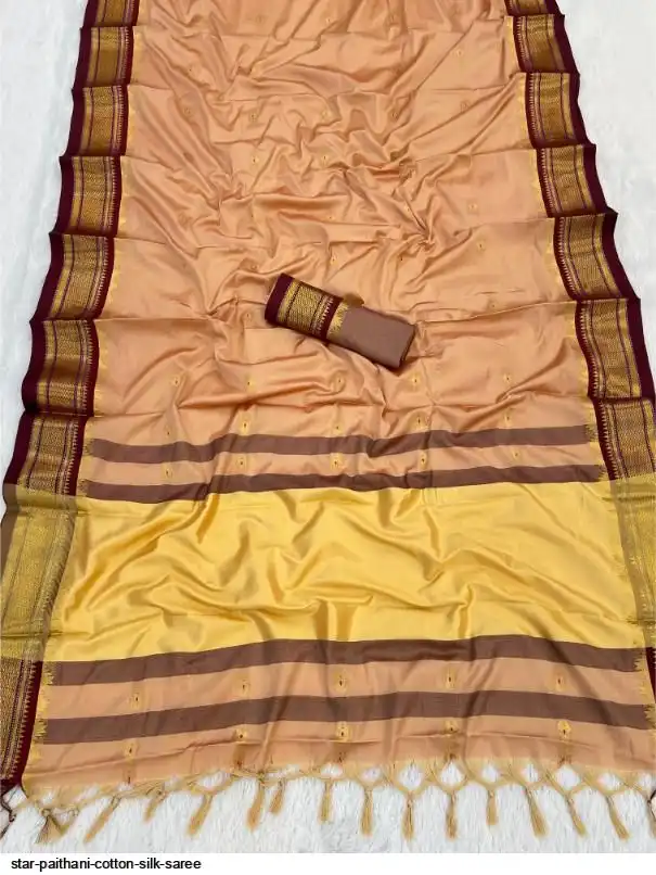 Fabric : Cotton Silk gold weaving border with contrast blouse