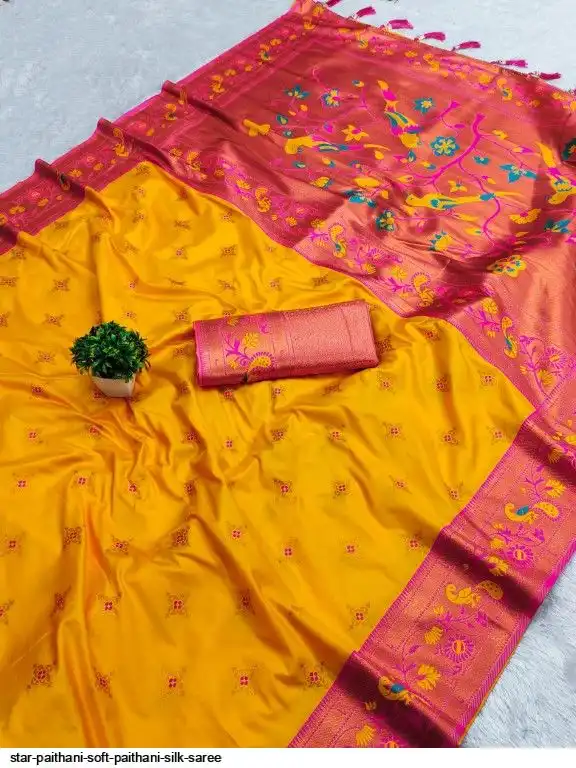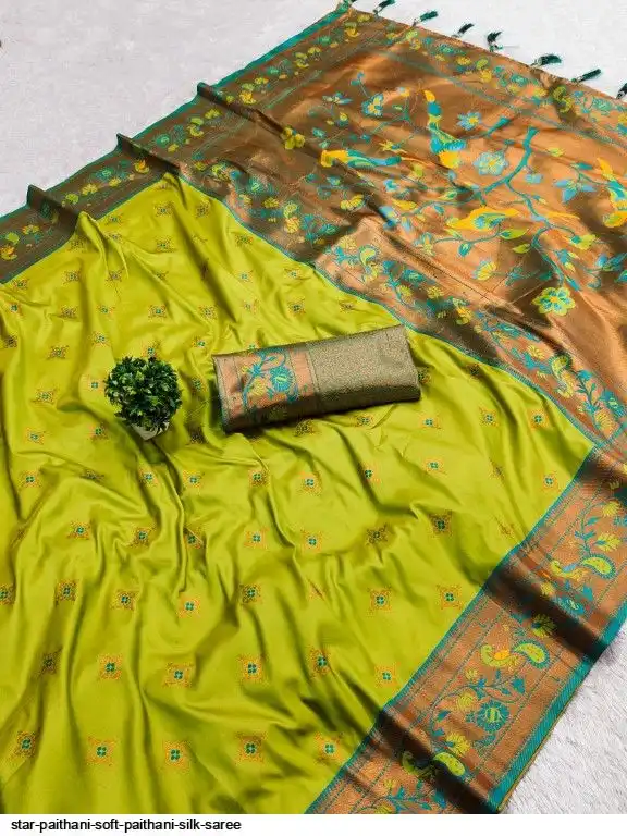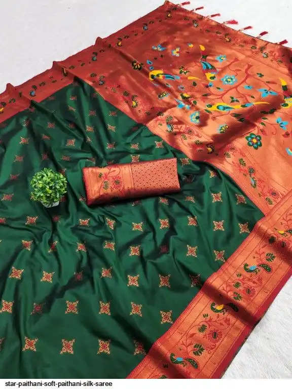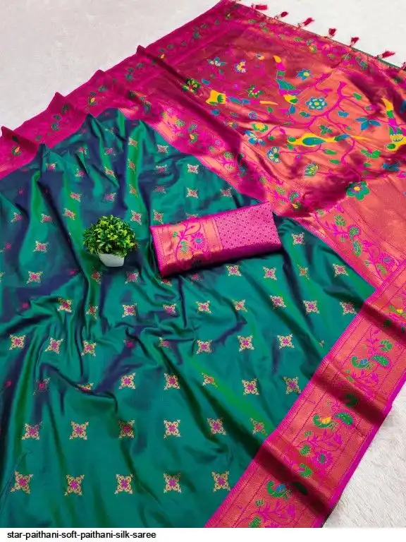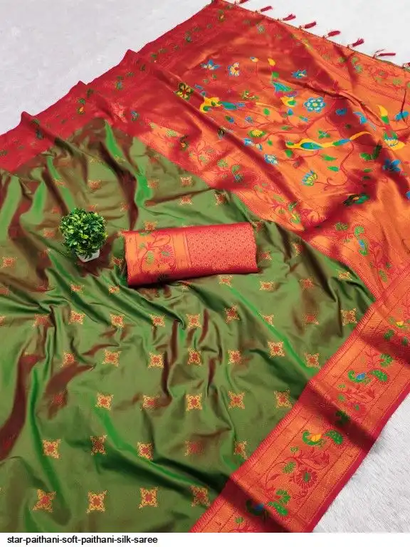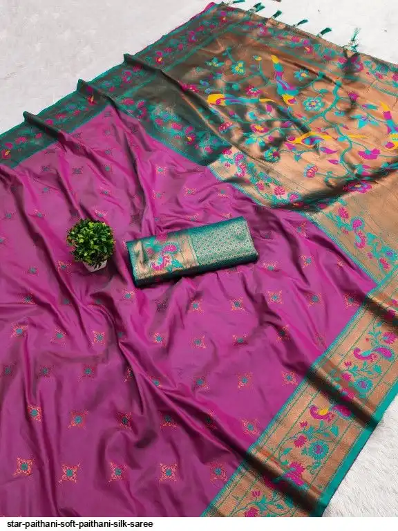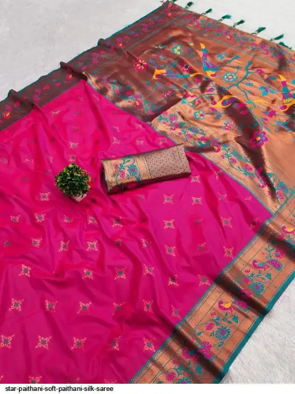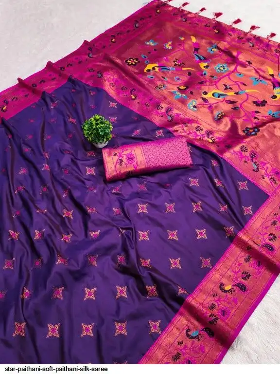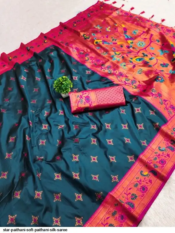 Saree :- Soft paithani silk saree with zari weawing Meenakari motifs design and Meenakari weawing Rich pallu with Meenakari weawing border