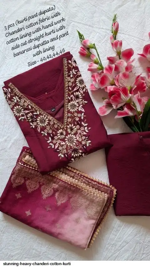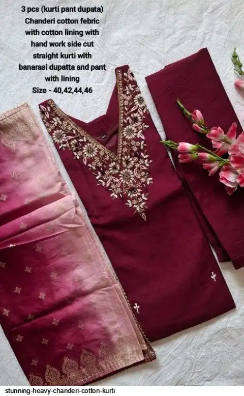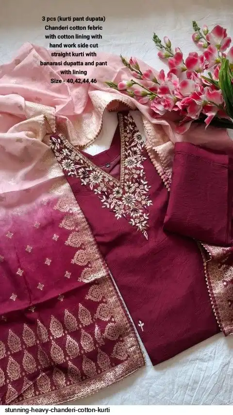 Description: Heavy Handwork Duppata set kurtis With Pant(With Linning)