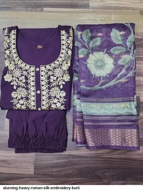 STUNNING HEAVY ROMAN SILK EMBROIDERY KURTI C
